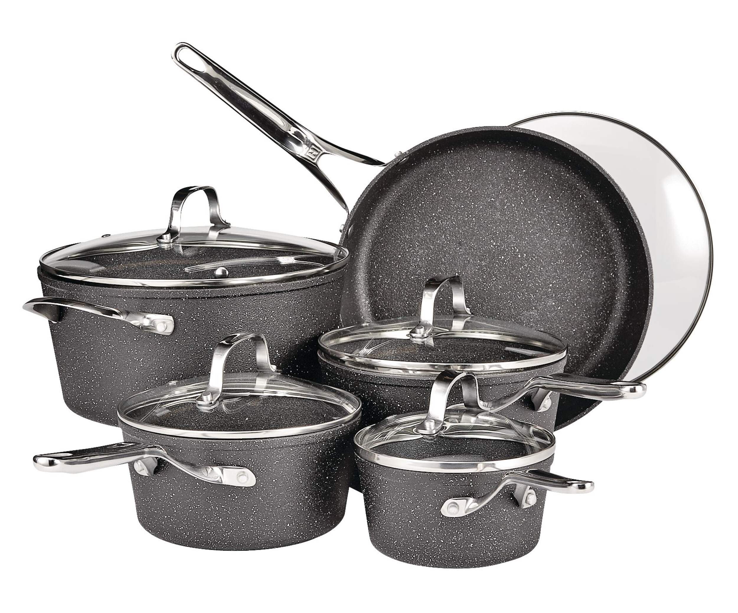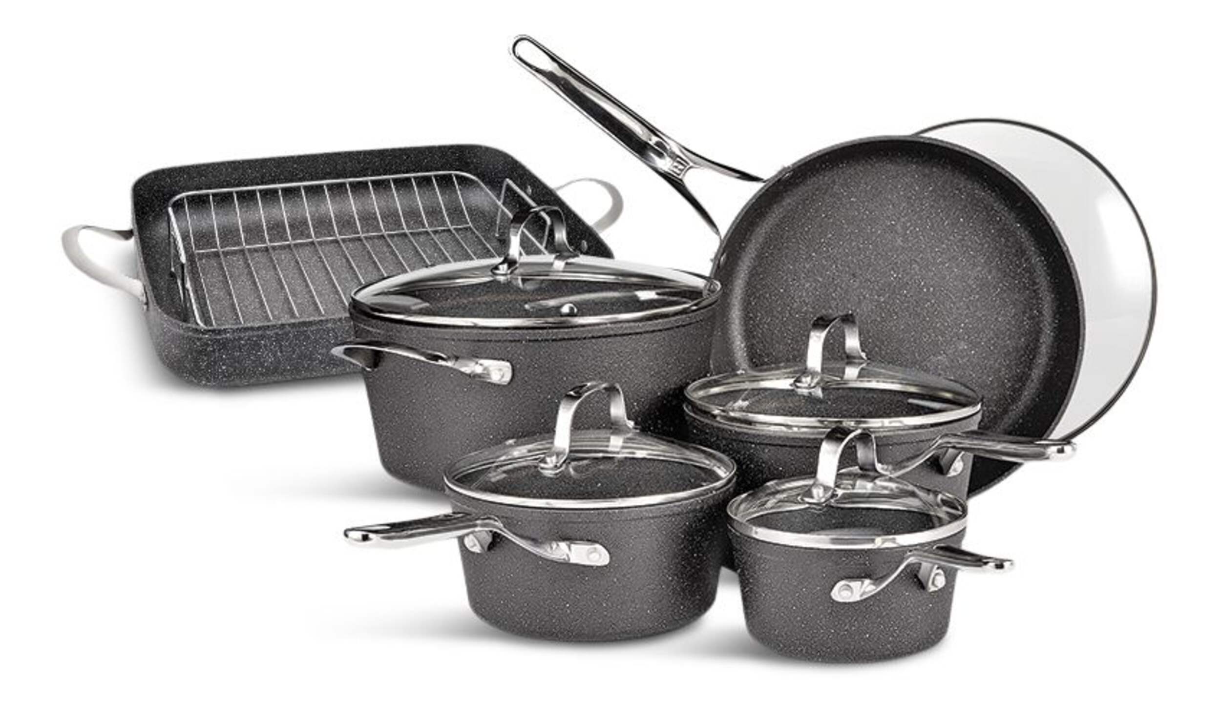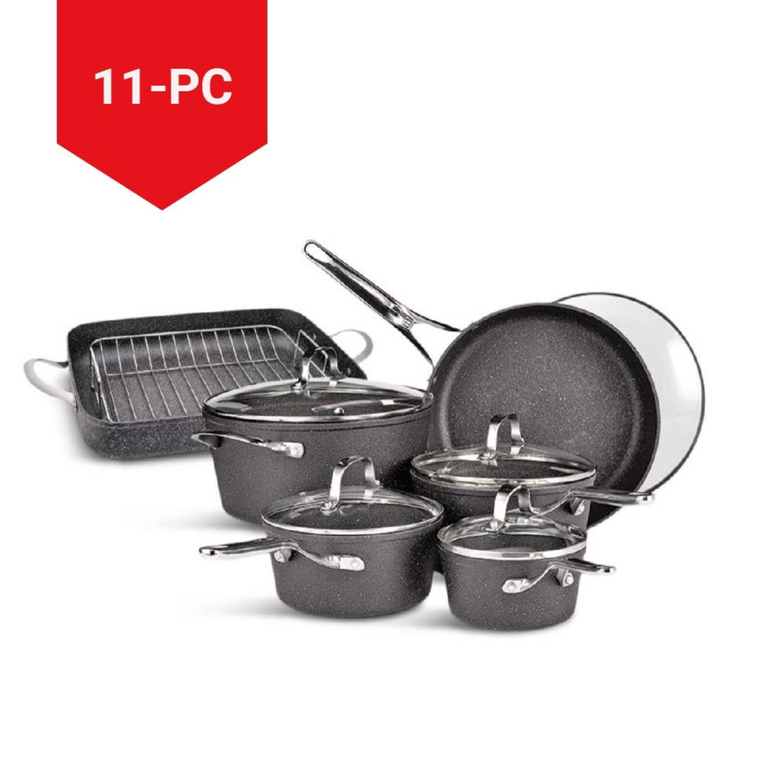 Ensemble comprenant : une batterie Heritage The Rock en aluminium forgé antiadhésif de 10 pièces (No. d'art. CT 142-7071) et une rôtissoire Heritage The Rock de 17 x 12 po (No. d'art CT 142-8308)
