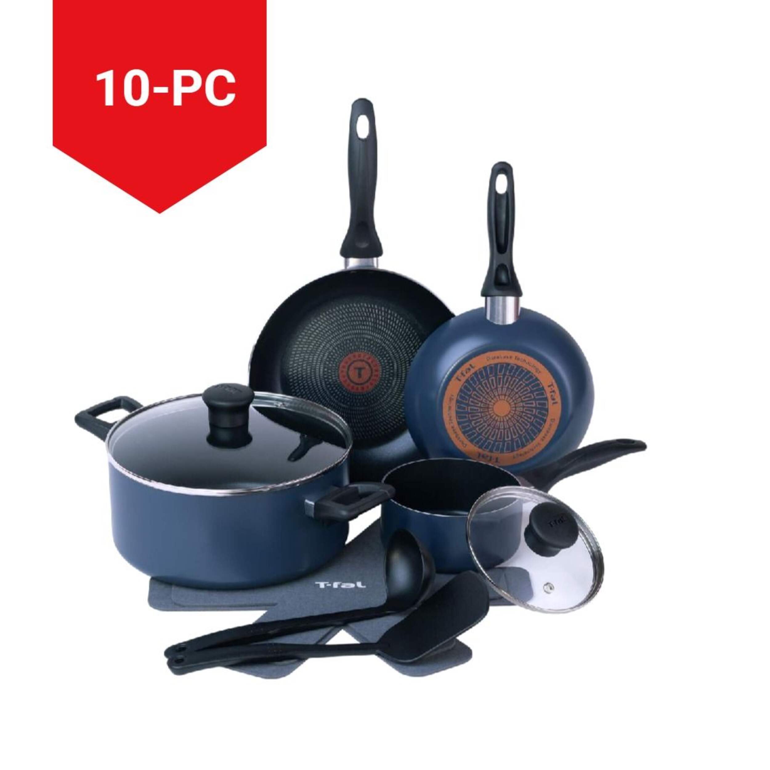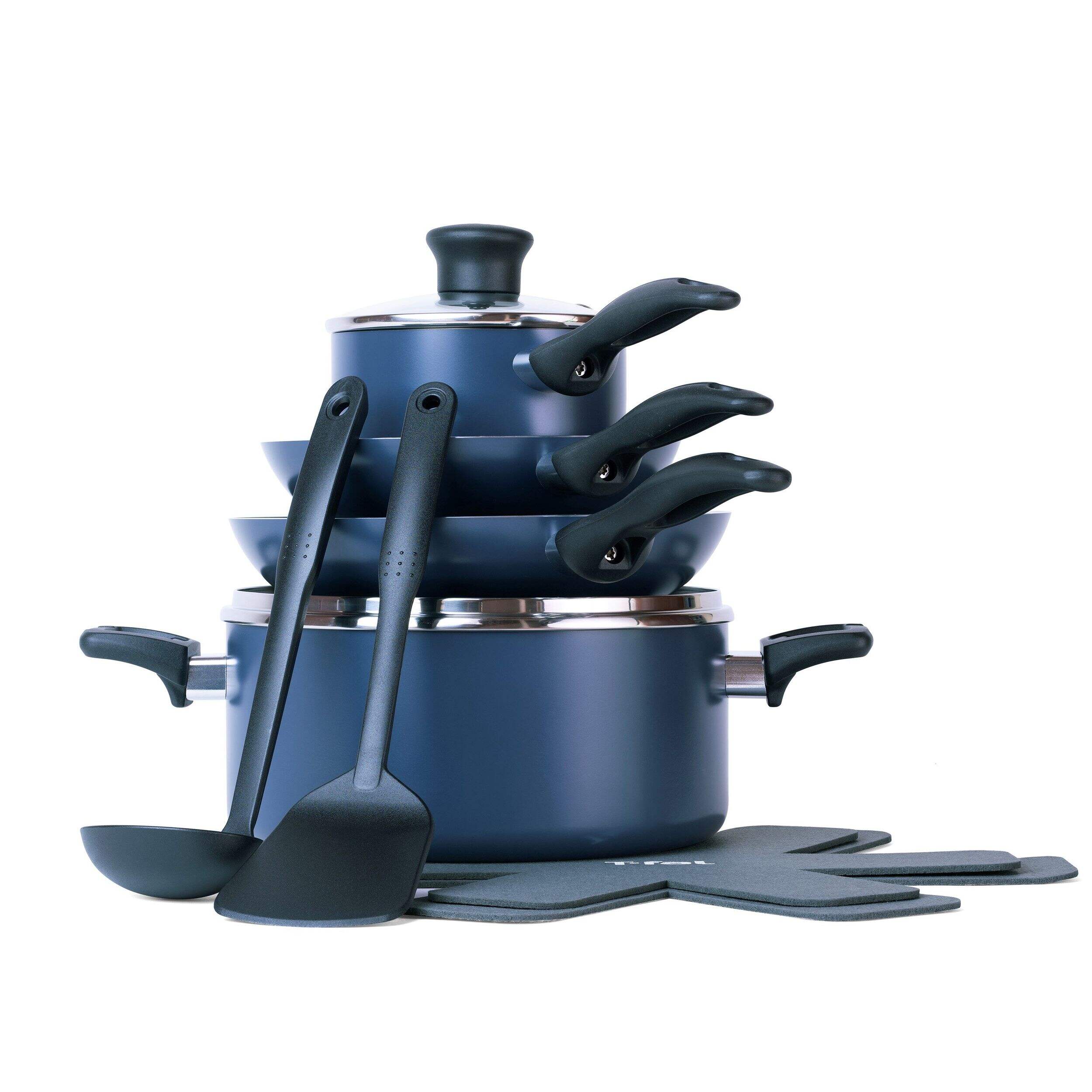 Composition de l'ensemble : Poêle à frire de 8 po, poêle à frire de 10 po, casserole avec couvercle de 1,5 pinte, faitout avec couvercle de 5 pintes et 4 accessoires