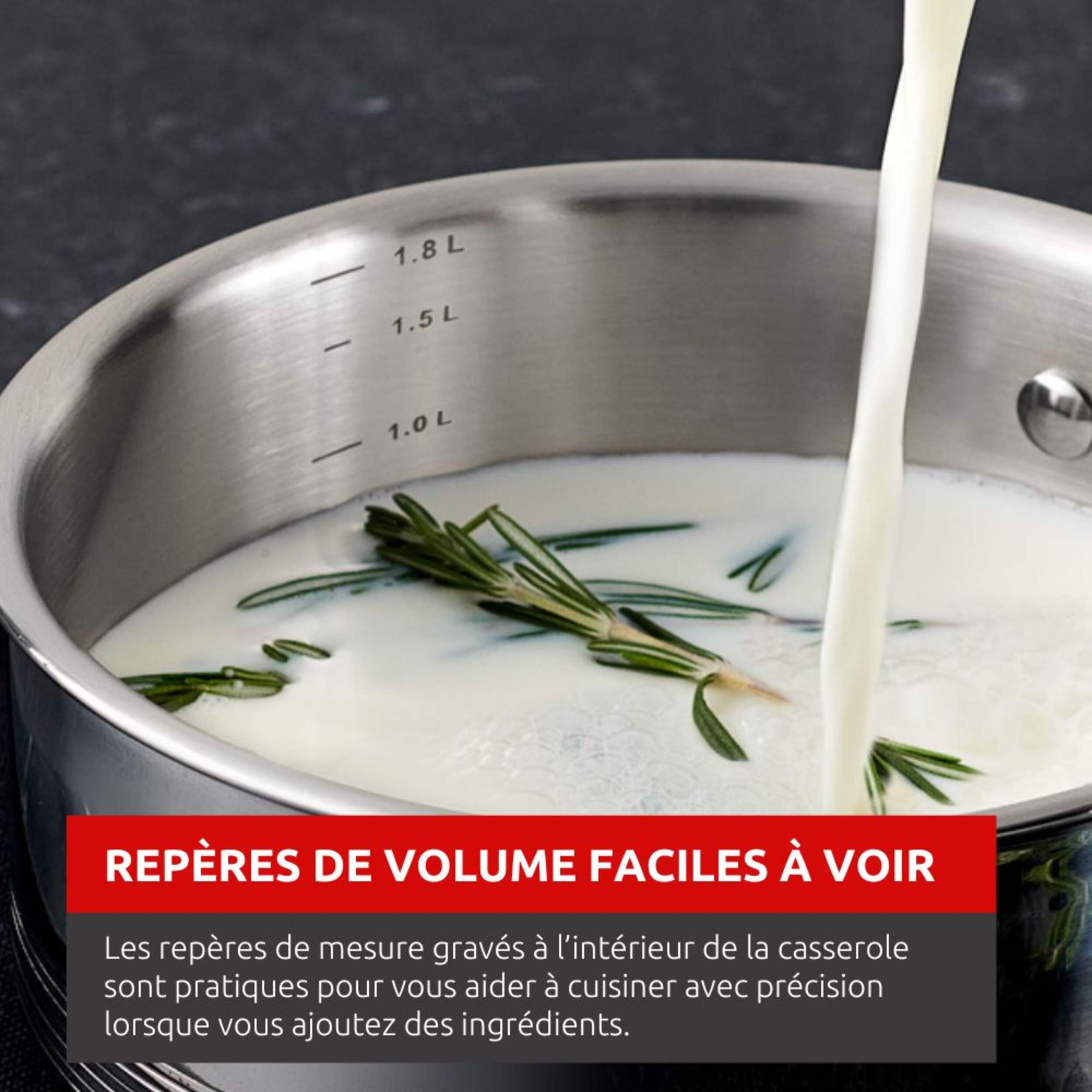 Marques de mesure gravées à l'intérieur de la casserole pour vous aider à cuisiner avec précision lorsque vous ajoutez des ingrédients