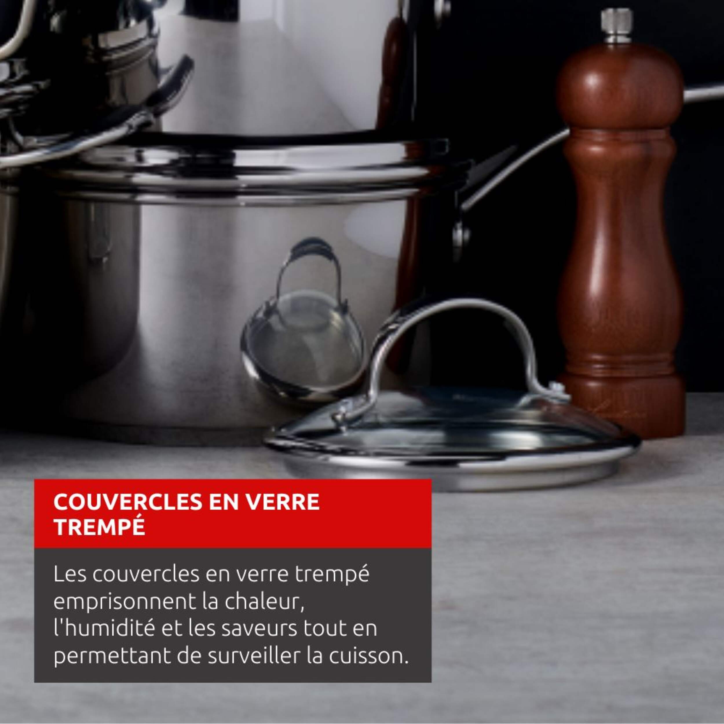COUVERCLE EN VERRE TREMPÉ : les couvercles emprisonnent la chaleur, l'humidité et la saveur tout en vous permettant de surveiller la cuisson