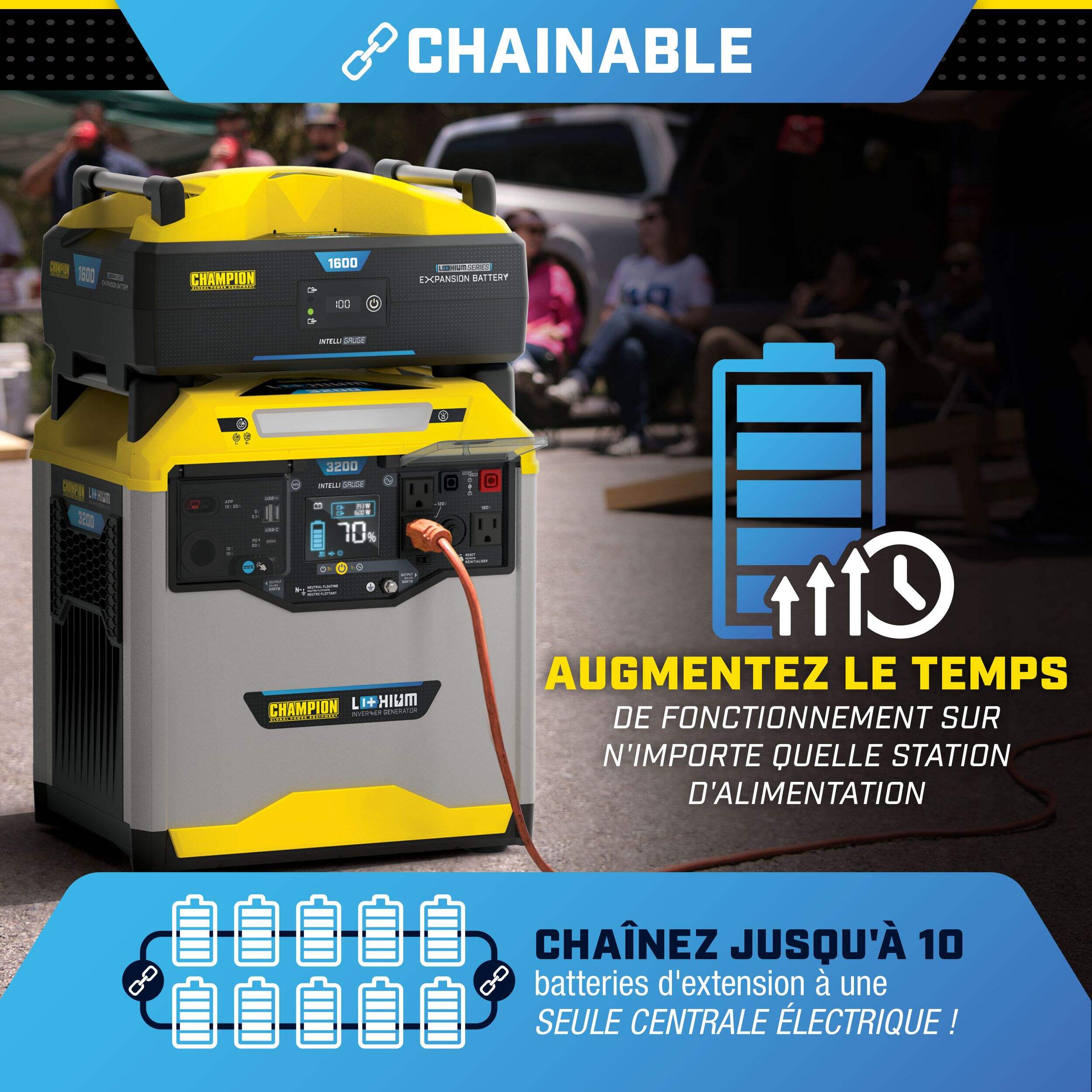 Batterie secondaire pour station d'alimentation Champion compatible avec tous les onduleurs et les stations d'alimentation Champion ParaLINK