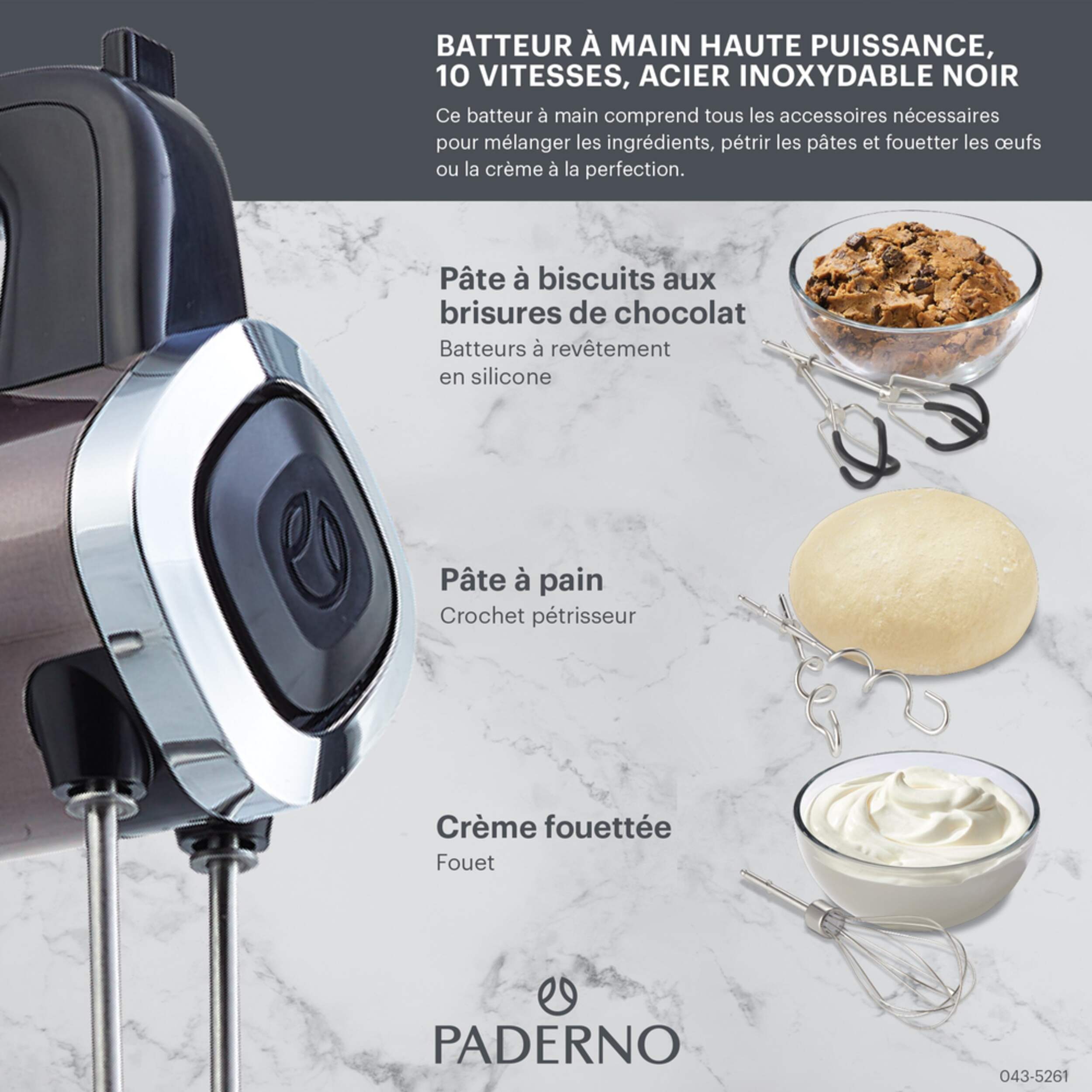 Faites cuire, fouettez ou réduisez en crème vos aliments préférés avec ce batteur à main haute puissance à 10 vitesses PADERNO. Doté d'un moteur puissant et d'une gamme d'accessoires, ce qui vous permet d'accomplir facilement n'importe quelle tâche de cuisson. Choisissez parmi 10 réglages pour obtenir la consistance dont vous avez besoin, que ce soit pour fouetter de la crème ou préparer la purée de pommes de terre parfaite.