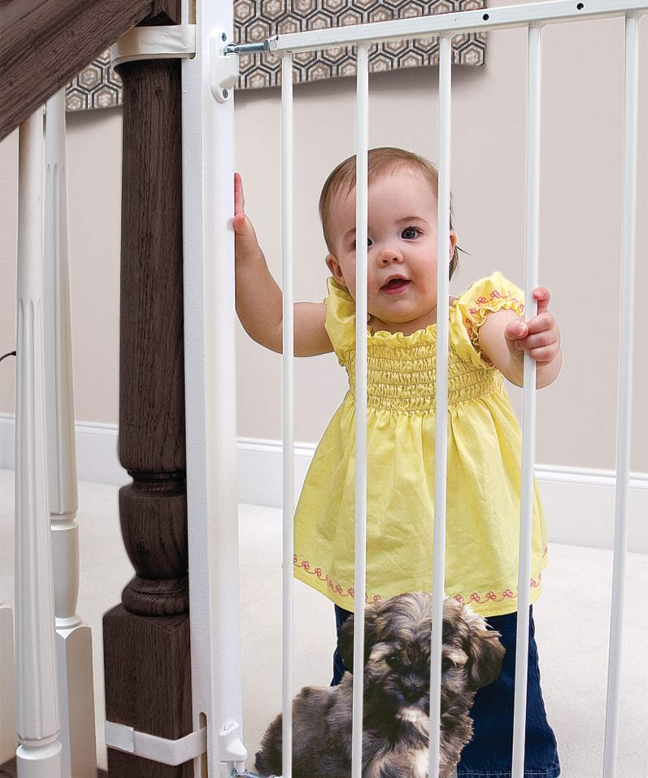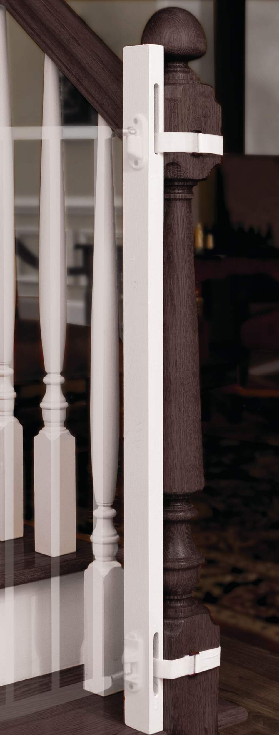 Adaptateur pour barrière de sécurité Bily EZ Fit offrant un moyen facile de fixer pratiquement n’importe quelle barrière de sécurité pour bébé à pratiquement n’importe quel escalier sans percer ou endommager votre poteau