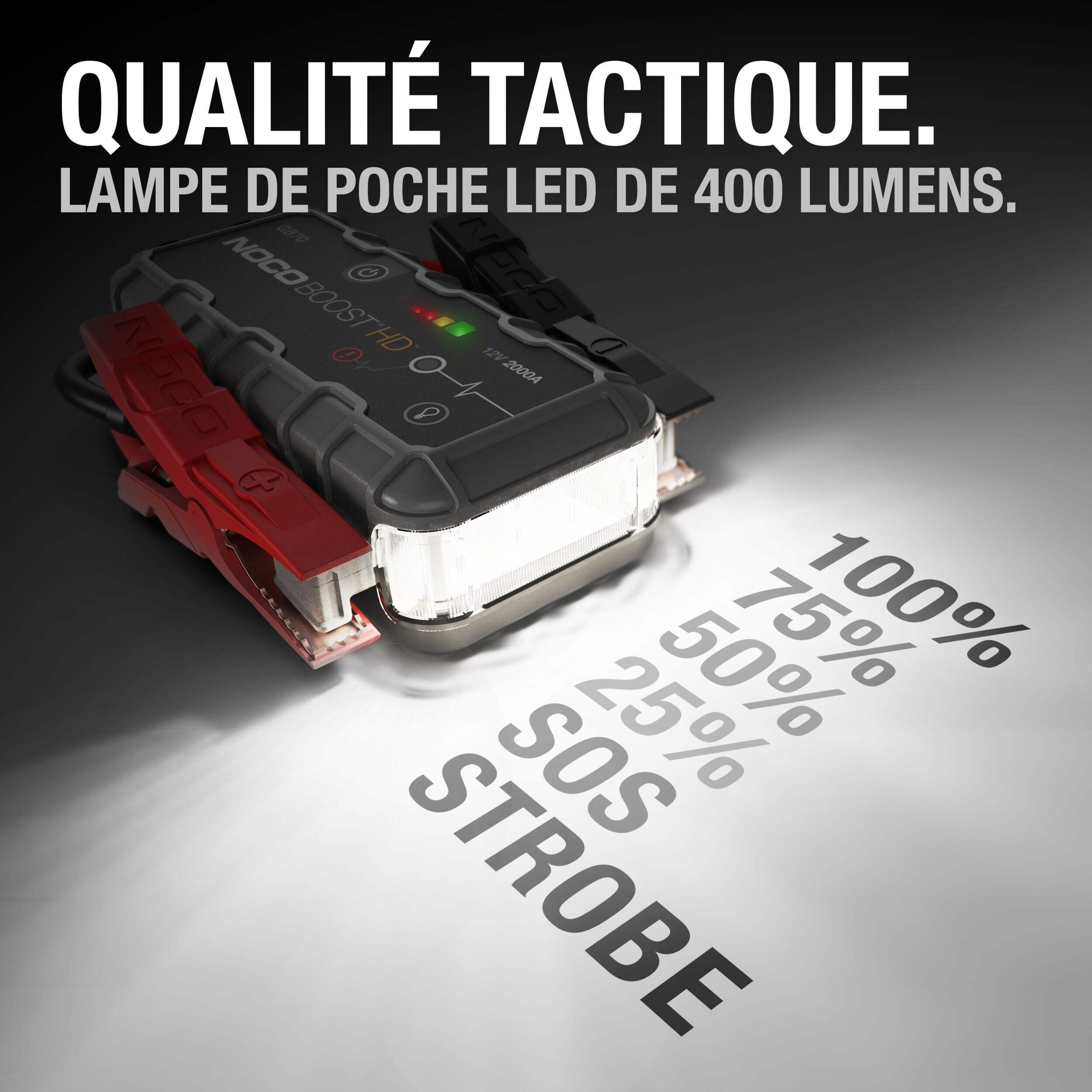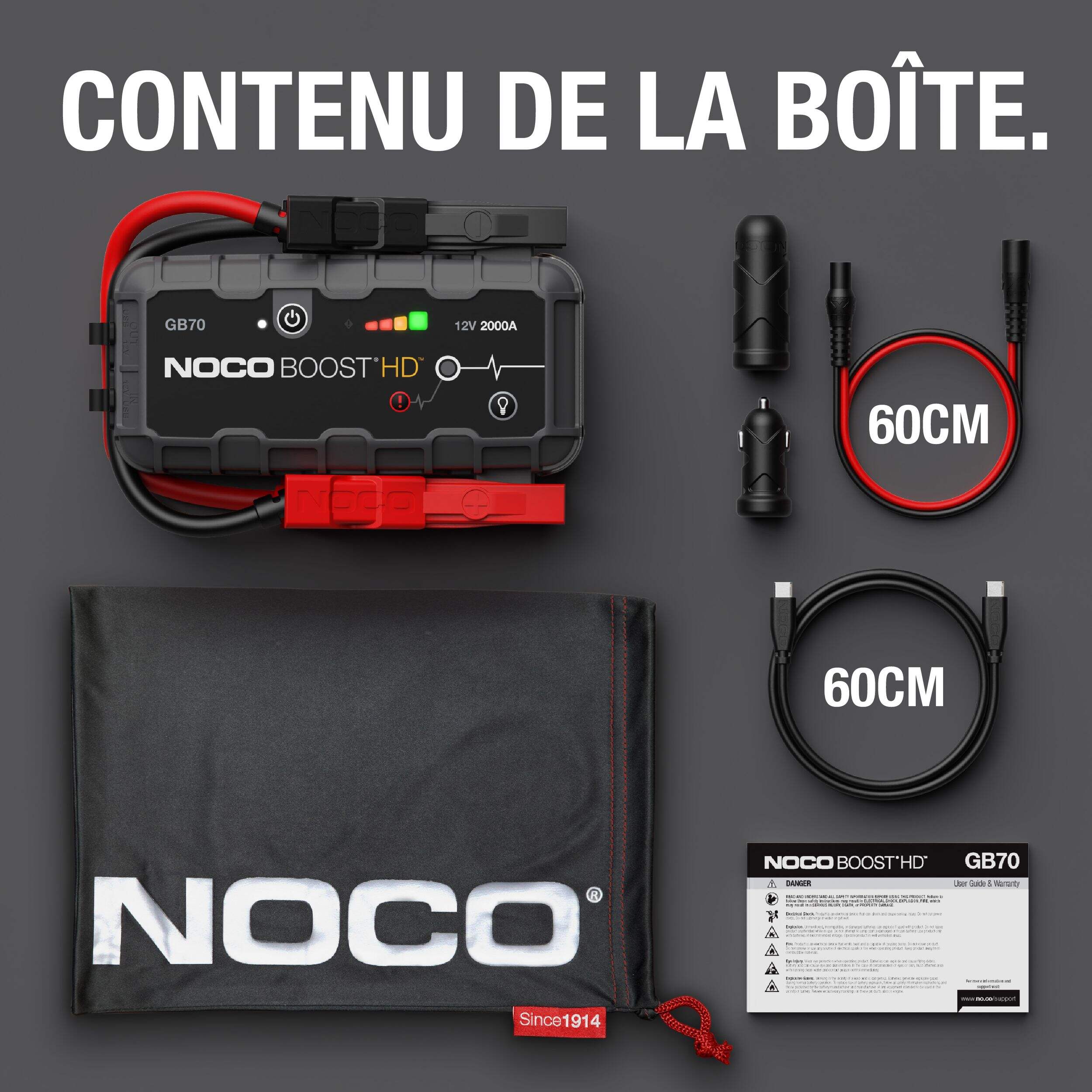 Puissance: Démarreur de batterie NOCO Genius BoostDémarreur de batterie NOCO Genius Boost, Lithium Ion ultra sécuritaire et à l'épreuve des erreurs pour les démarrages de secours, convient aux professionnels et à ceux qui n'y connaissent rien en mécanique.