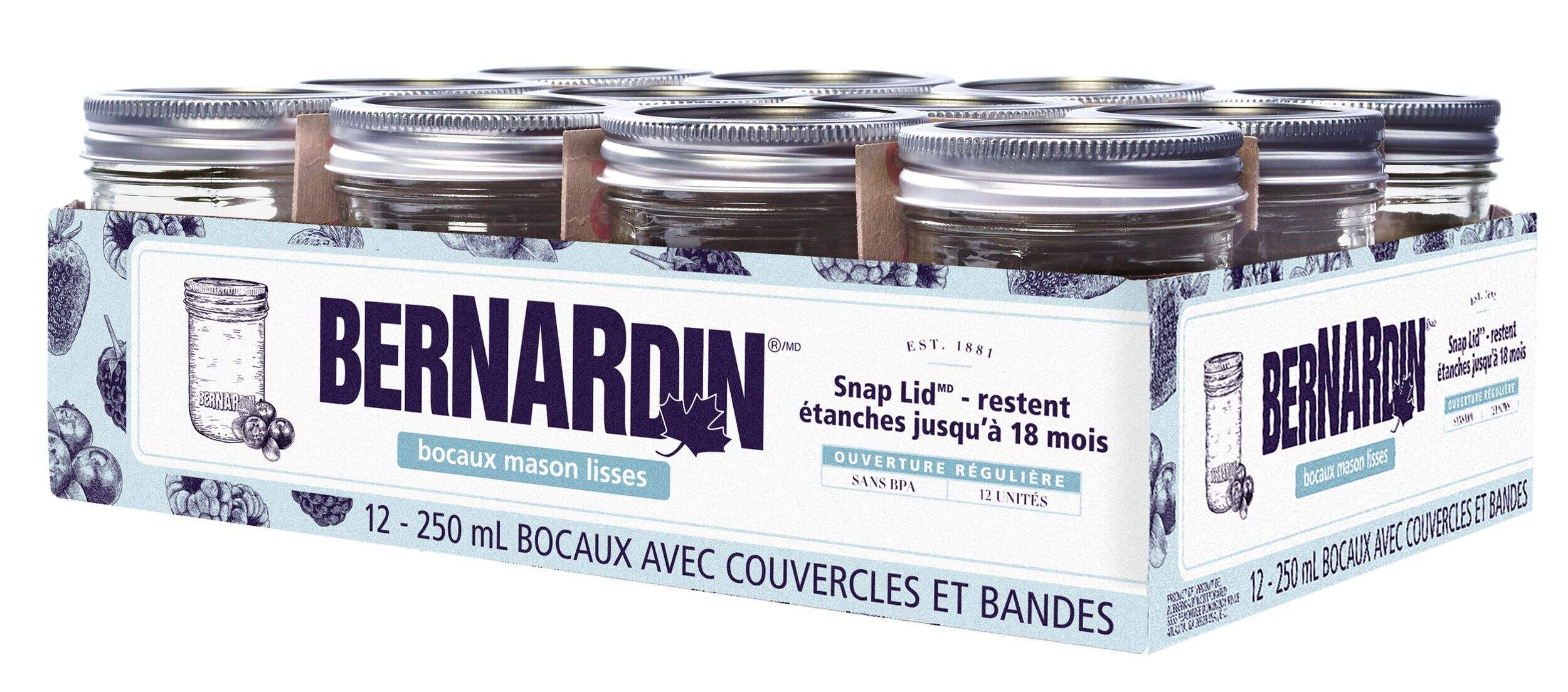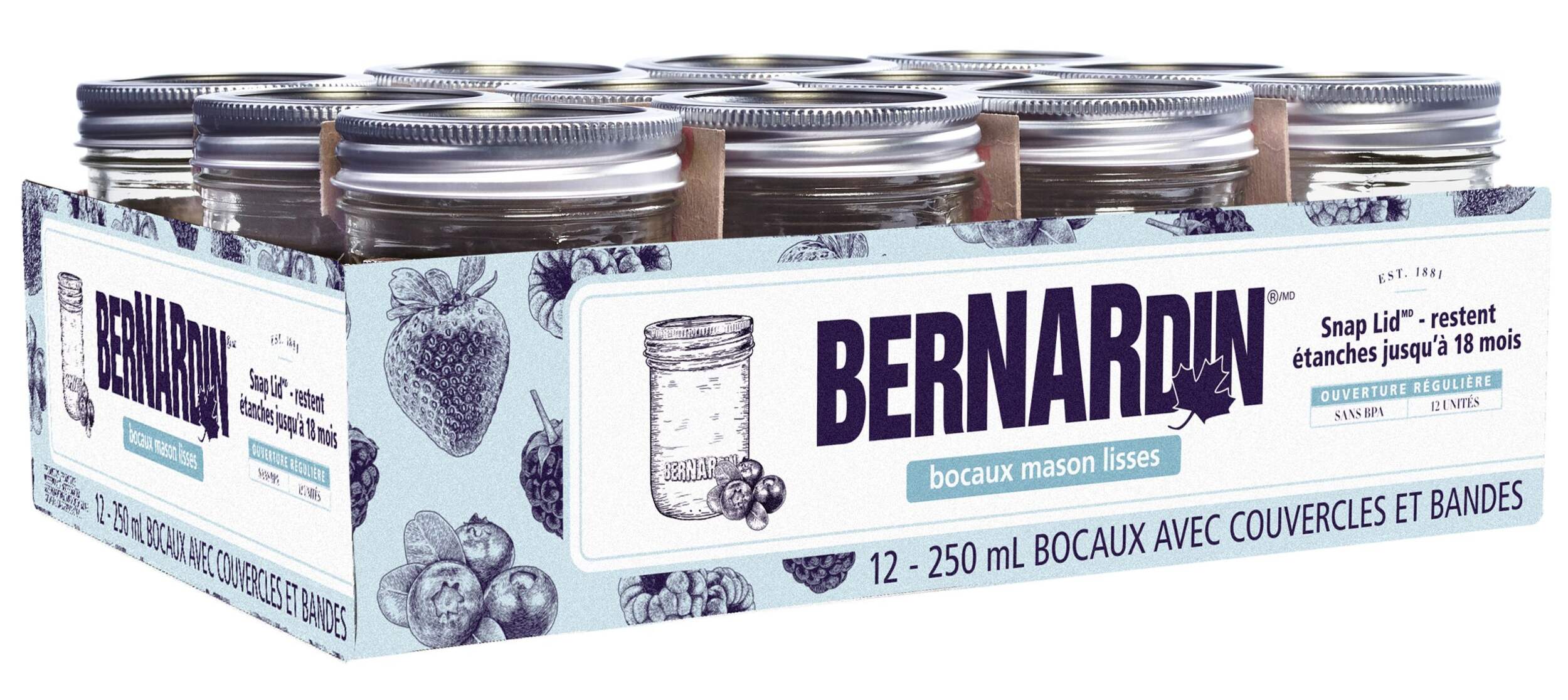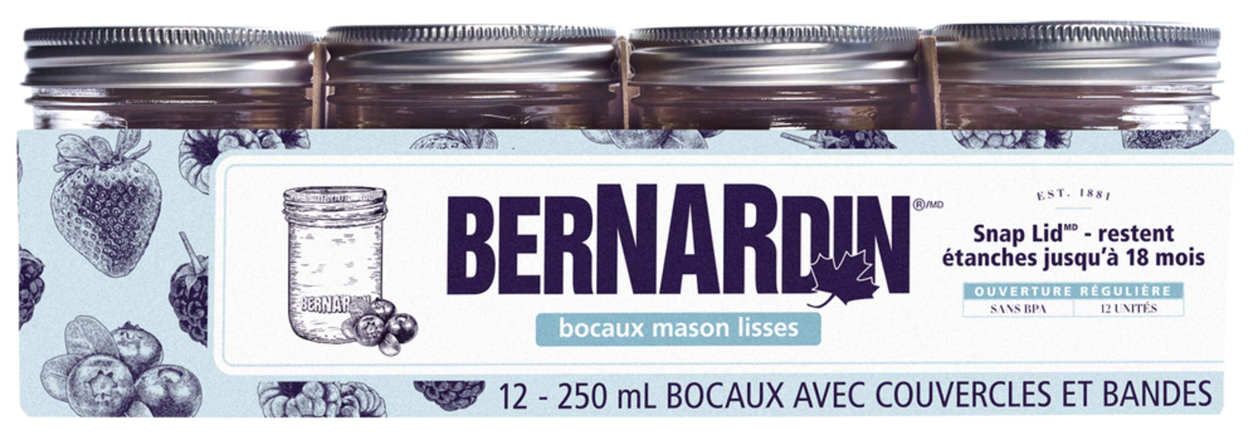 Les bocaux Bernardin de 250 mL sont parfaits pour emballer les tomates, les fruits, les jus, les cornichons, les légumes, les fruits de mer, les sauces et les soupes. Ils peuvent aussi être utiles pour le rangement et l'artisanat.