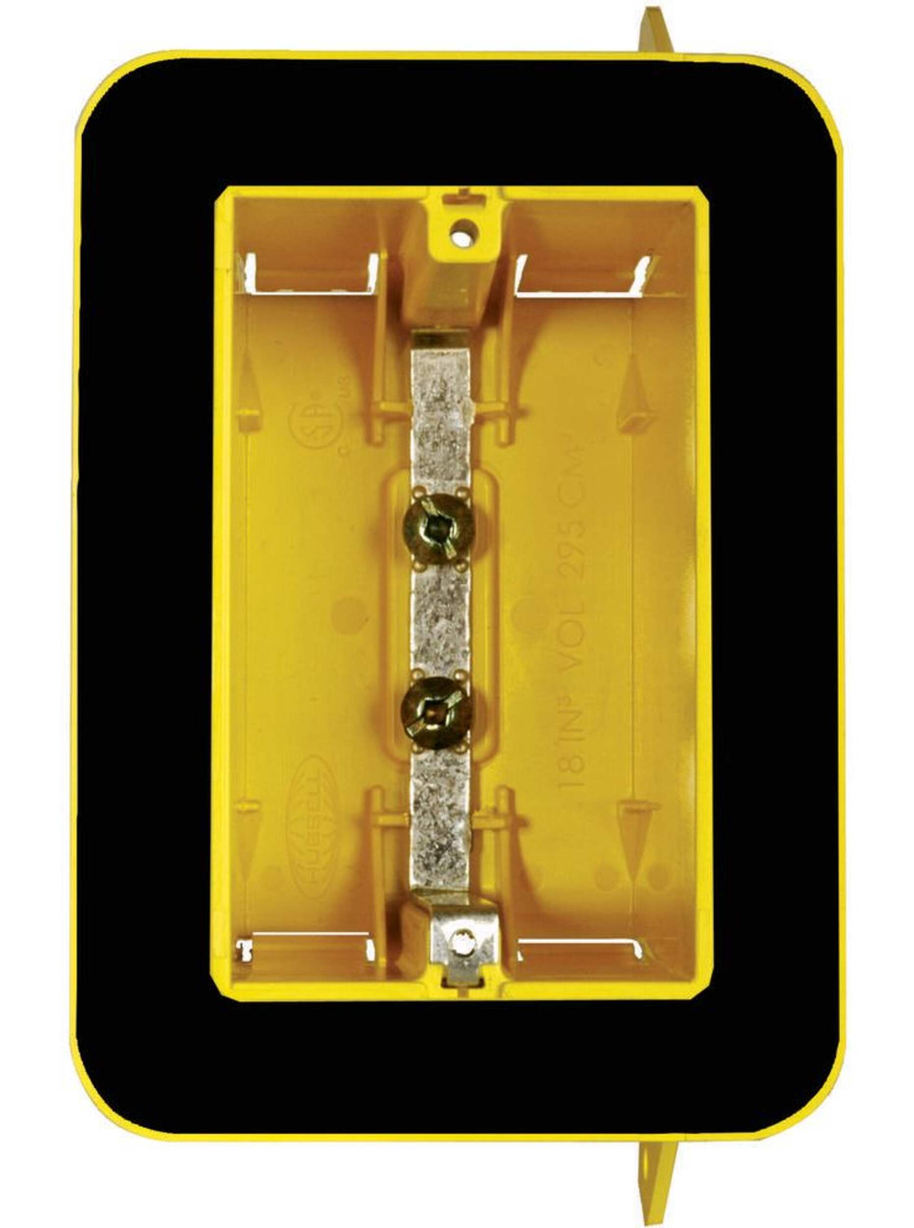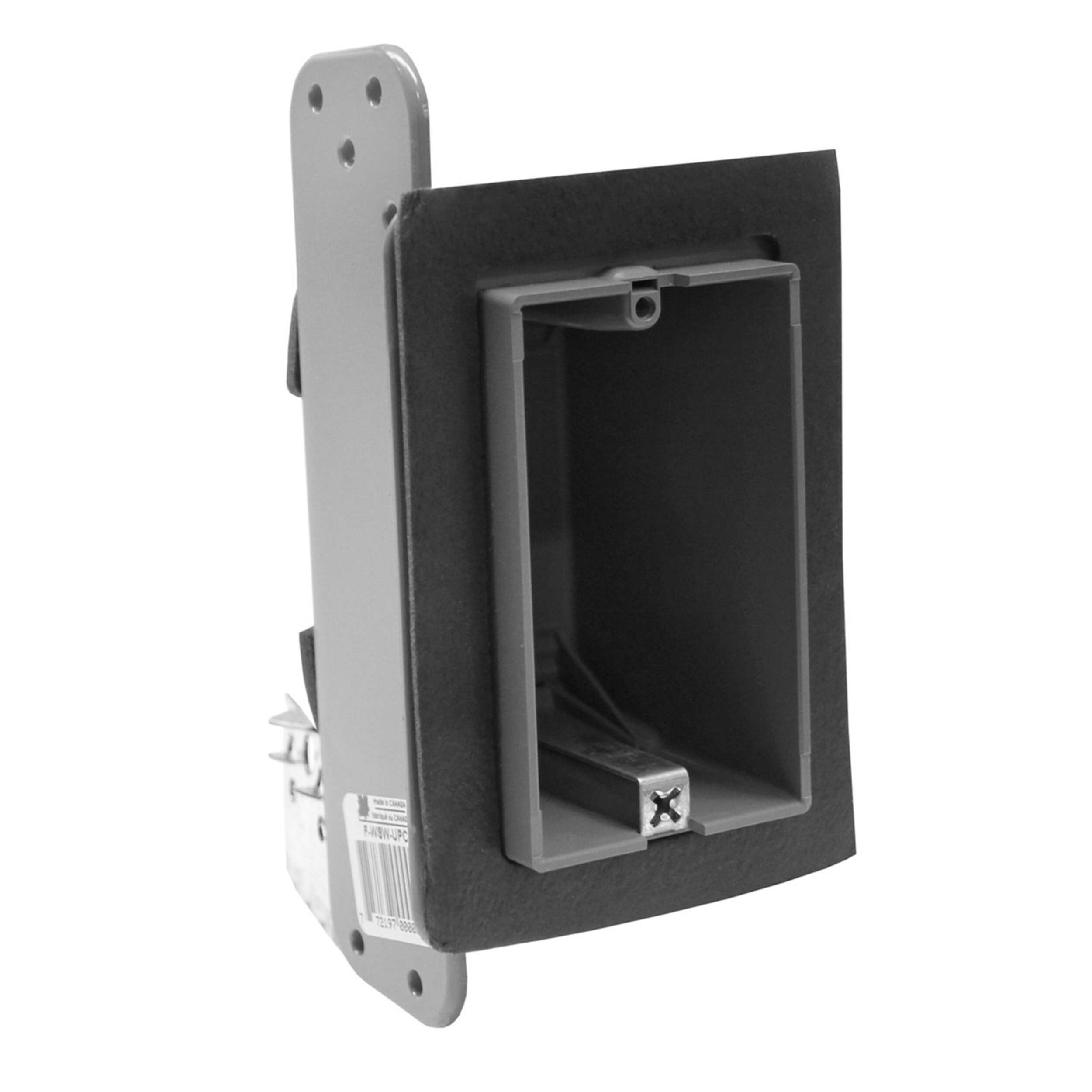 Boîtes non métalliques, boîtes de dispositifs, pour utilisation avec câble gainé non métallique, à rebord avec pare-vapeur, 18 pieds cubes, 1-gang avec support affleurant, retrait de 1/2 po, 4 serre-câbles.