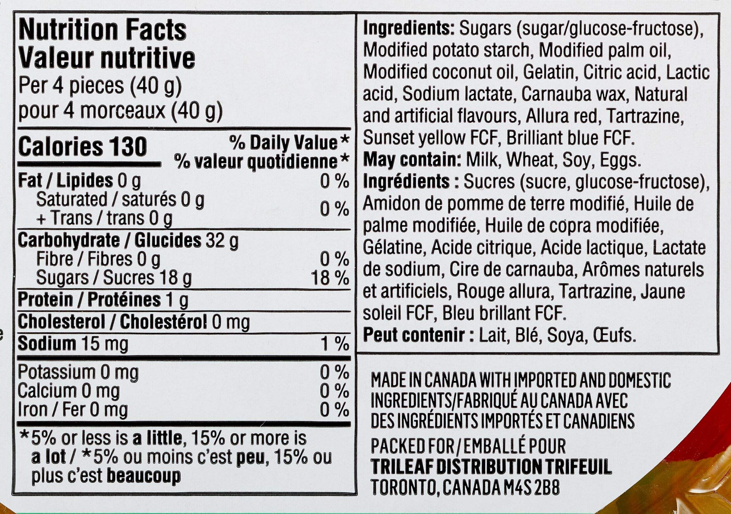 | Type de gommes et bonbons | Bonbons gélifiés |