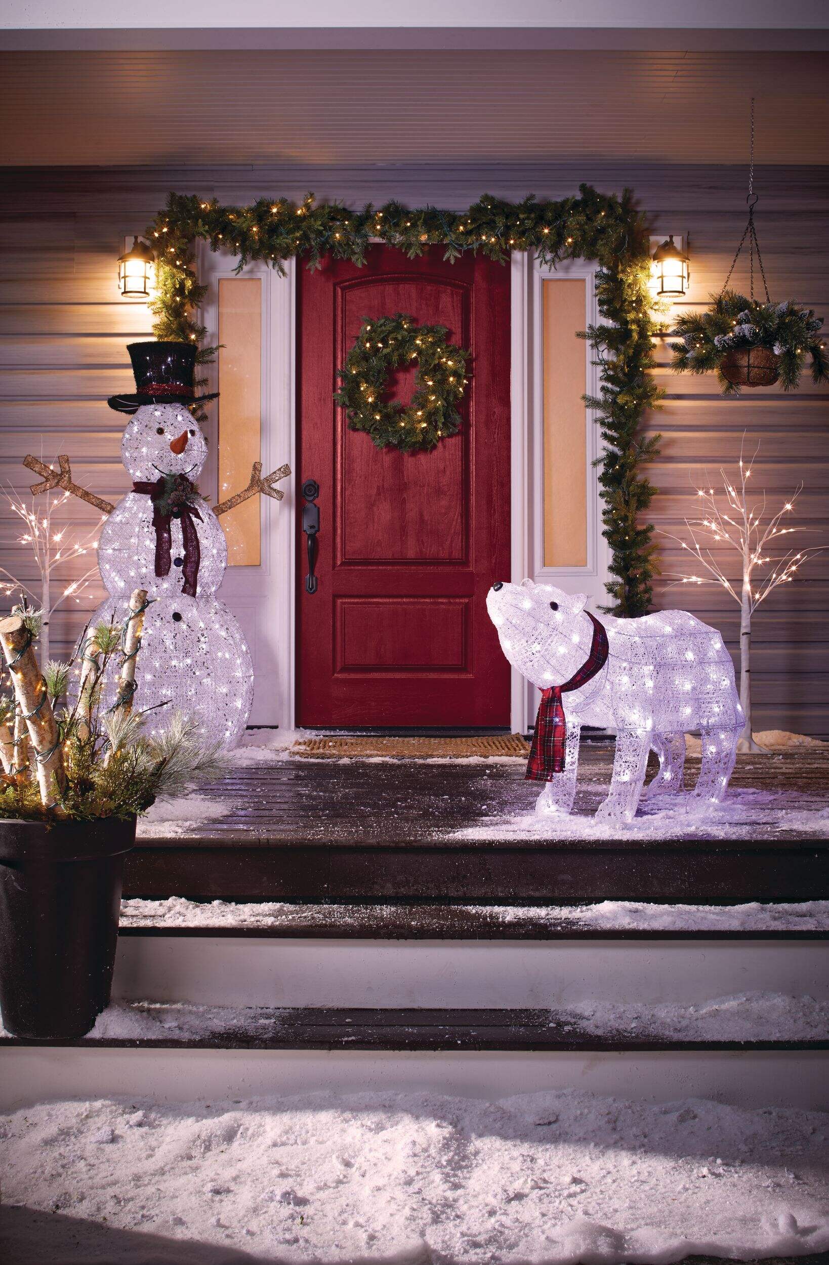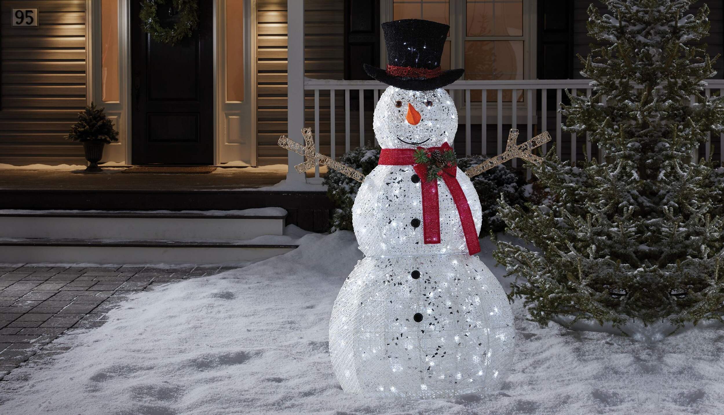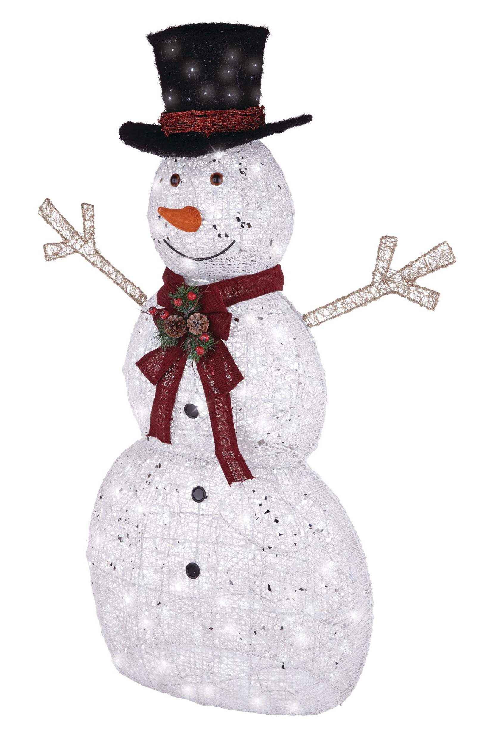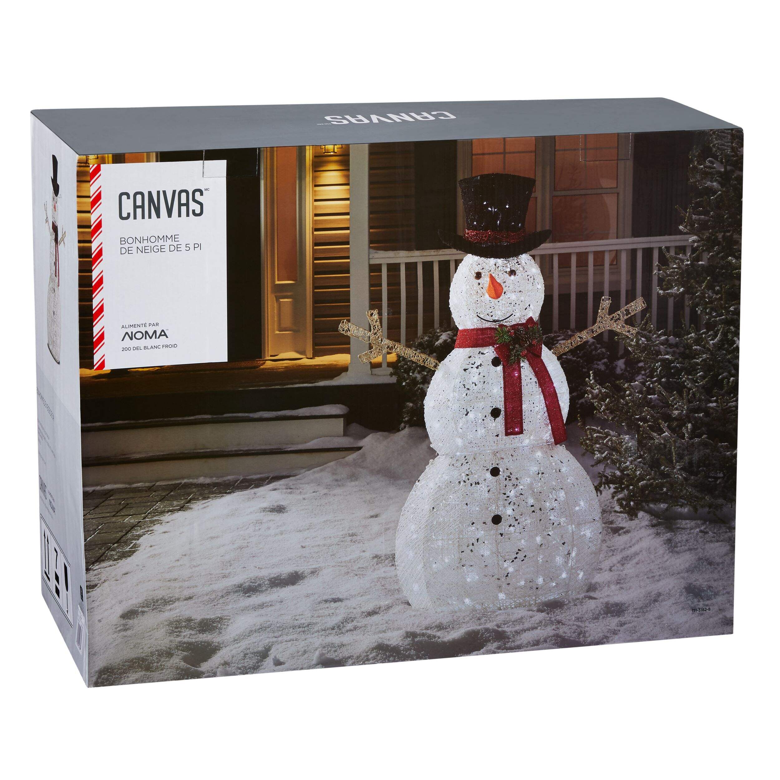 Suscitez la joie dans le coeur de votre famille et de vos amis avec cette jolie décoration de bonhomme de neige blanc arctique CANVAS. Cette figurine de bonhomme de neige en fil métallique vous accueille toujours chaleureusement grâce à ses bras allongés et à son éclairage à DEL de la tête aux pieds. Avec ses mini-ampoules en forme de cristaux illuminés des pieds jusqu'au sommet de son coquet haut-de-forme noir, cette décoration de bonhomme de neige ravira vos visiteurs ou les voisins lors de leur promenade.