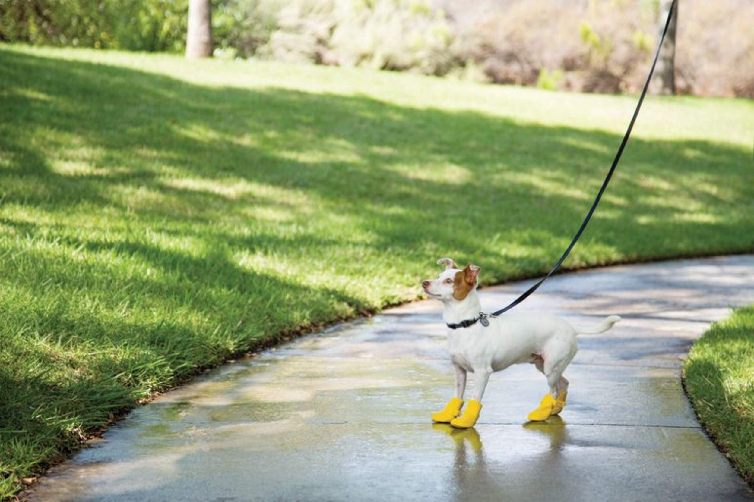 Vous n'aurez plus jamais à reporter une sortie au grand air en enfilant des bottes jaunes en silicone imperméables pour chiens. Avec une semelle texturée qui aide à prévenir les glissements et les chutes, ces bottes offrent une protection étanche pour que ses pattes restent au sec pendant qu'il explore les flaques d'eau.