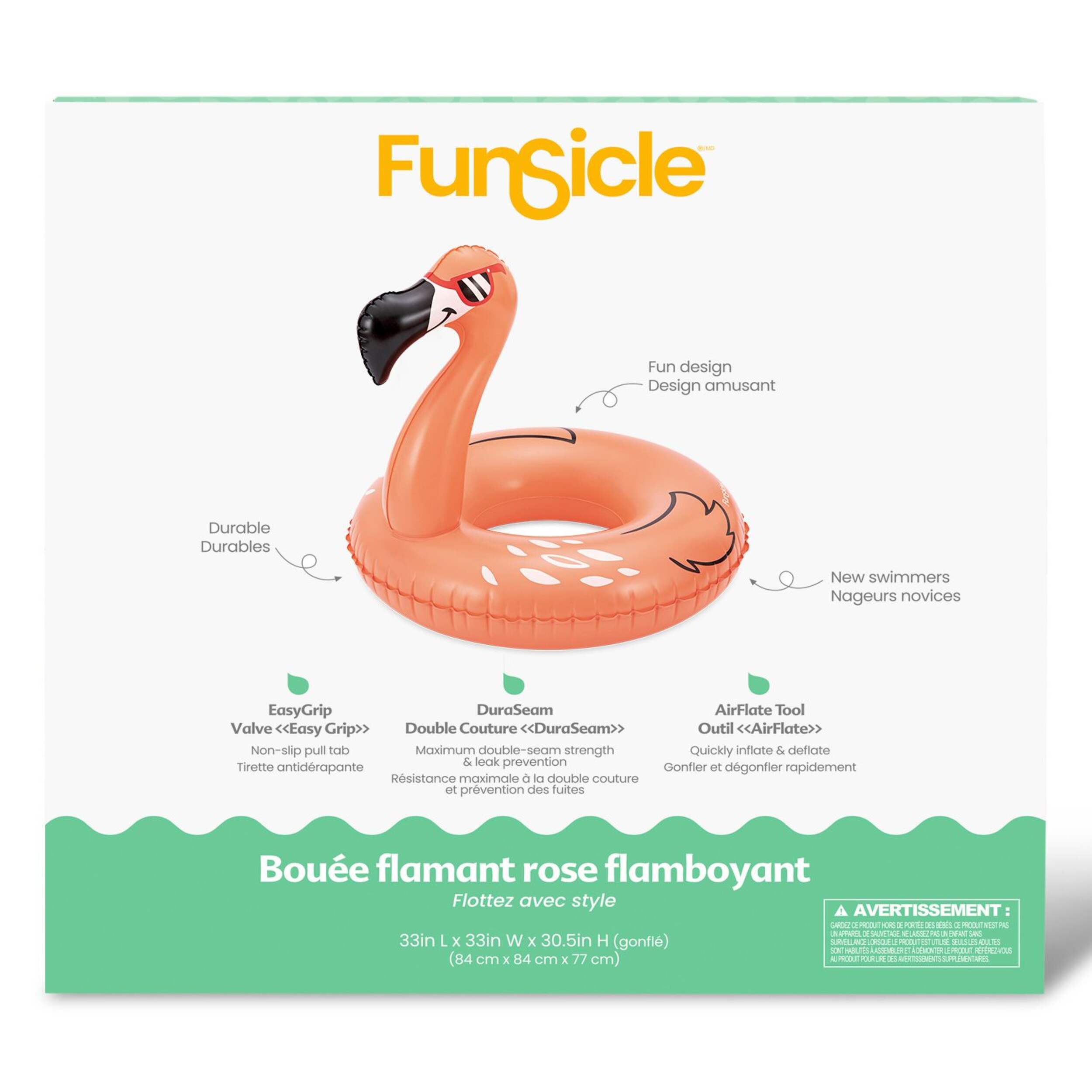Le flotteur de piscine gonflable Flamingo de Funsicle est le compagnon de piscine idéal pour les journées ensoleillées. Il suffit de gonfler son tube étanche à double couture à l'aide de l'outil AirFlate inclus, puis de vous détendre sur ce flamant tropical. Que ce soit pour vous détendre dans une piscine, flotter sur un lac ou prendre les vagues dans l'océan, cette superbe bouée offre soutien et plaisir toute la journée. Allongez-vous, laissez vos soucis s'échapper et profitez de bons moments à la piscine.