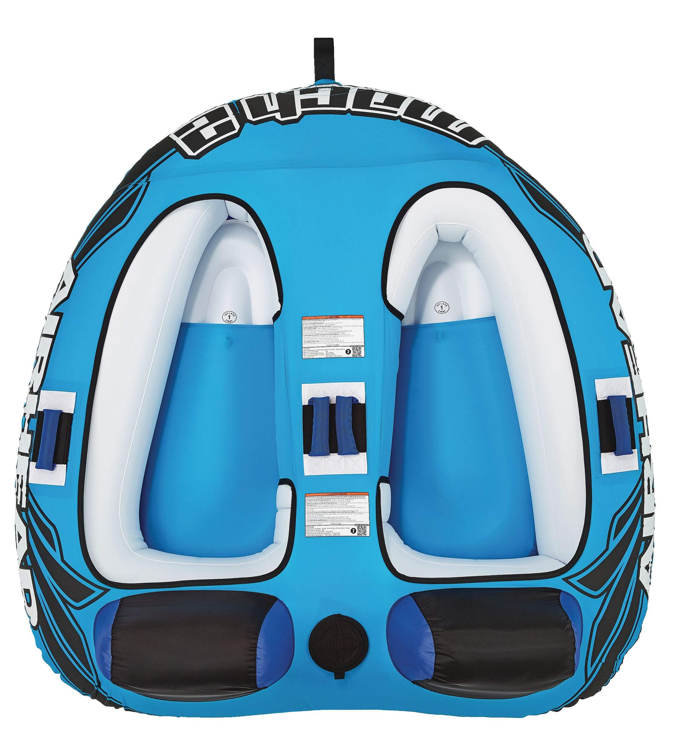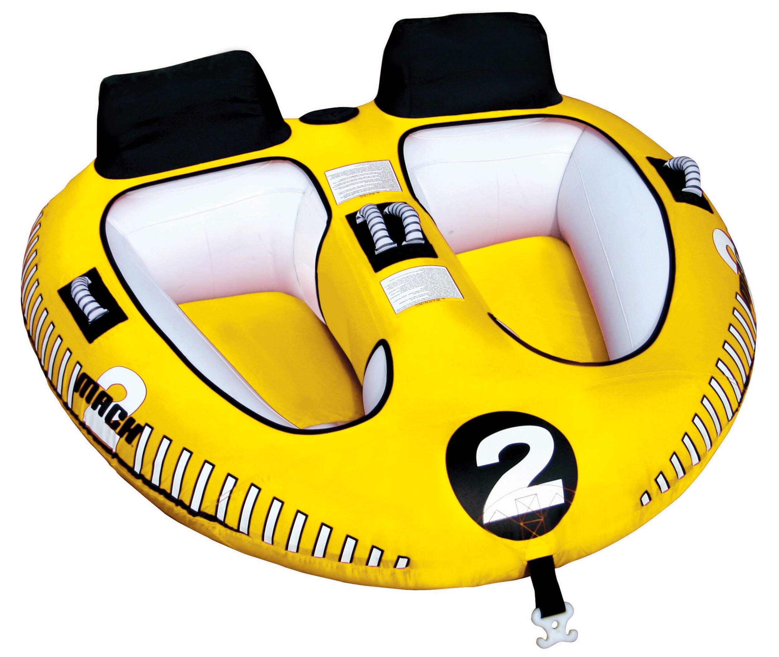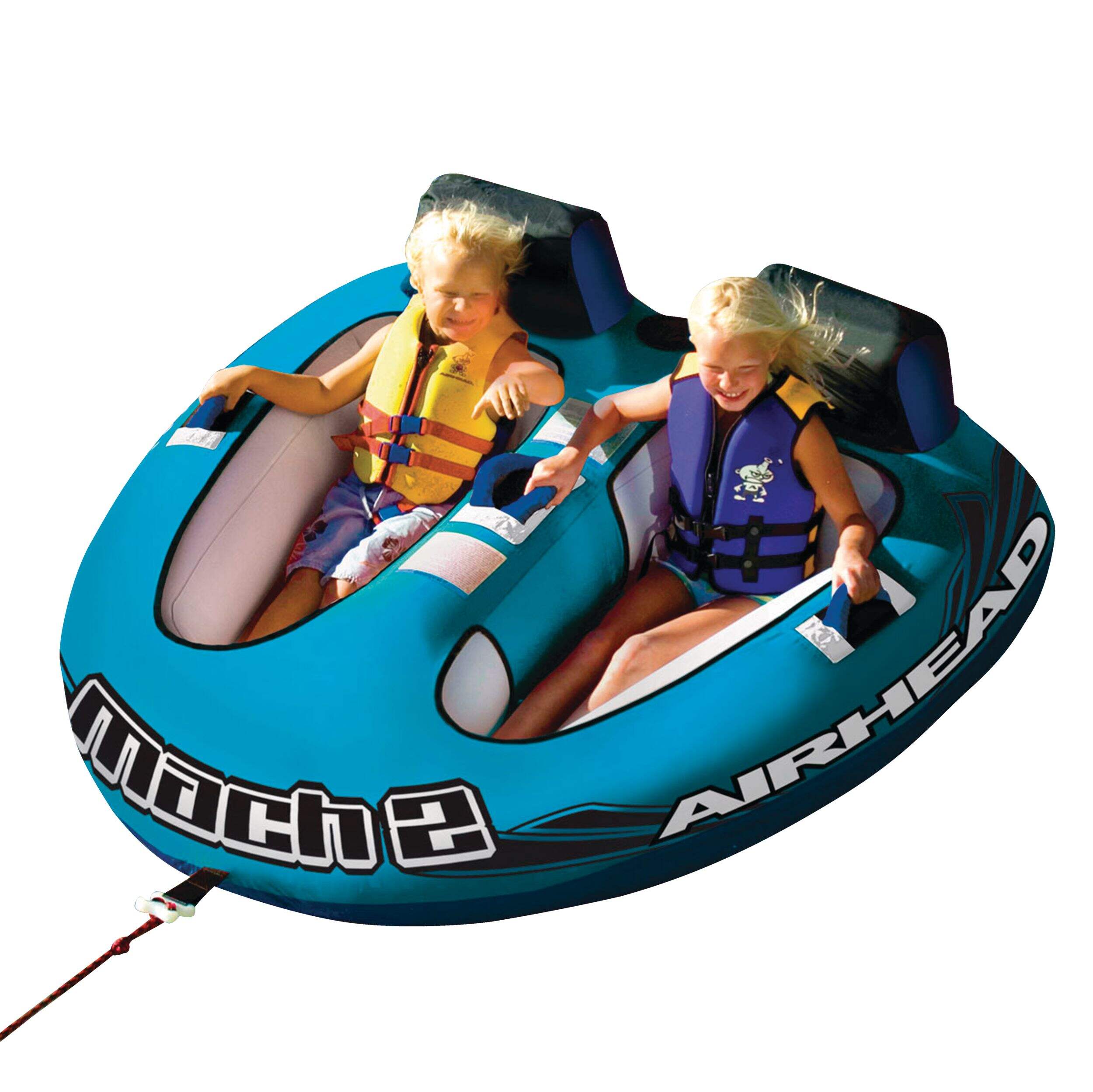 La bouée gonflable tractable Airhead Mach 2 est une option idéale pour toute la famille qui embellit la journée au lac. Conçue comme un cockpit, elle offre une expérience confortable et sûre pour tous les âges. Les jeunes apprécieront la stabilité de la forme du poste de pilotage, tandis que les plus âgés pourront encore profiter de l'expérience palpitante de la balade. Les appuie-tête pratiques offrent un meilleur confort et les quatre poignées de luxe avec protège-jointures en néoprène assurent une prise sûre et confortable. Cette bouée gonflable tractable pour deux personnes offre à la fois excitation et sécurité pour une expérience inoubliable sur l'eau.