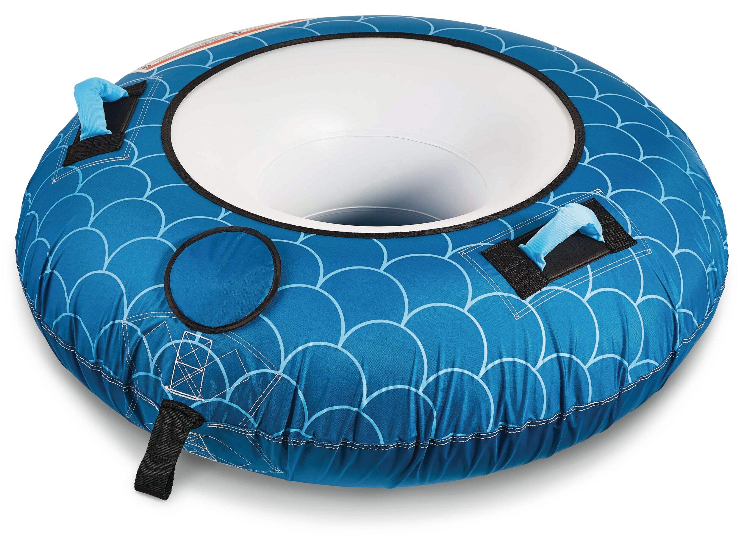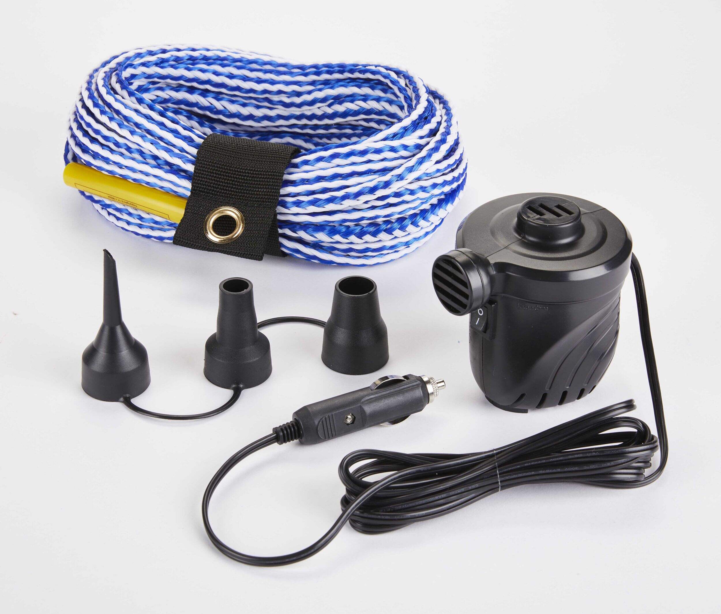 Bouée tractable Outbound qui contient tout ce dont vous avez besoin pour vous installer derrière le bateau : Bouée tractable pour 1 passager, pompe à air électrique c.c. et corde de remorquage. Bouée aquatique faite d'une vessie en PVC robuste pour une durabilité accrue et scellée avec des coutures soudées électroniquement pour prévenir la perte d'air. Pompe incluse avec la bouée aquatique gonflable qui fournit une puissance de pompage de l'air de 12 V pour un gonflage rapide et facile et soupape de vitesse qui permet un dégonflage rapide lorsque nécessaire. Trousse comprenant aussi une corde de remorquage durable pour fixer la bouée aquatique à votre bateau.