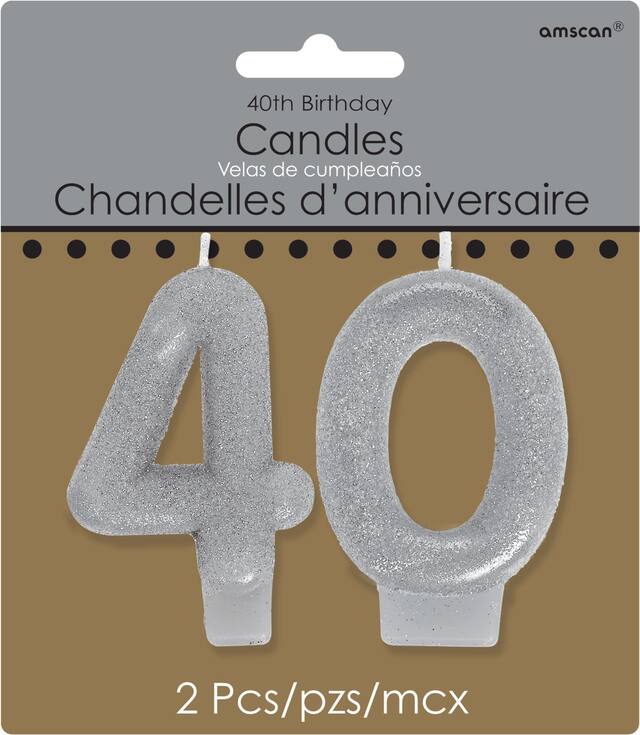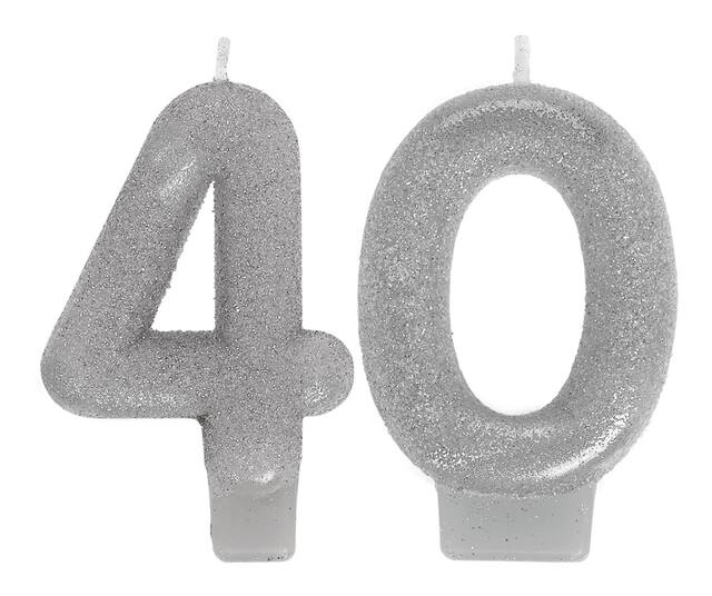 Célébrez cette étape importante avec les bougies d'anniversaire numéro 40, argent scintillant