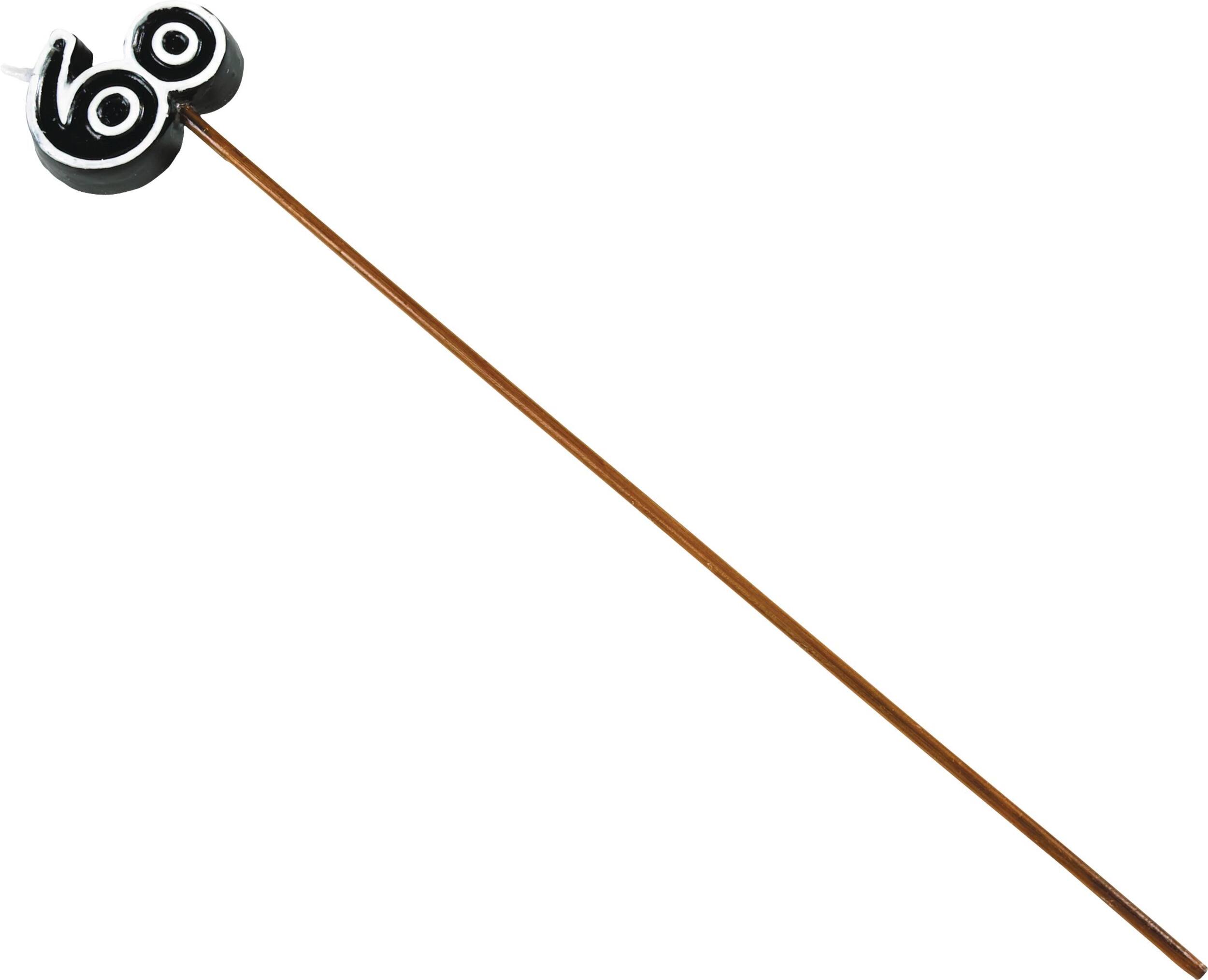 Bougies sur cure-dents d'anniversaire de 60 ans qui sont dotées d'une bougie blanche et noire et du numéro 60 fixée à une base en plastique robuste