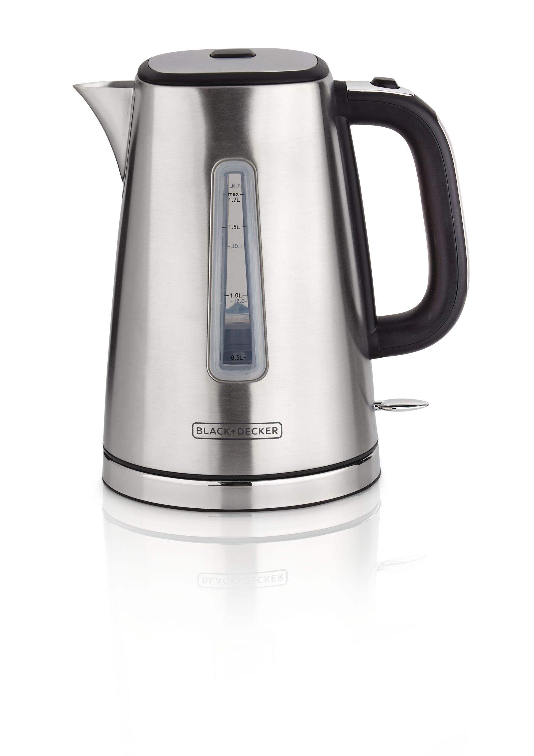 Bouilloire électrique sans fil Black & Decker Kitchen ToolsMD avec arrêt automatique qui promet une ébullition rapide, sans tracas. Technologie d'ébullition rapide intégrée permettant à l'eau de chauffer jusqu'à 2 fois plus rapidement, ce qui vous permet de profiter de votre tasse plus rapidement. Conduites de remplissage d'eau internes et fenêtre vous permettant d'ajouter facilement la bonne quantité d'eau. Somme toute, la bouilloire est une solution simple et intelligente pour faire bouillir de l'eau sans cordon.