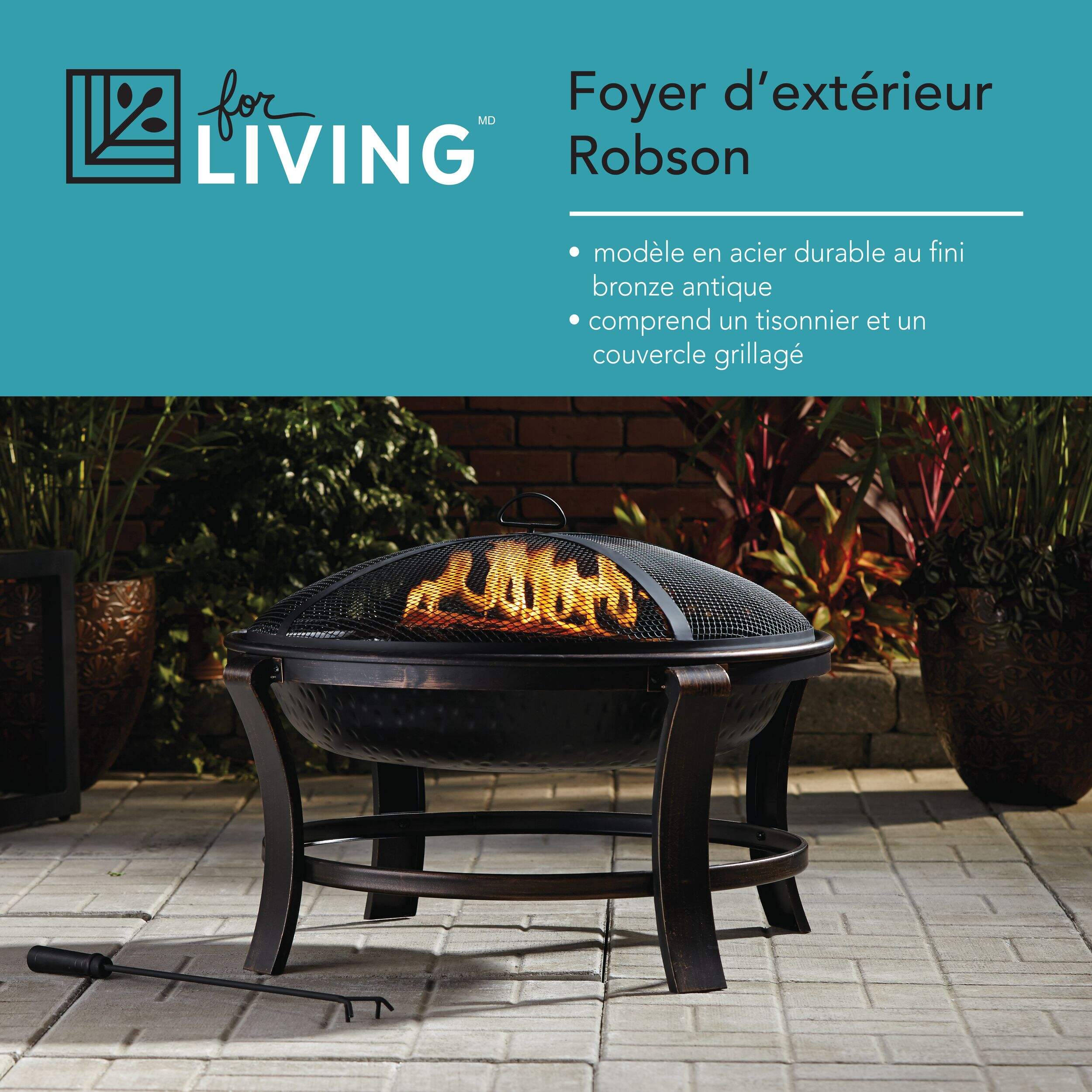 Profitez du plein air à la maison avec ce brasero rond For Living Robson. Doté d'une construction en acier durable et d'un élégant fini bronze antique qui rehausse le décor de votre cour arrière, ce brasero rond est un incontournable pour l'extérieur qui transforme votre cour ou votre terrasse en un élégant espace de rassemblement pour vos amis et votre famille. Facile à assembler, ce brasero peut être placé à l'endroit où vous voulez allumer le feu. Le couvercle en maille protège le feu en toute sécurité tandis que le tisonnier vous permet d'ajuster le bois d'allumage et vous aide à retirer le pare-étincelles en toute sécurité lorsque vous entretenez le feu. Ajoutez du bois à ce brasero lorsque vient le temps de faire des S'mores avec les enfants ou utilisez des bougies pour créer un éclairage et une ambiance décoratifs pendant que vous dégustez des boissons d'été avec vos amis.
