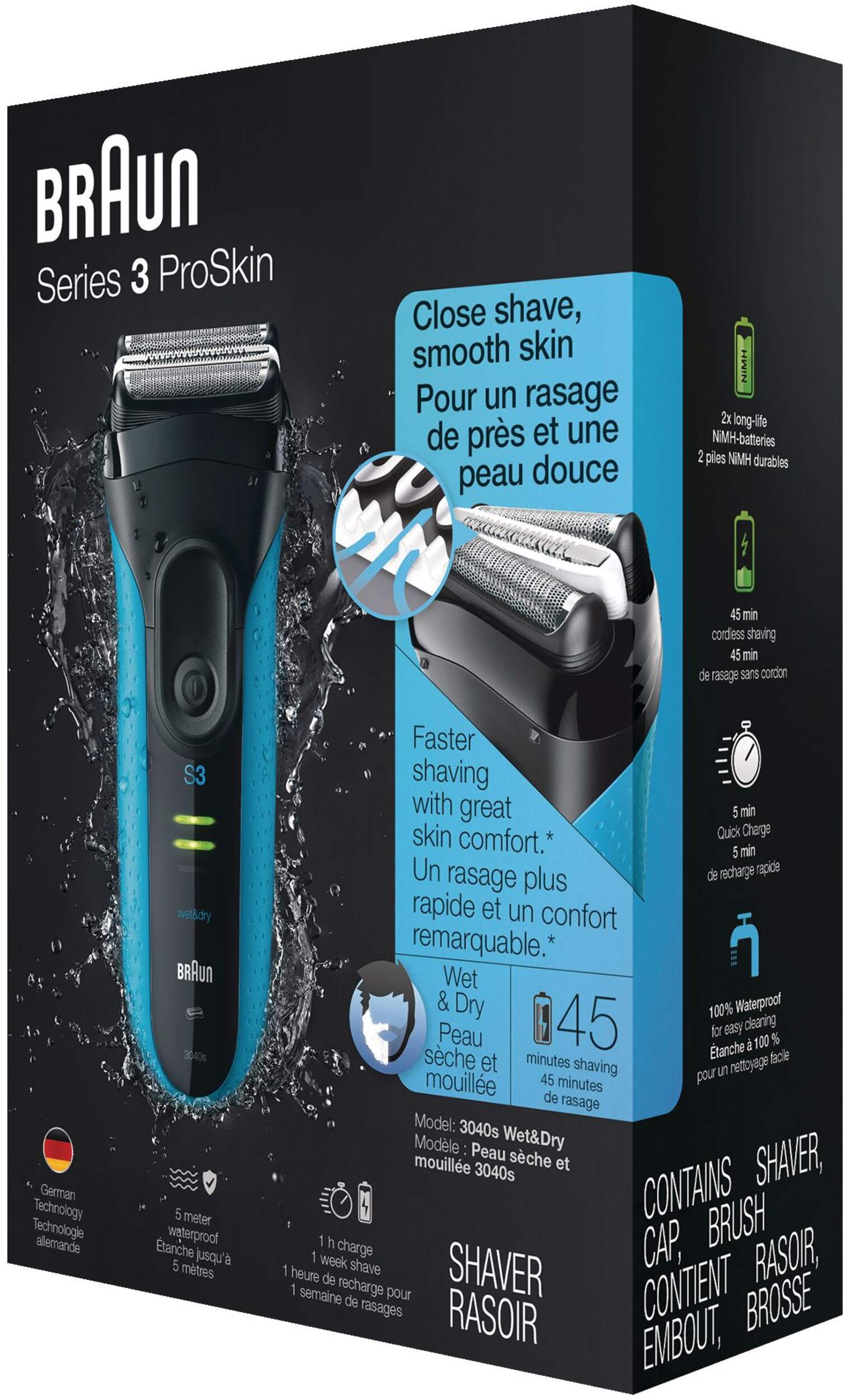 Le rasoir électrique pour peau sèche ou humide Braun Series 3: 3040s est conçu pour offrir un rasage net et en douceur, et un confort optimal pour la peau. Il est idéal pour une utilisation avec de la mousse ou du gel, que ce soit sous la douche ou au sec. Grâce à sa tondeuse de précision, il s'occupe facilement des moustaches et des favoris, tandis que la prise ergonomique assure une manipulation sécuritaire, même dans des conditions humides. Ce rasoir à grille rechargeable est idéal pour une utilisation quotidienne ou en voyage.