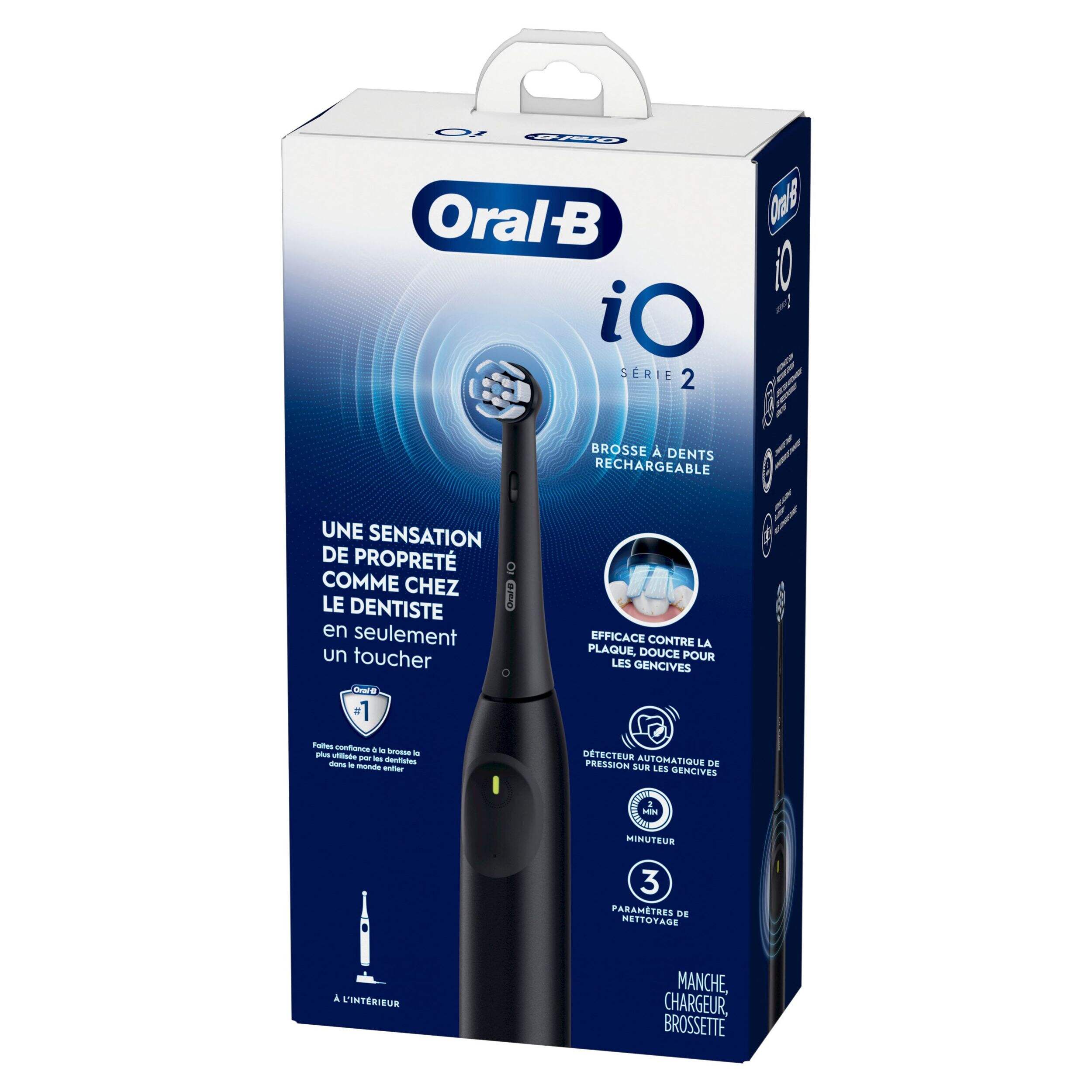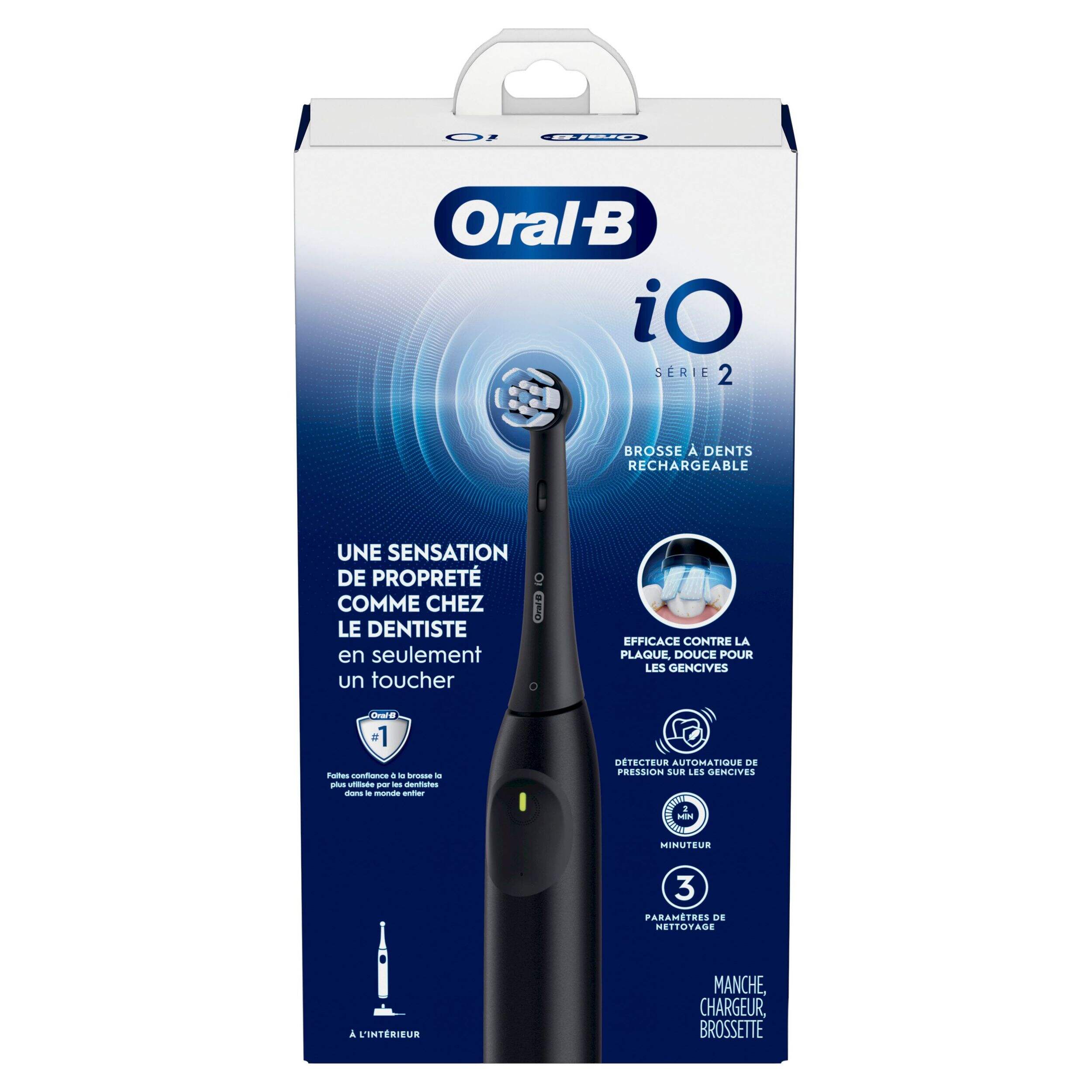 La brosse à dents électrique rechargeable Oral-B iO2 utilise des microvibrations à la fois puissantes et douces et une tête ronde conçue selon les recommandations des dentistes d'Oral‑B pour des dents 100 % plus propres qu'avec une brosse manuelle. Si avancée et pourtant facile à utiliser, vous aurez la sensation d'un nettoyage chez le dentiste en une seule pression sur le bouton. Elle élimine 100 % plus de plaque qu'une brosse à dents manuelle ordinaire grâce à la technologie iO la plus avancée d'Oral-B : dur sur la plaque, mais doux pour les gencives. Elle est conçue pour faciliter la transition aux brosses électriques grâce à un bouton à 1 touche, un son silencieux, une pile longue durée et un démarrage avec le réglage de brossage ultra-sensible.