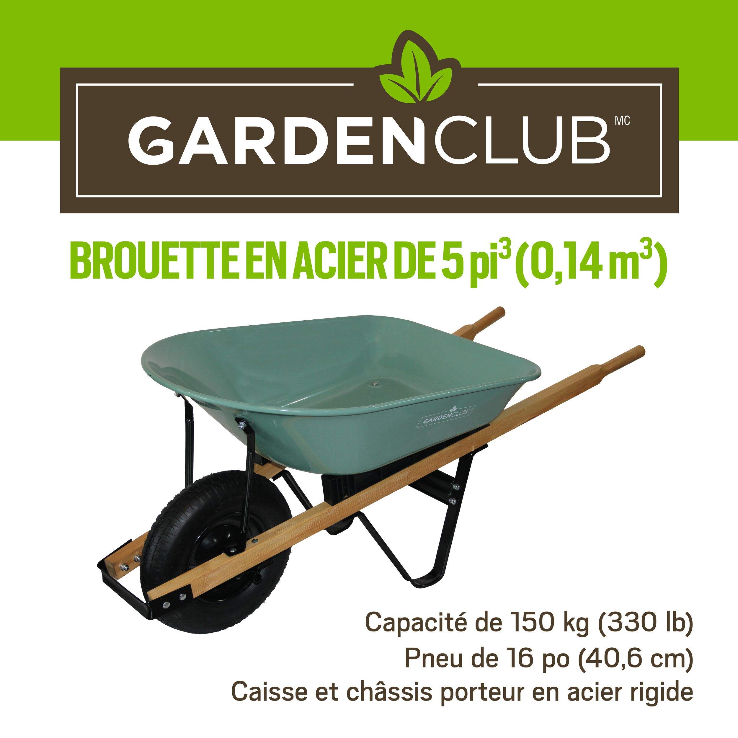 Brouette de 5 pi3 Garden Club dotée d'une armature en acier durable avec un fini peint par poudrage, pour une protection antirouille plus durable