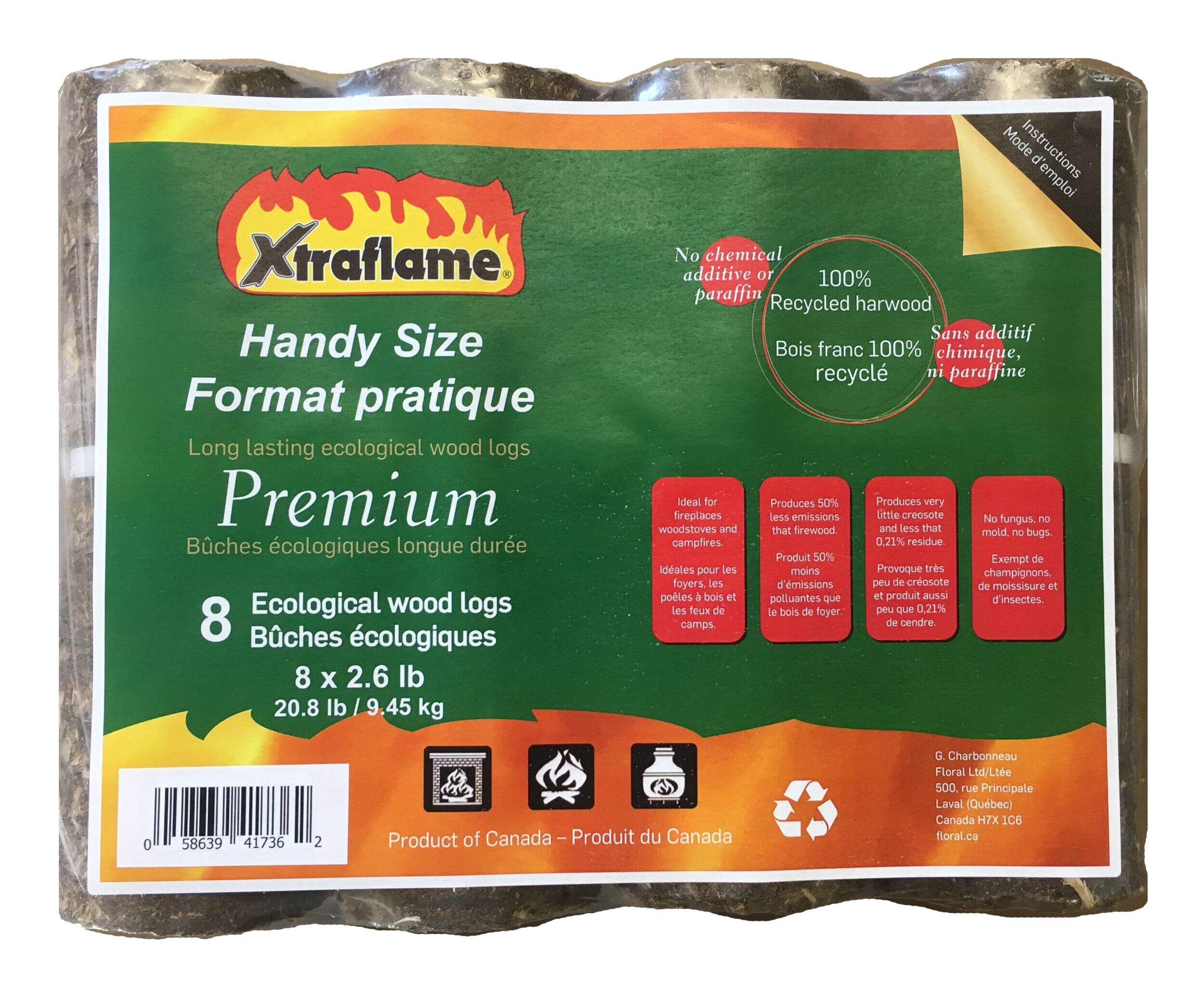 Profitez d'une combustion plus propre avec les bûches écologiques de taille pratique XTRAFLAME. Faites de bois franc recyclé à 100 %, ces bûches sont idéales pour les foyers, les poêles à bois et les feux de camp. Chaque paquet contient 8 bûches de 2,6 lb complètement exemptes de champignons, de moisissures et d'insectes. En plus d'être un choix durable qui produit très peu de créosote et moins de 0,21 % de résidus, elles produisent 50 % moins d'émissions que le bois de chauffage ordinaire. Profitez du confort d'un feu chaud grâce aux bûches écologiques XTRAFLAME.