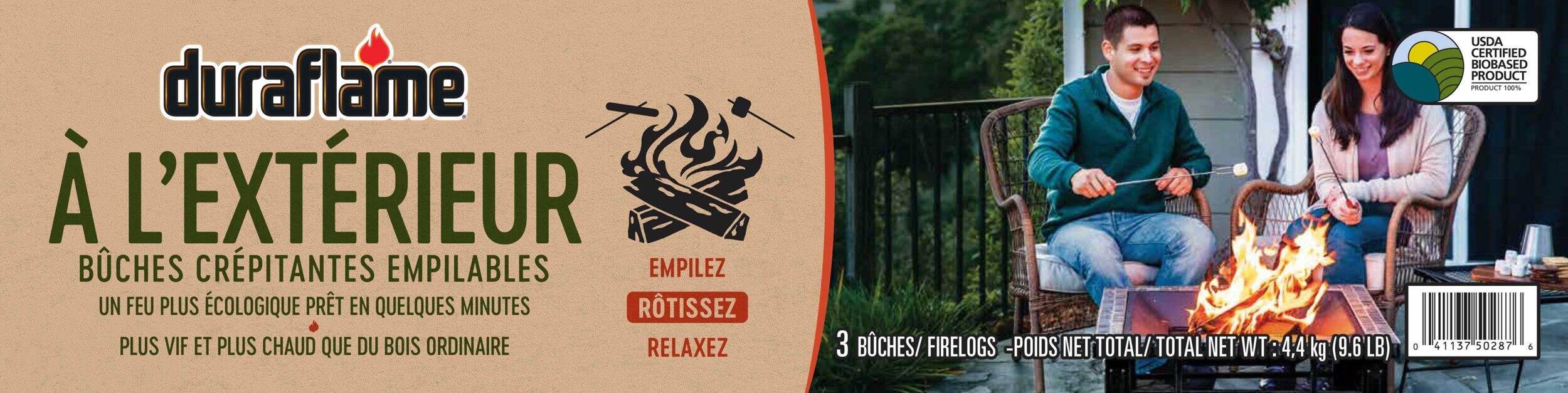Les bûches d'extérieur Duraflame sont conçues pour une combustion plus propre et plus sécuritaire, produisant 30 % moins d'opacité de fumée, 63 % moins d'émissions de particules et 80 % moins de monoxyde de carbone. Idéales pour tout feu extérieur, y compris les foyers d'extérieur et les feux de camp, les feux de plage, ces bûches produisent une flamme chaude et crépitante tout en minimisant l'impact sur l'environnement. Profitez d'une expérience de plein air sans tracas et écologique grâce à Duraflame.