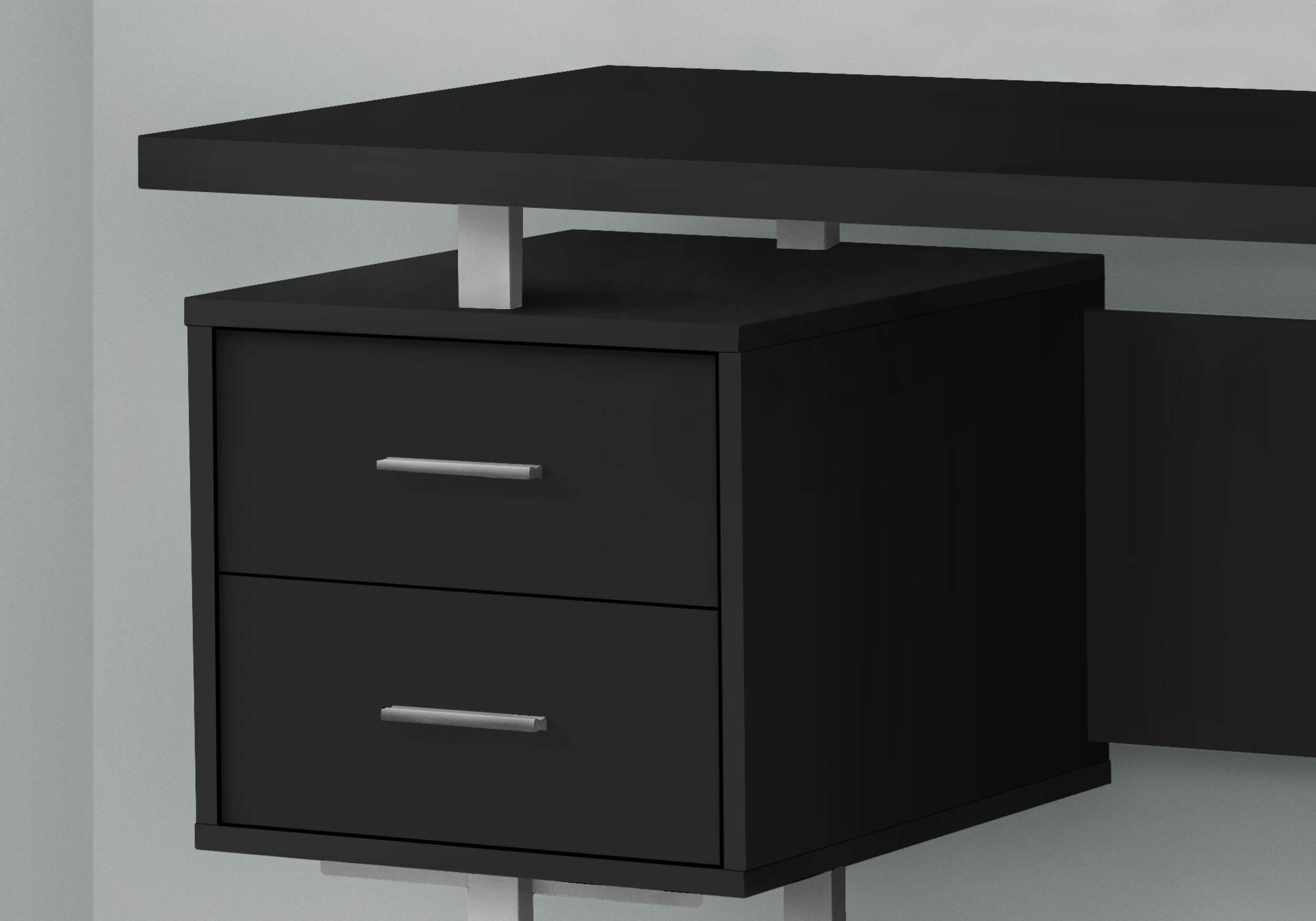 Vous aurez l'impression d'être votre propre patron dans votre bureau à domicile en vous asseyant pour travailler sur ce bureau de taille moyenne doté de 3 tiroirs de rangement. Épais plateau flottant offrant une surface généreuse pour un ordinateur portable et du matériel d'écriture et vous permettant également d'utiliser le dessus des tiroirs en guise de surface supplémentaire. 2 petits tiroirs et un grand tiroir muni d'une barre pour les dossiers suspendus vous offrant de la place pour les articles que vous ne voulez pas garder sur le bureau. Pour plus de polyvalence, les tiroirs sont réversibles et peuvent être installés d'un côté ou de l'autre, selon vos préférences. Bureau soutenu par des pieds en métal au fini noir adoptant une forme en U moderne et élégante.