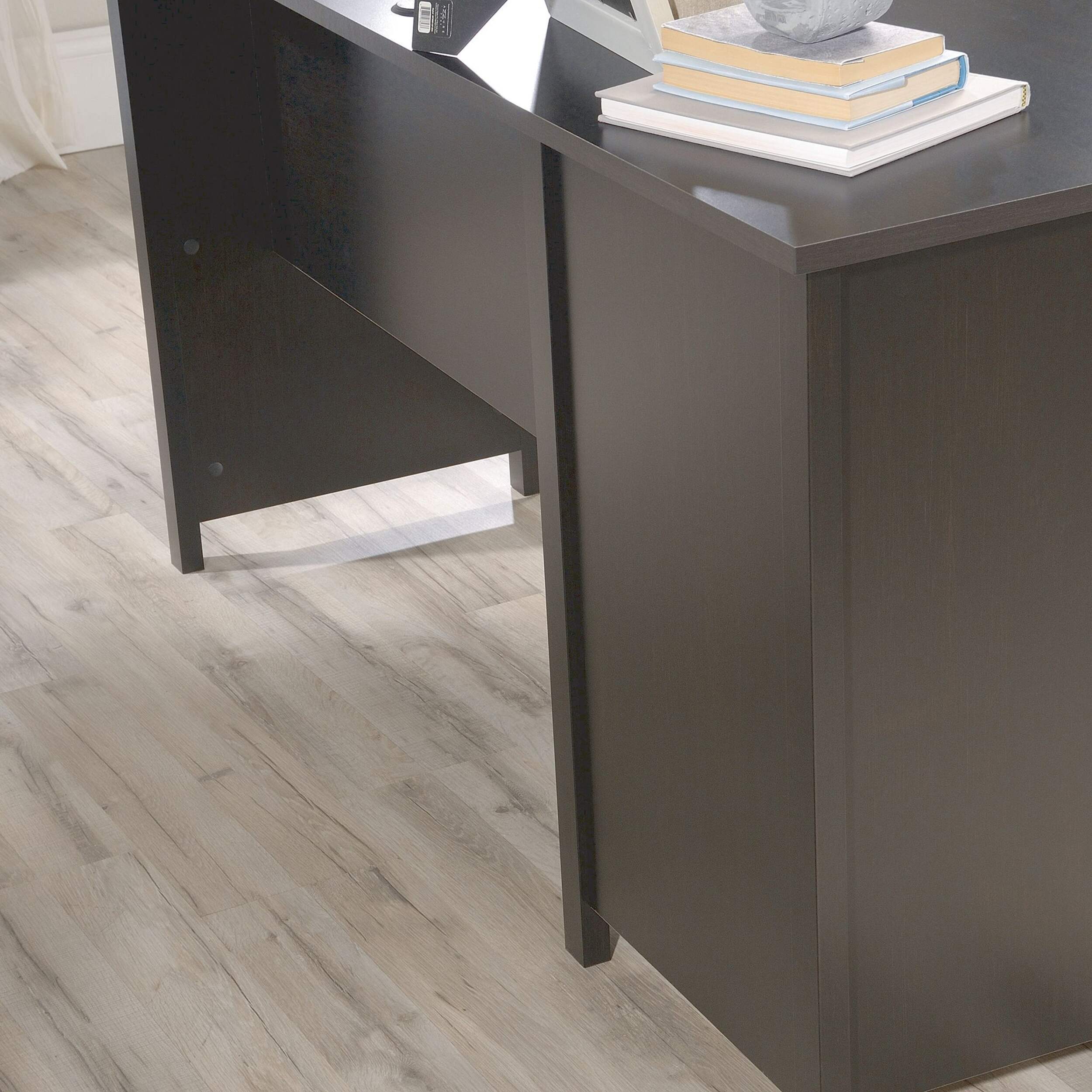 Un bureau à domicile sert à bien plus que simplement travailler à la maison : faire des listes d'épicerie, des projets artistiques et plus encore, à la maison. Faites tout cela et plus encore, avec le bureau en L élégant et fonctionnel de la collection County Line up MD /sup . La surface supérieure spacieuse peut accueillir un ordinateur, des dossiers et des photos de vos proches. Ce bureau à domicile a de la place pour tout! Bureau d'ordinateur en L doté d'un tiroir-classeur avec glissières pleine extension pour accueillir des dossiers suspendus de format lettre et garder tous vos documents organisés. Pour ranger vos stylos, votre agrafeuse et vos cartes de correspondance, ce bureau avec tiroir-classeur comprend un plus petit tiroir avec glissières en métal et butées de sécurité. Une tablette ouverte vous permet d'exposer des articles comme des livres, des articles de décoration ou d'autres objets. Ce petit bureau de travail est fini sur tous les côtés, ce qui lui donne une apparence soignée, peu importe la façon dont vous l'organisez à la maison. Un système de gestion des câbles avec deux oeillets sur le bureau vous permet de garder votre espace de travail dégagé de cordons. Enfin, un processus d'assemblage rapide et facile grâce au système de tiroir breveté à fente en T et aux moulures coulissantes brevetées vous permet d'assembler votre nouveau bureau en L en un clin d'oeil. Avec son fini Estate Black sup MD /sup , ce bureau à domicile en L ajoute la bonne quantité d'espace et du style à n'importe quel bureau à domicile.