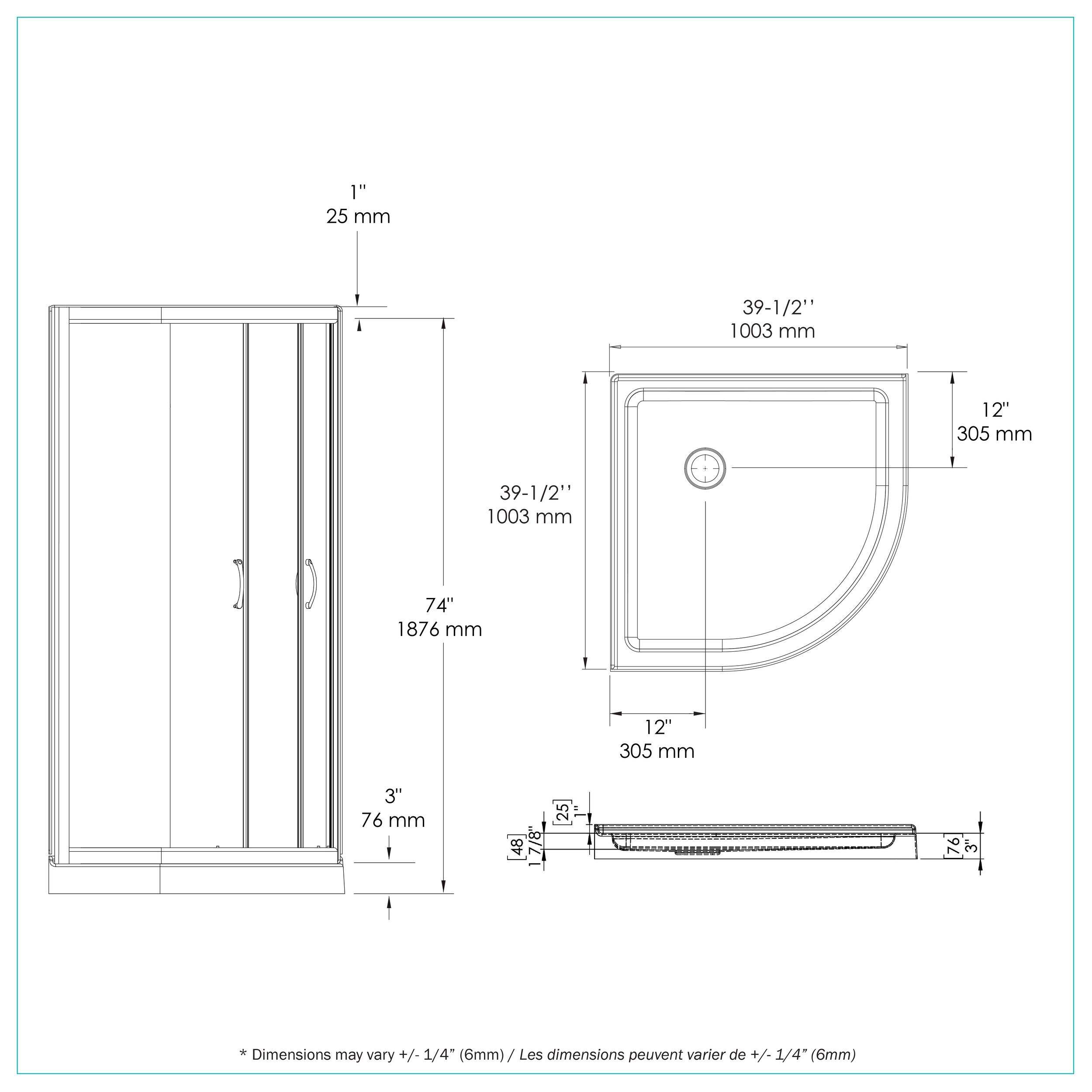 | Type de porte | Portes de douche pivotantes |