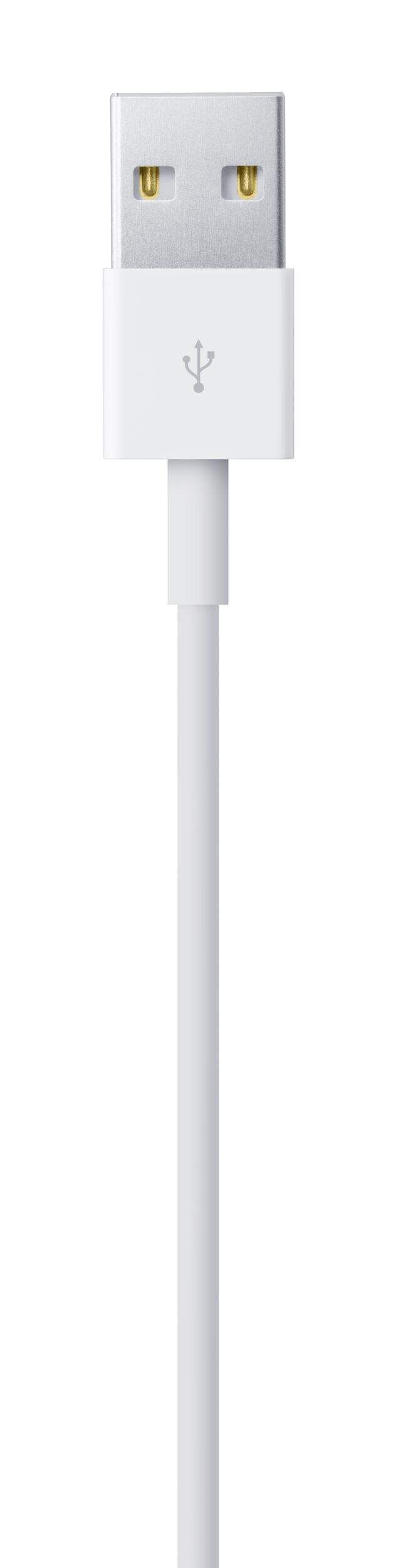 Câble USB 2.0 qui connecte votre iPhone, iPad ou iPod avec connecteur Lightning au port USB de votre ordinateur pour la synchronisation et le chargement ou à l'adaptateur d'alimentation USB d'Apple pour un chargement pratique à partir d'une prise murale