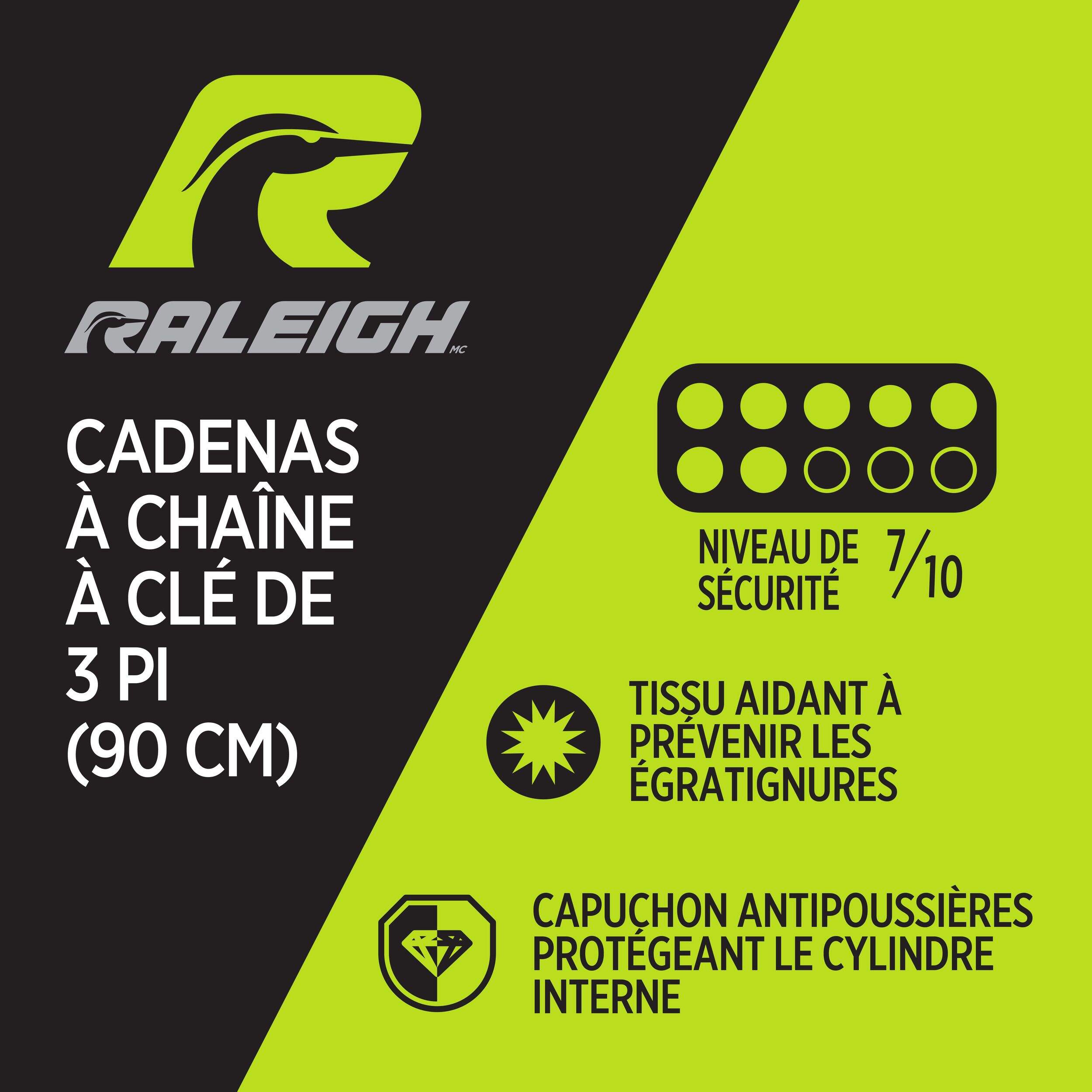 Le cadenas de vélo à chaîne Raleigh protège votre vélo contre le vol et d'autres dommages. Ce cadenas à clé qui est un excellent choix pour quiconque souhaite protéger son vélo, grâce à la chaîne recouverte de tissu qui l'aide à résister aux rayures et aux égratignures similaires. Ce cadenas de vélo également doté d'un capuchon antipoussière qui protège le cylindre contre les blocages, prolongeant ainsi sa durée utile.