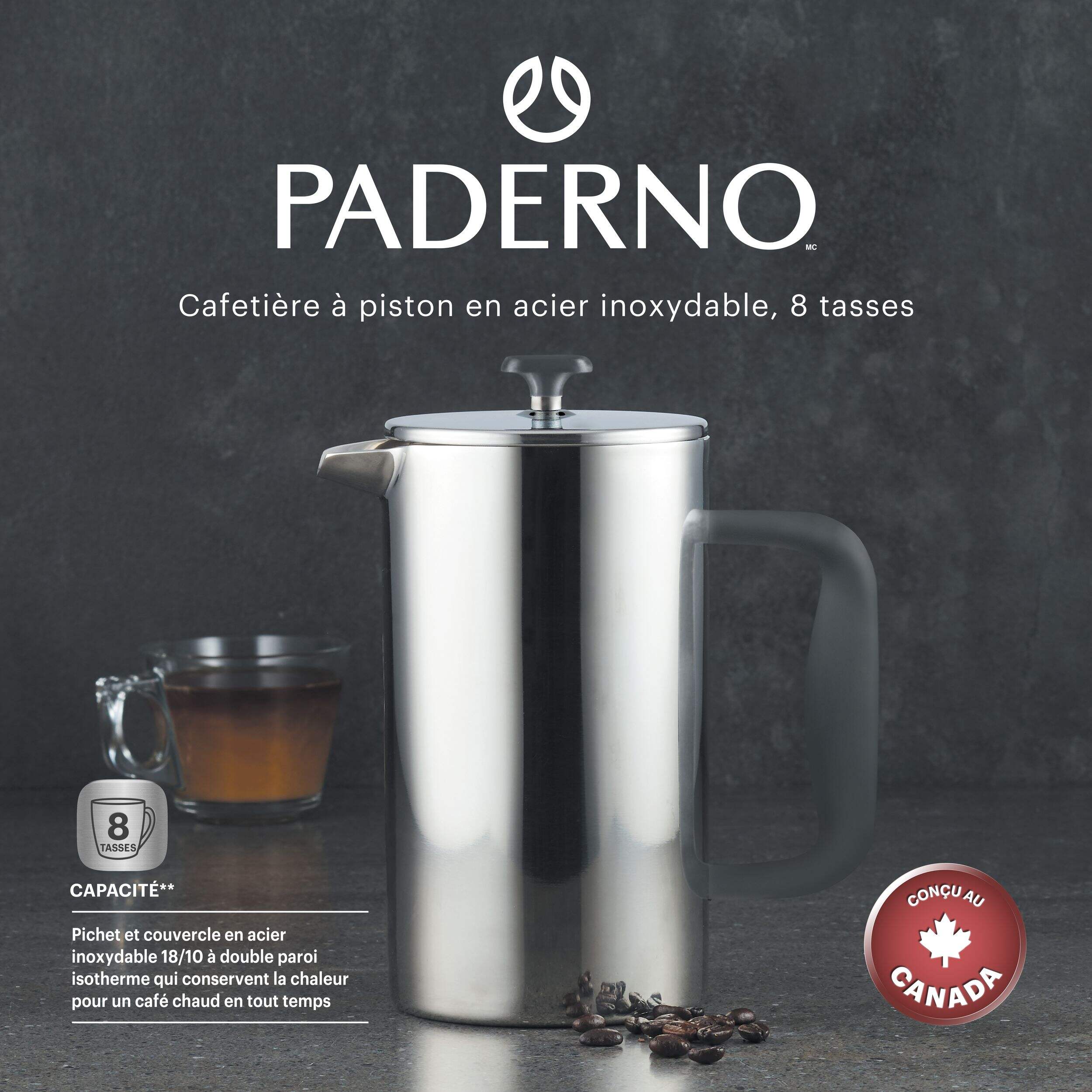 La cafetière à piston isolée en acier inoxydable PADERNO offre une expérience supérieure en matière d'infusion de café, avec la capacité d'infuser 8 tasses (125 mL chacune) d'un café riche et corsé. Faite en acier inoxydable de grande qualité, cette cafetière à piston garde votre café chaud et conserve sa saveur pendant longtemps. Le filtre intégré empêche le marc de finir dans votre tasse, donnant ainsi un café riche et savoureux à chaque tasse. Avec sa poignée permettant une prise confortable pour verser avec précision, cette cafetière à piston est parfaite pour votre routine matinale.