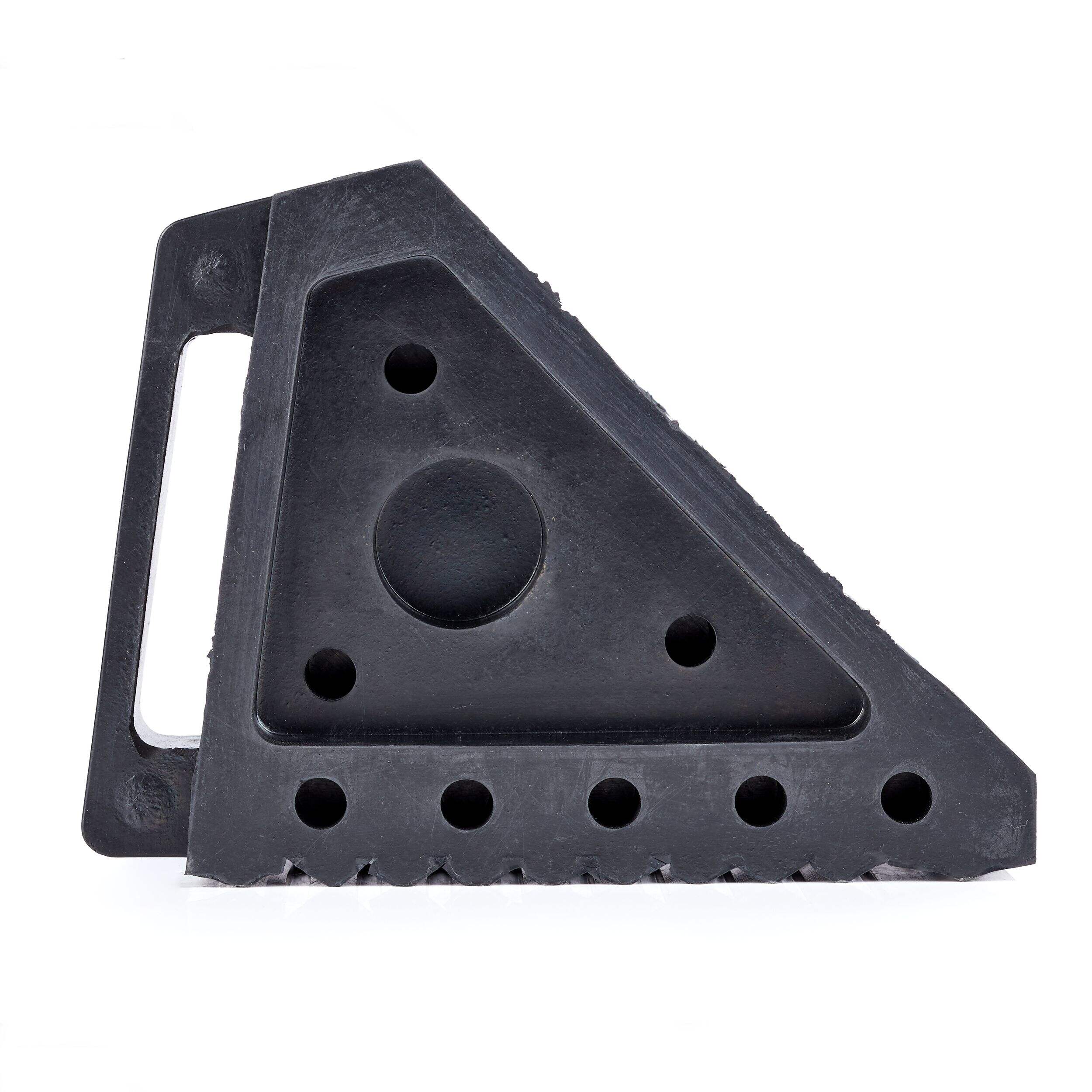 Cale de caoutchouc certifiée qui limite le mouvement des véhicules de plaisance et des remorques utilitaires de taille moyenne lorsqu’ils sont stationnés
