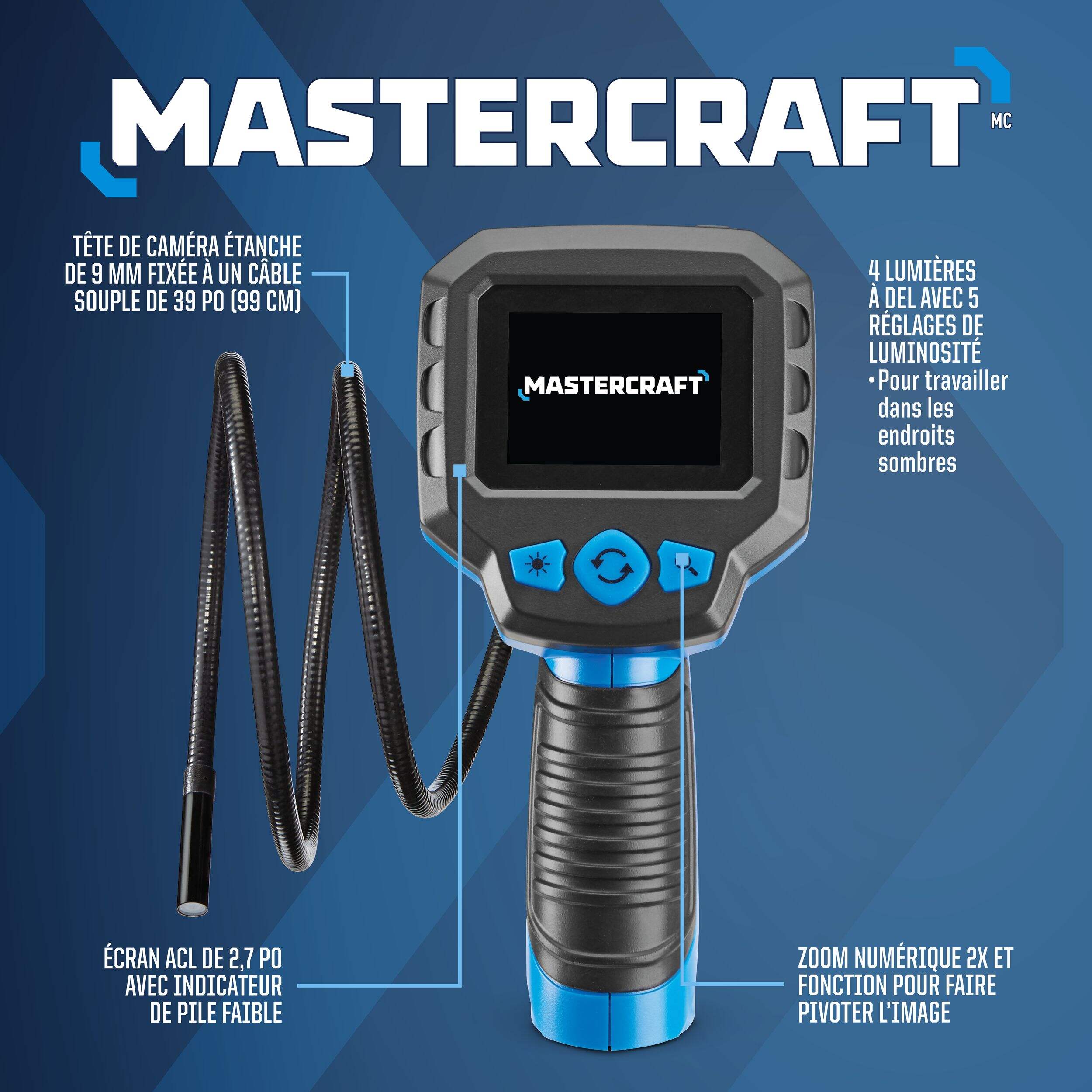 La caméra d'inspection numérique Mastercraft avec câble de 3,3 pi est l'outil idéal pour examiner les endroits difficiles d'accès pendant les réparations ou les inspections. Avec sa tête de caméra étanche et son câble flexible, elle navigue facilement dans les endroits humides sans dommage. Le zoom numérique 2X, les fonctions de basculement d'image et les voyants DEL réglables améliorent la visibilité. Idéale pour les travaux automobiles, de plomberie et de construction, cette caméra d'inspection offre une performance fiable dans les espaces restreints.
