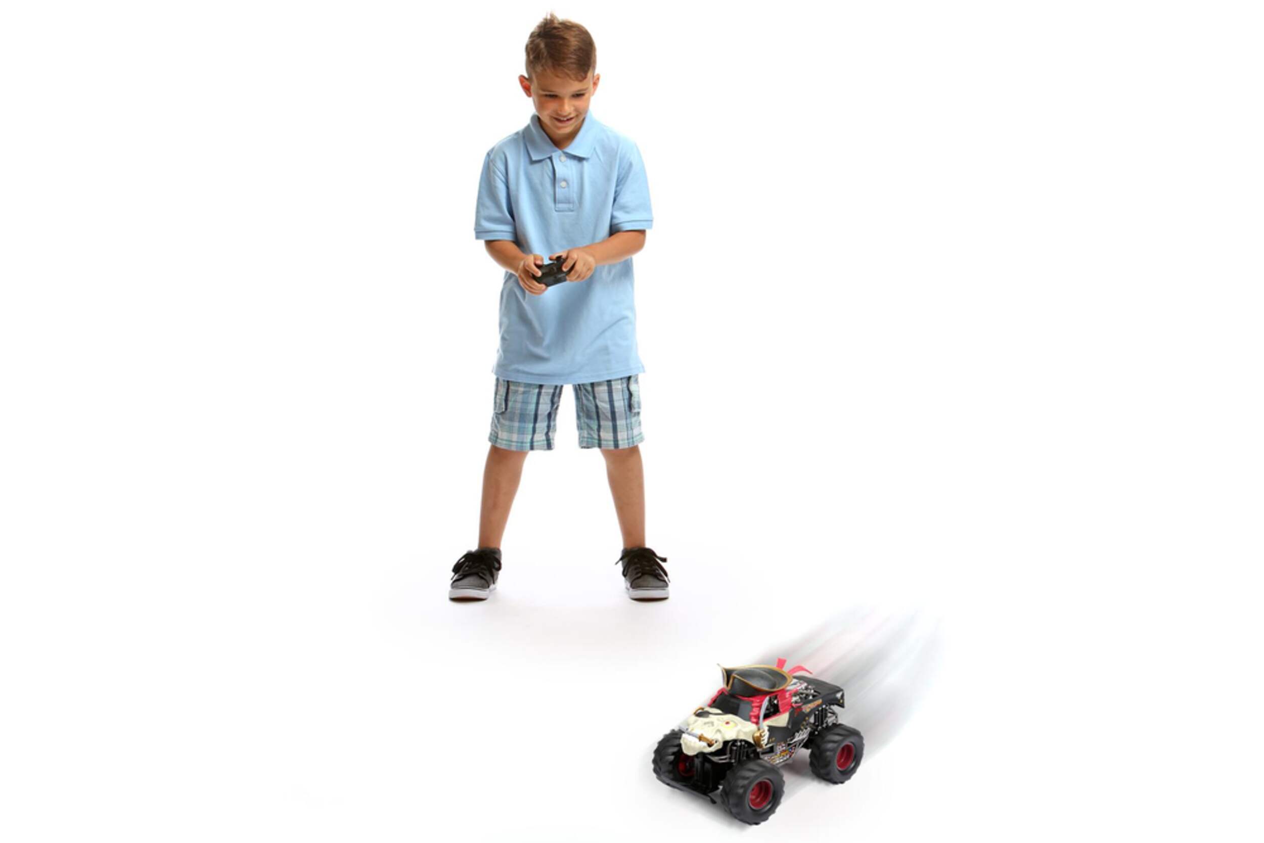 Le camion Monster Jam 1:15 est doté de pneus surdimensionnés et d'éléments visuels aux couleurs vives