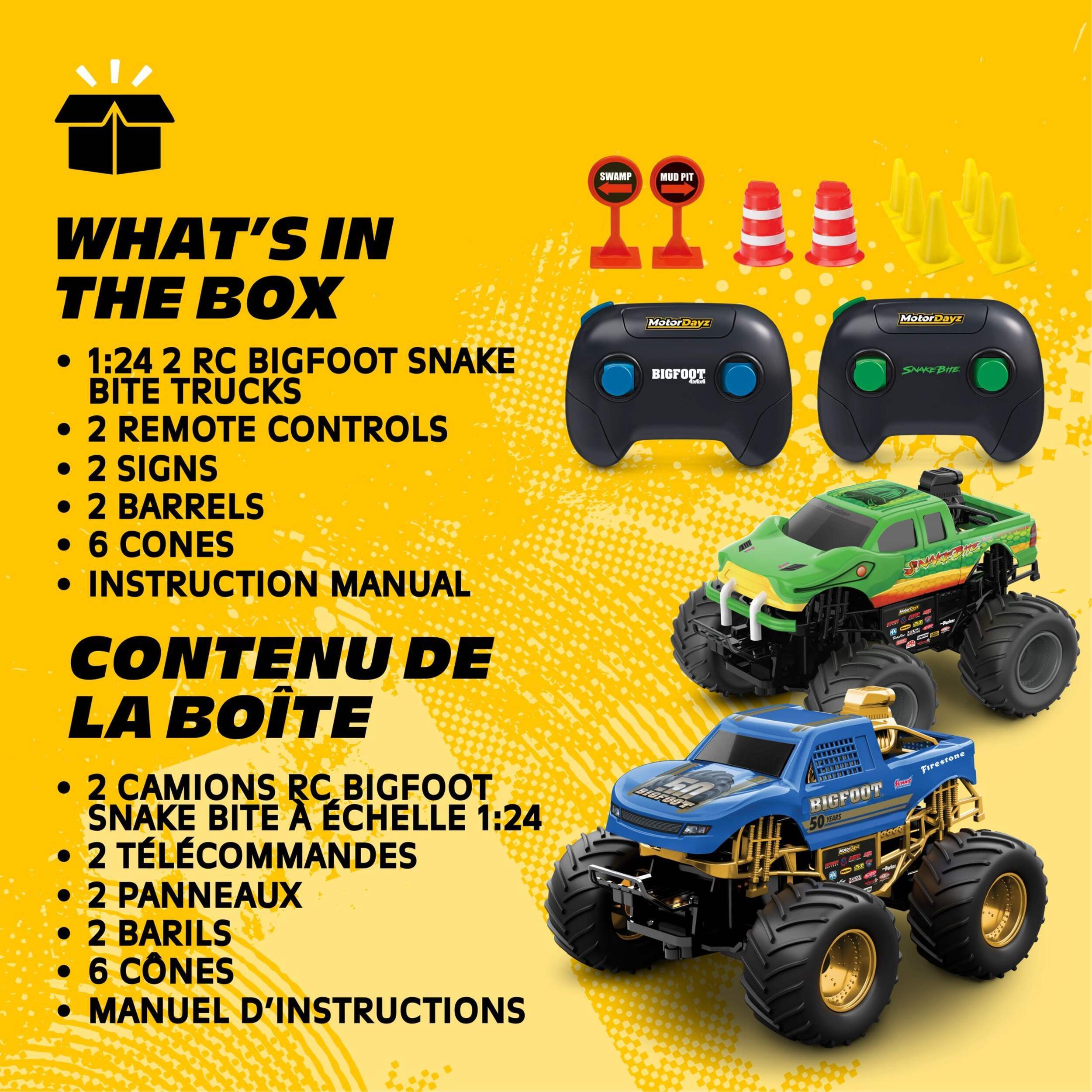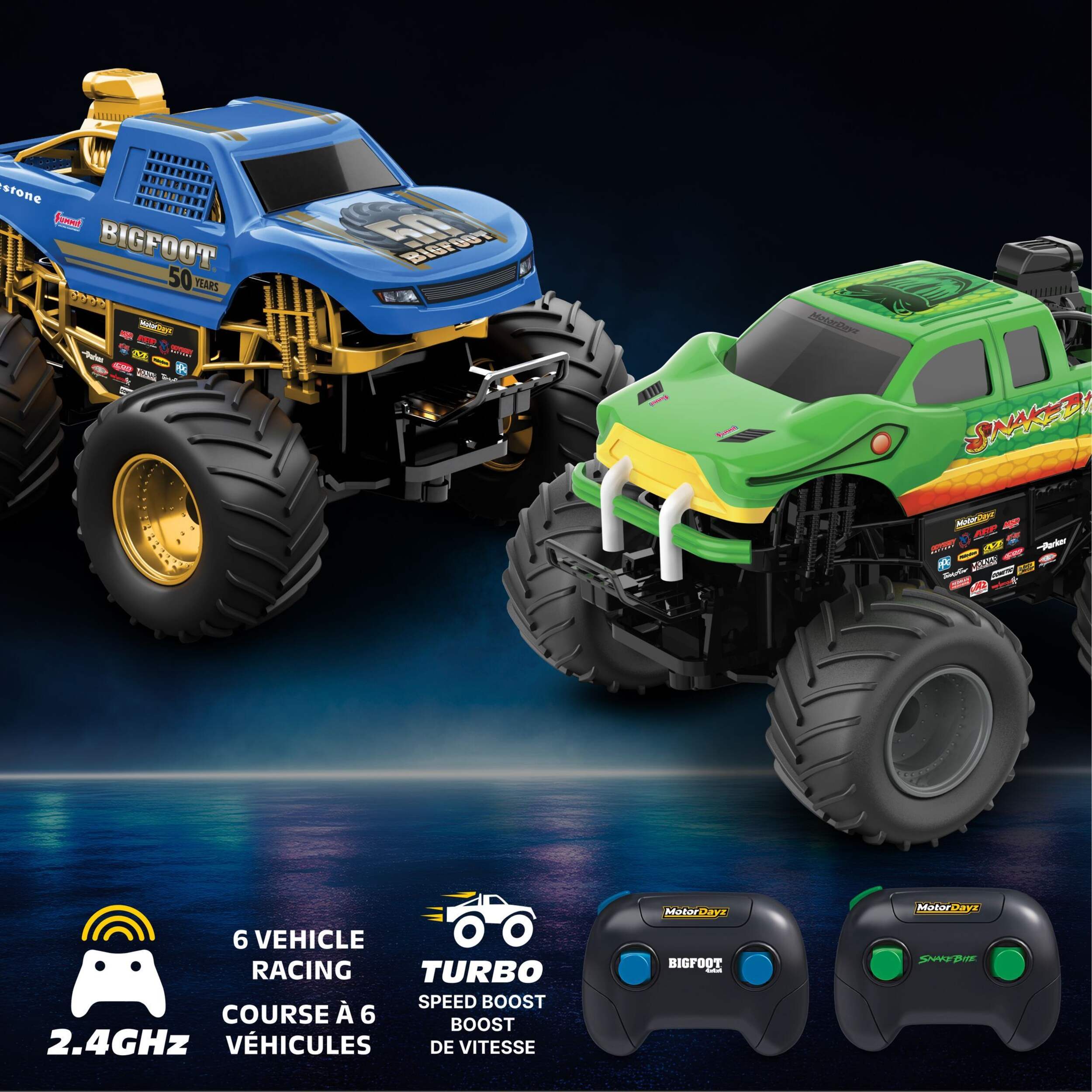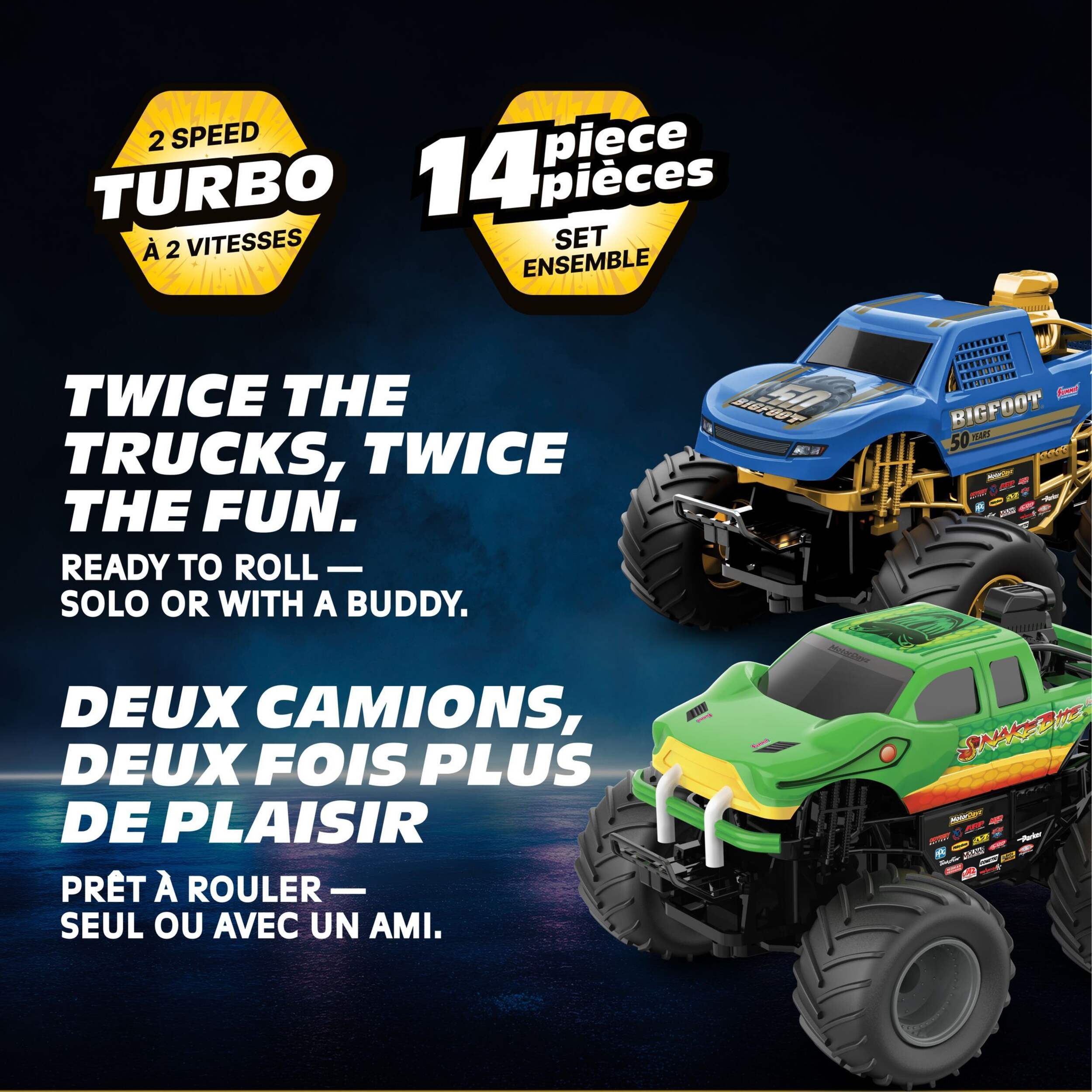 Les camions téléguidés New Bright Monster Truck, échelle 1:24 sont parfaits pour les enfants de 4 ans et plus. Ensemble excitant comprenant deux camions monstres et des rampes pour encore plus de plaisir. Ces camions peuvent se déplacer en avant et en arrière, à gauche et à droite, ce qui renforce le réalisme du jeu. Ils sont également dotés de 4 roulettes motrices et de roues très larges pour affronter les terrains difficiles et les aventures hors route.