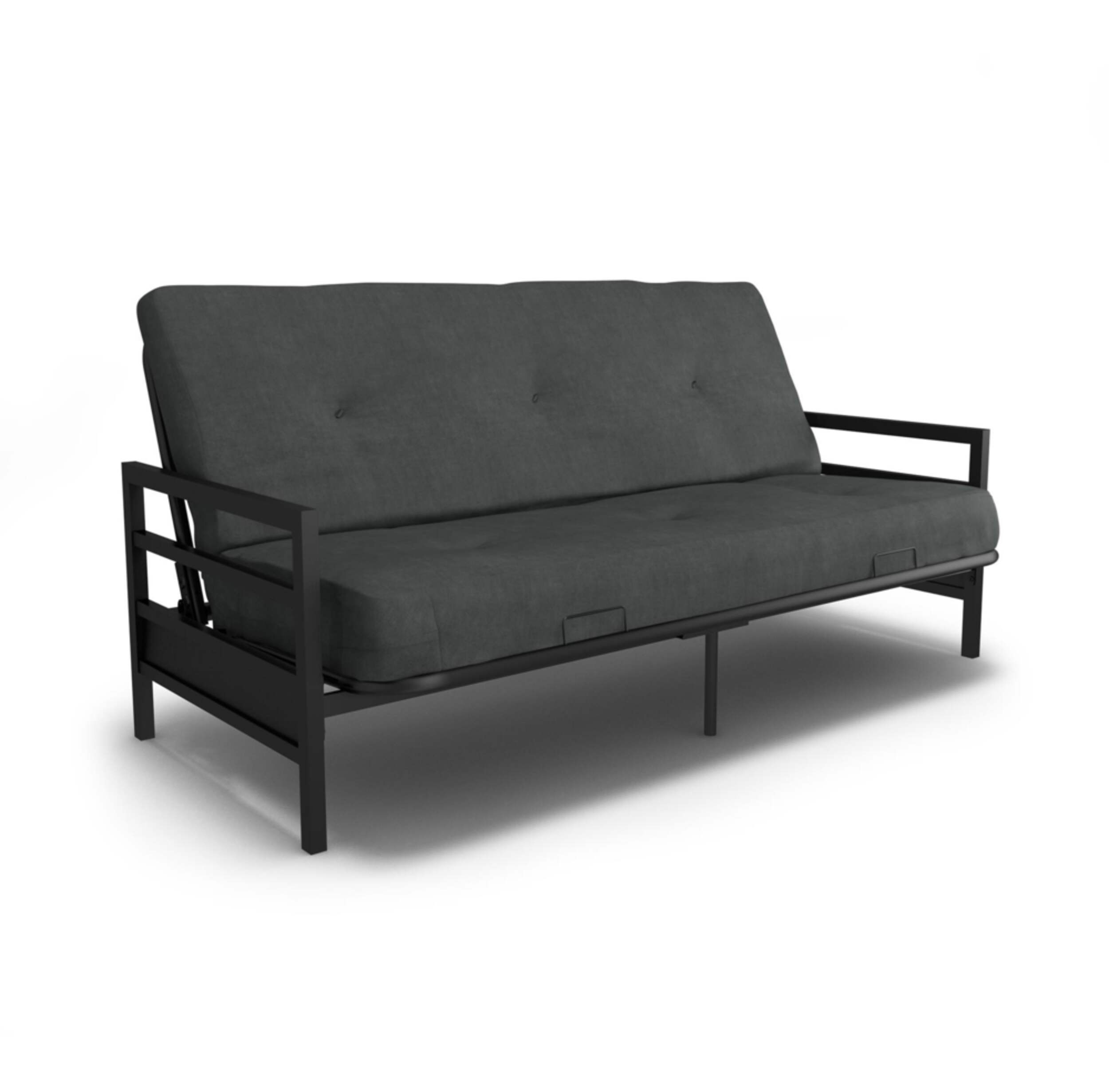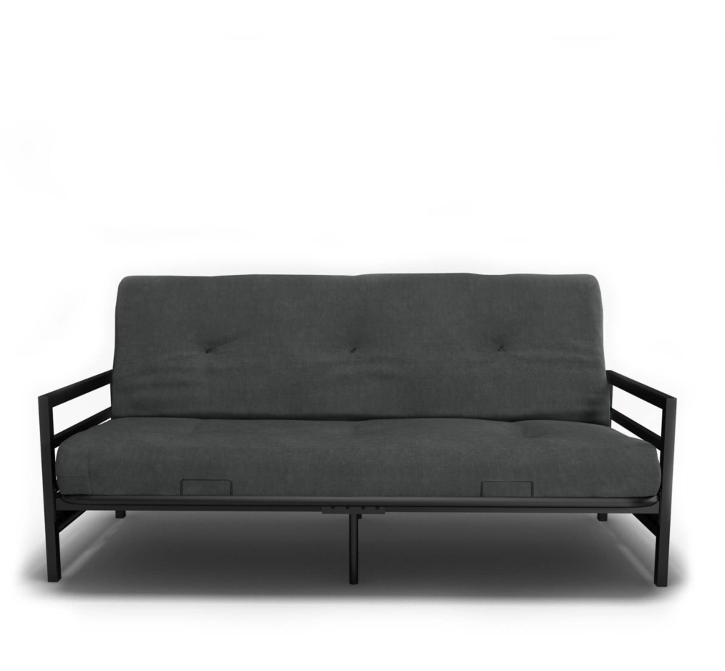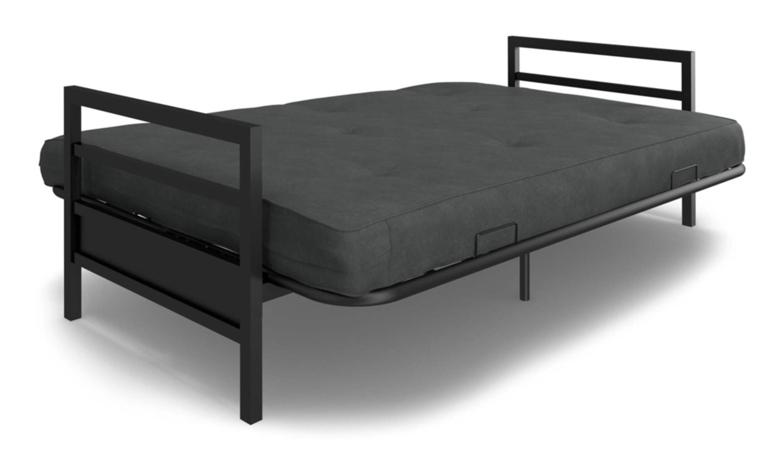 Futon avec accoudoirs en métal et matelas en mousse Dorel Comfort offrant un endroit élégant où s’asseoir et dormir