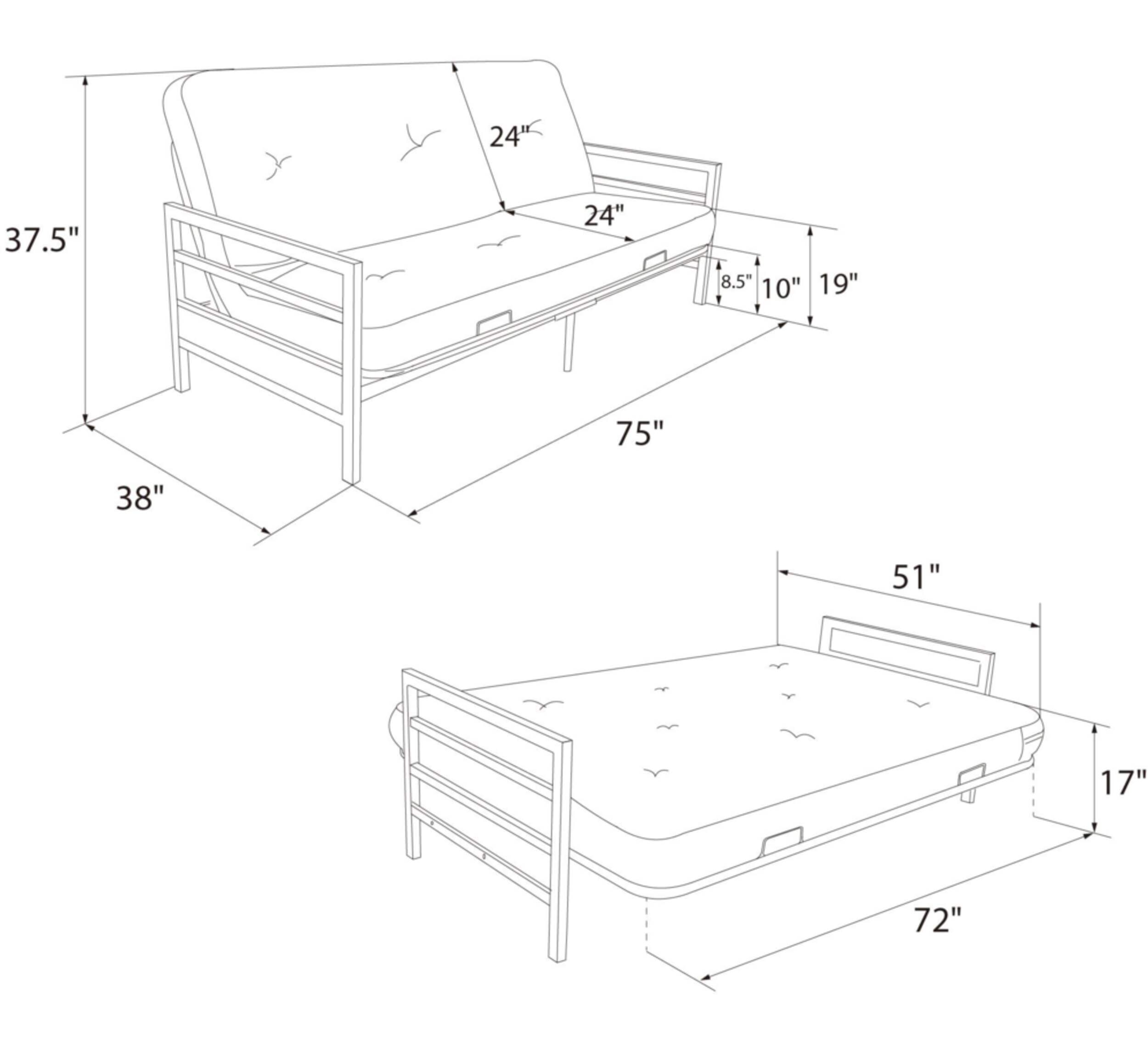 Dimensions (futon) : 190,5 L x 95,3 la x 96,5 cm H (75 x 37,5 x 38 po)