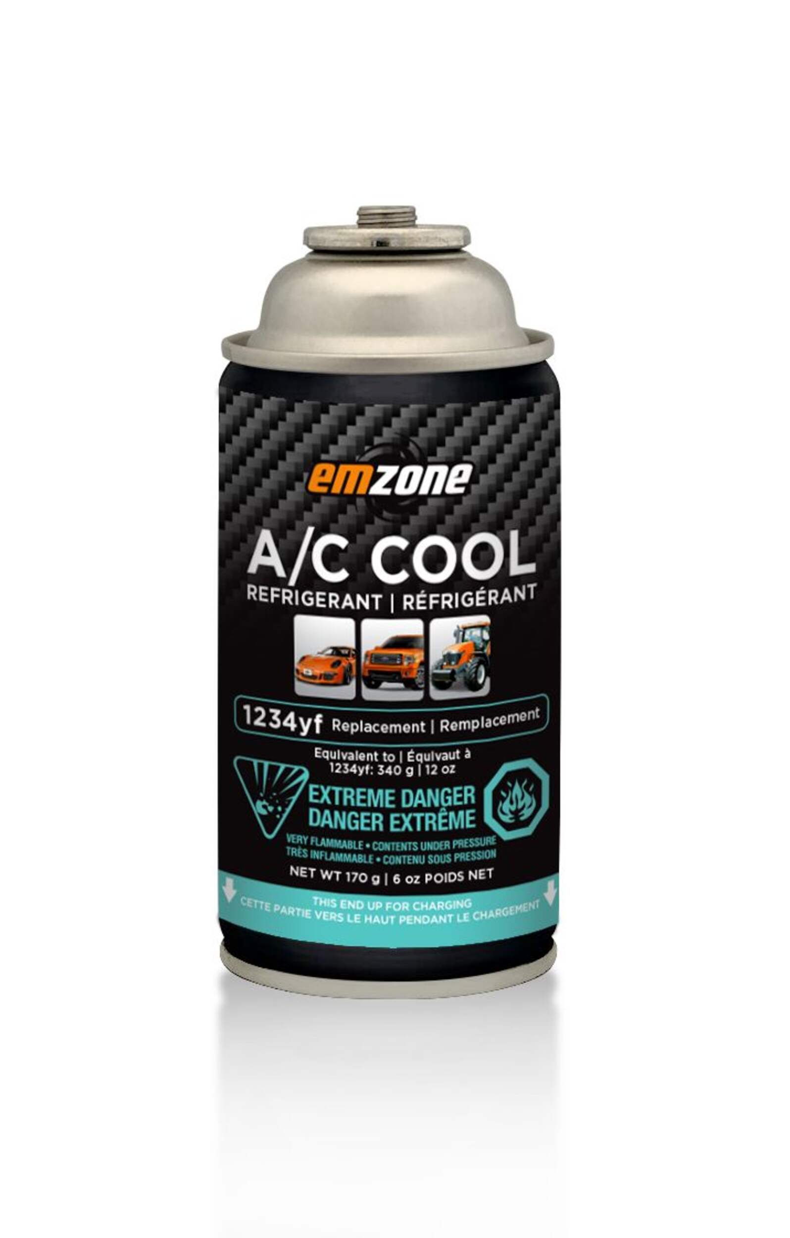 Le fluide frigorigène de rechange 1234YF d'Emzone est une pièce de rechange écologique pour les nouveaux systèmes 1234YF. Haute performance. Non toxique, sans danger pour le système et la couche d'ozone.