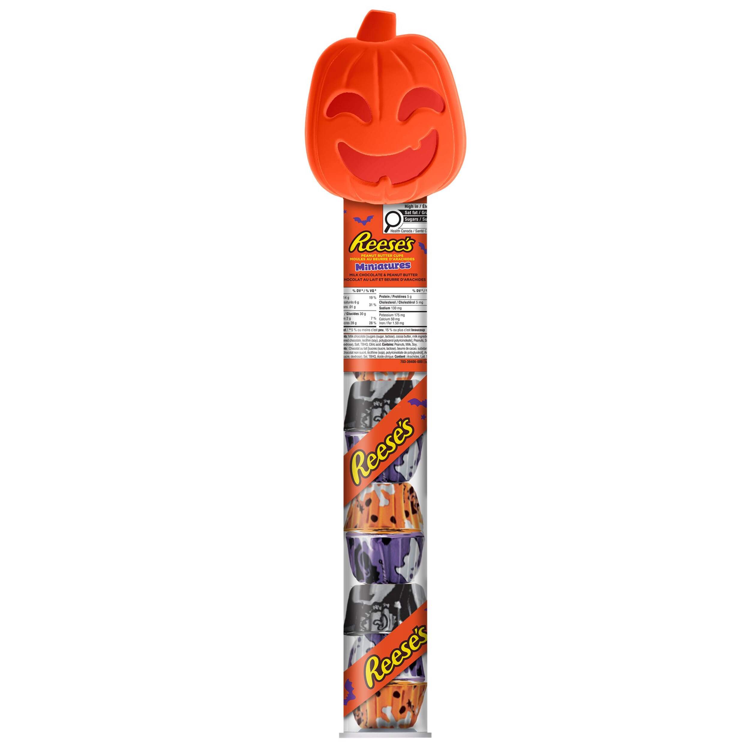 Canne de bonbons miniatures au chocolat au lait et au beurre d'arachide en forme de citrouille Reese's est une excellente gâterie à déguster seul ou avec d'autres personnes