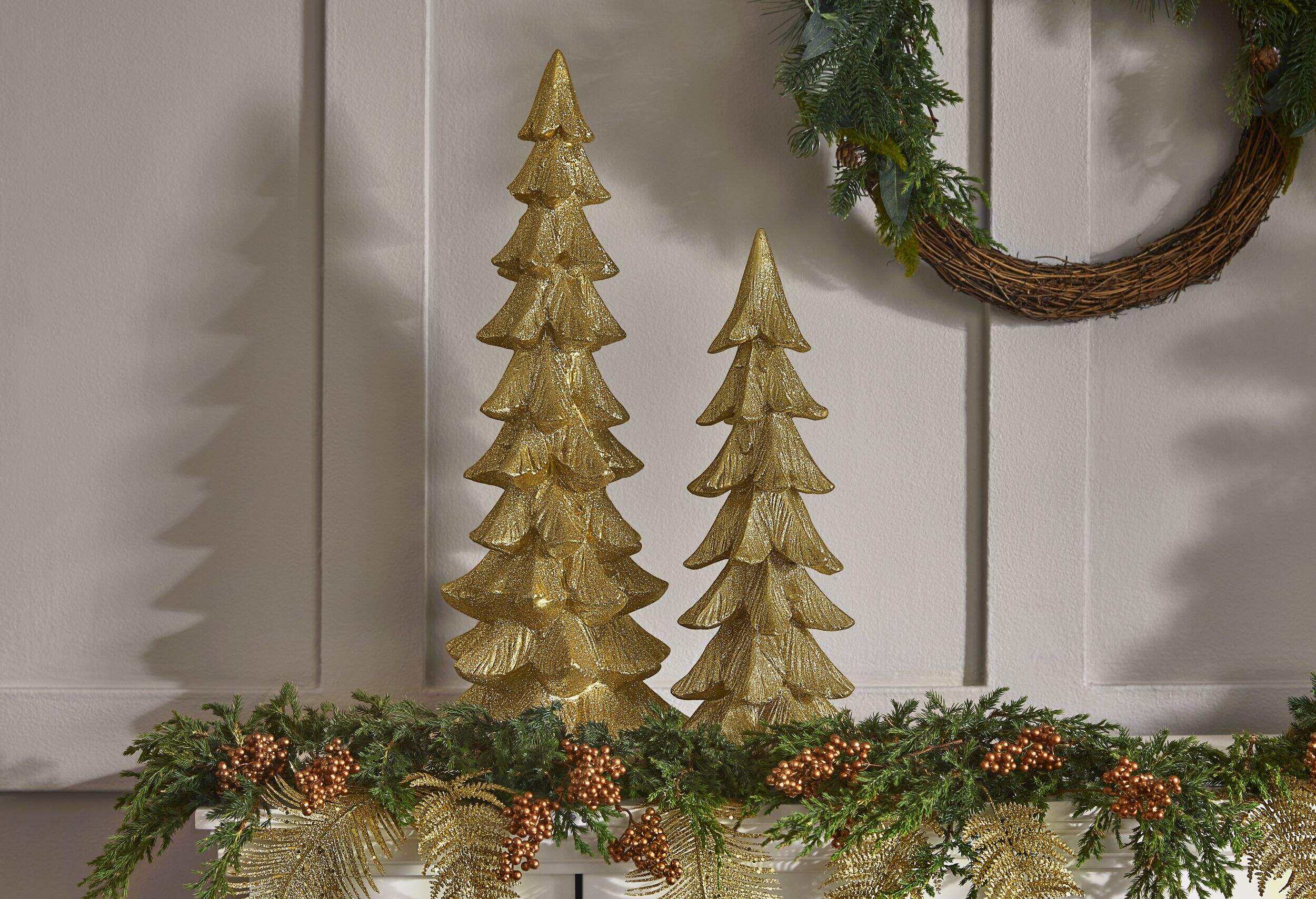Fabriqué en résine durable avec une couche éblouissante de couleur or richement texturée, l'arbre scintillant en résine or CANVAS est un ajout essentiel à votre décor de Noël et à vos décorations d'hiver. Jolies notes de fini doré scintillant qui font de cet arbre un ajout remarquable et sophistiqué au reste de votre décor des Fêtes. Mesurant 23 po de hauteur, cette décoration de table de Noël aide à créer un point focal festif pour votre manteau de cheminée, votre foyer ou vos décorations de table.