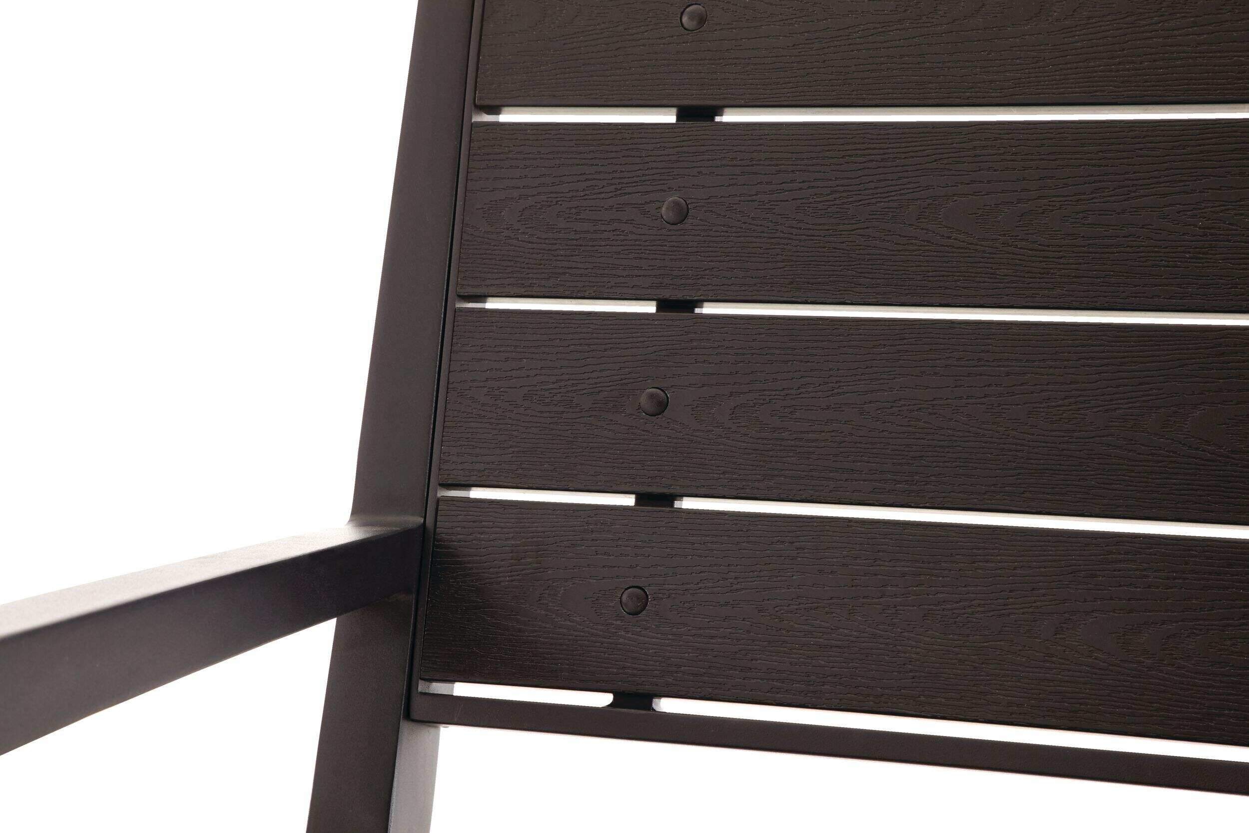Cadre en acier noir satiné à revêtement électrolytique et lattes en contreplaqué résistantes aux conditions extérieures