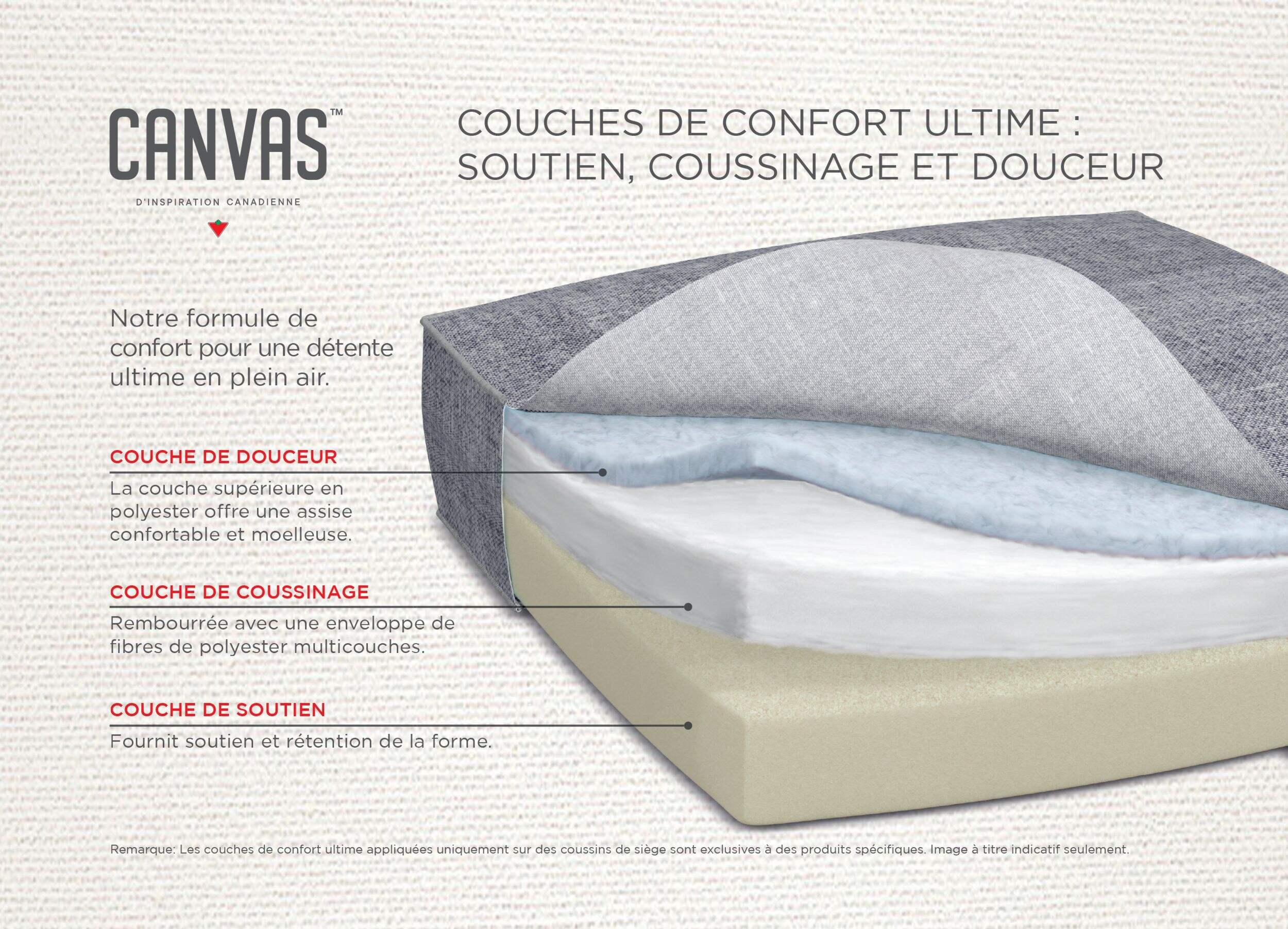Créez un lieu de rassemblement extérieur instantané pour vos amis et votre famille avec cet ensemble de conversation CANVAS Junction. Modèle moderne et polyvalent de cet ensemble de conversation de 4 pièces qui s'harmonise aisément à une grande variété de décors et de goûts avec ses couleurs neutres et ses accents chics. Ensemble de détente d'extérieur à la mode et fonctionnel doté d'un cadre durable résistant à la rouille peint par électrodéposition pour des années de plaisir, ainsi que d'un élégant fini d'aspect bois et d'une élégante surface en faux béton. Ensemble comprenant des coussins surdimensionnés confortables en tissu durable d'oléfine gris traité au TRIPEL qui résiste aux rayons UV et qui est conçu pour repousser l'eau et les taches. Fauteuils à ressort offrant un confort durable lorsque vous êtes assis et pouvant facilement supporter jusqu'à 250 lb. En exclusivité chez Canadian Tire, cet ensemble de détente résistant aux intempéries comprend quatre pièces pratiques : deux chaises, chacune mesurant 30-1/4 la x 31-3/4 P x 28-7/8 po H, une causeuse mesurant 52-3/4 la x 31-3/4 P x 28-7/8 po H) et une table : 40 la x 20 P x 18-1/2 po H. Coussins surdimensionnés pour fauteuil et causeuse également inclus. Léger assemblage requis.