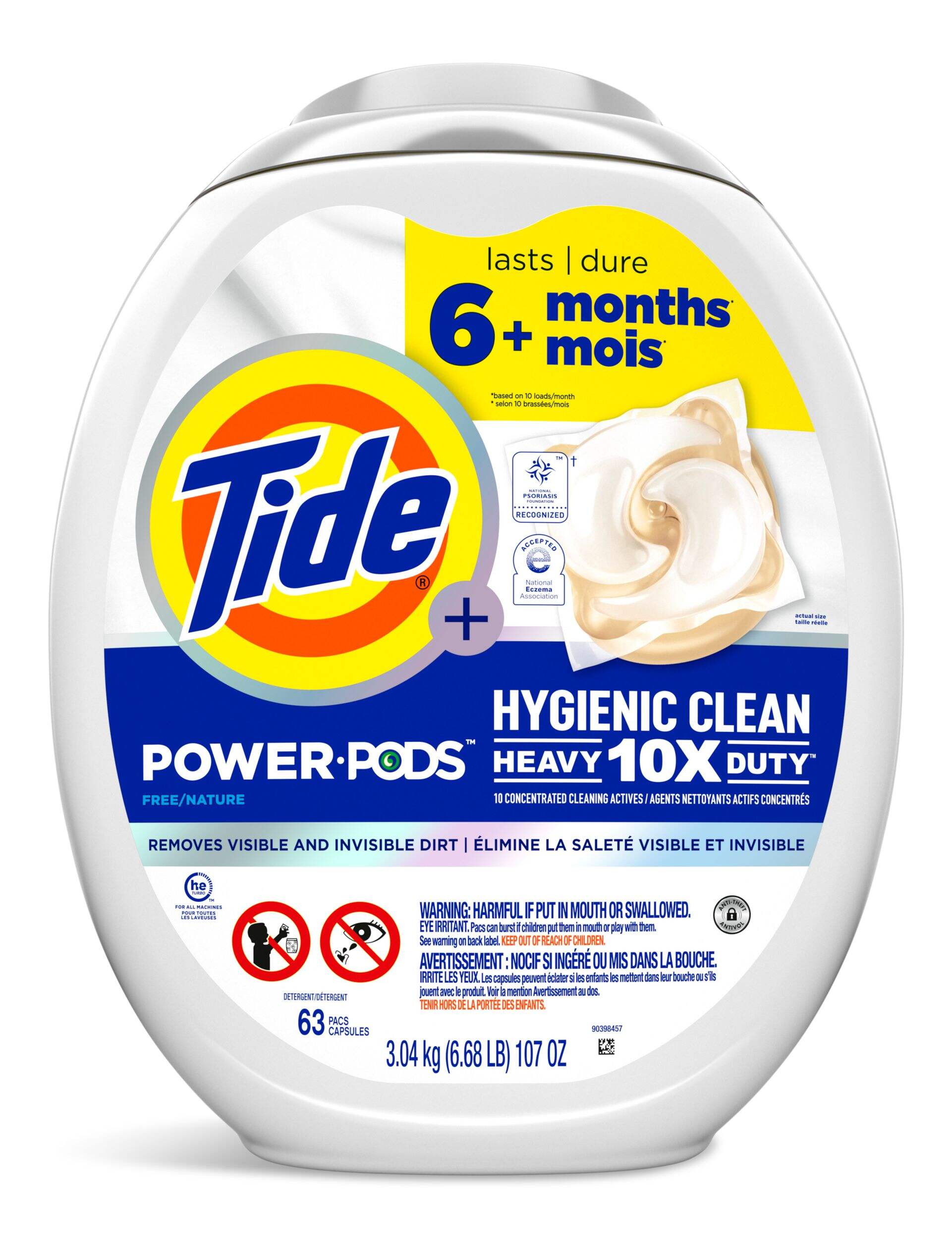 Capsules de détergent à lessive liquide Tide POWER PODS Hygienic Clean Heavy Duty 10X conçues avec 10 nettoyants actifs concentrés pour éliminer la saleté visible et invisible, sans prétraitement