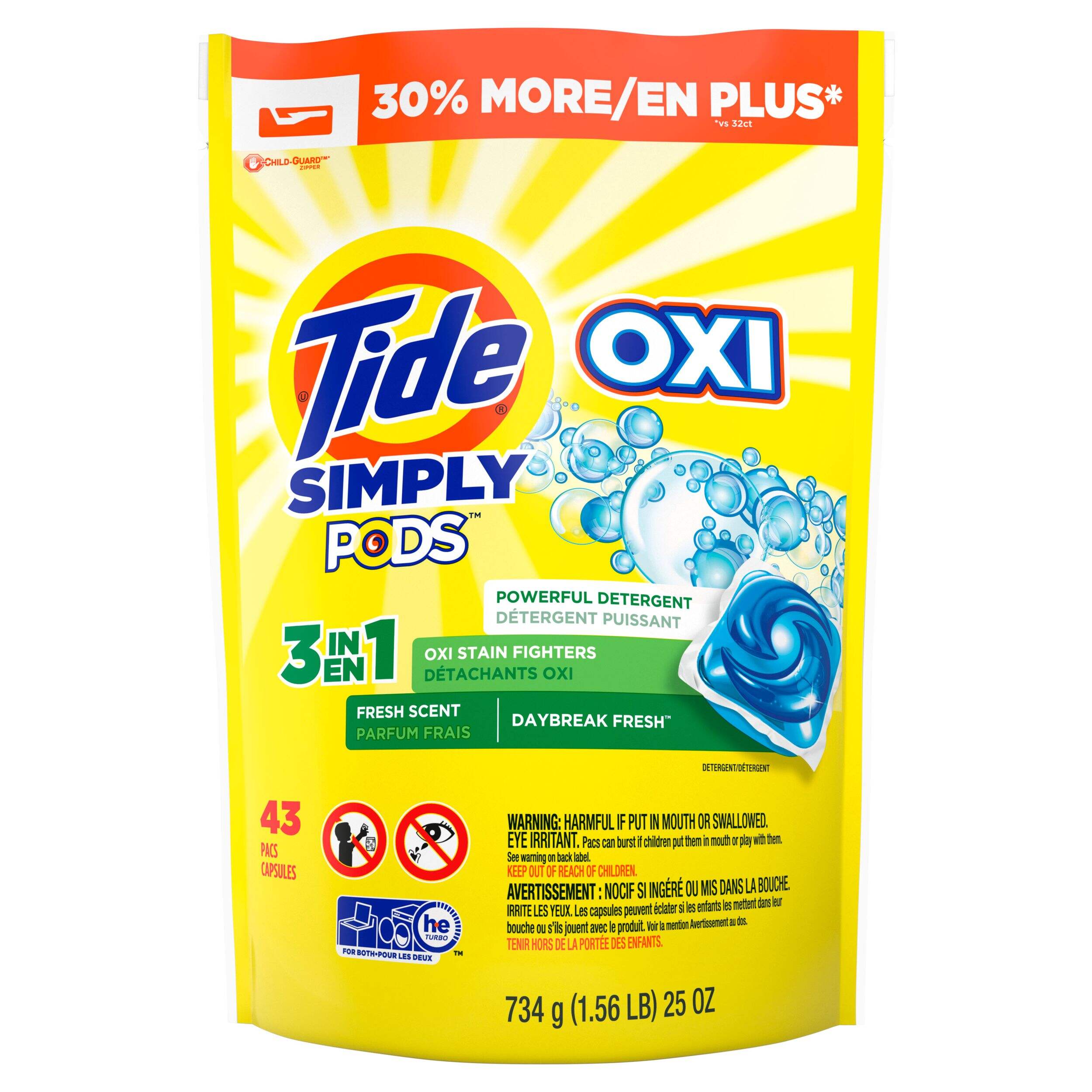 Capsules de détergent à lessive Tide Simply avec Oxi action, parfum Daybreak Fresh, paq. 43