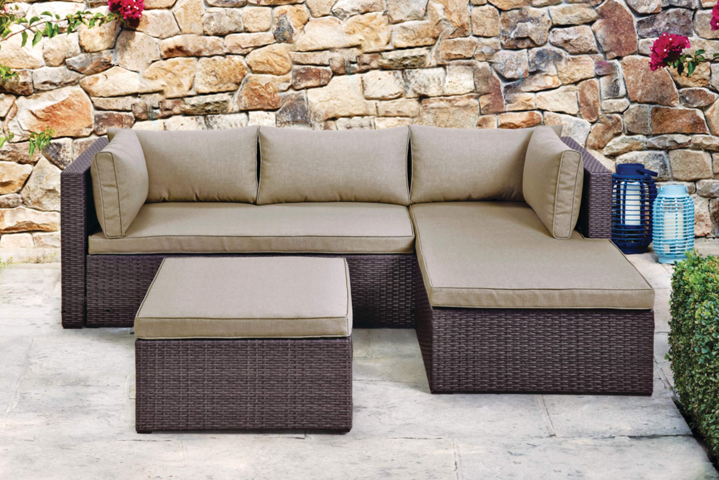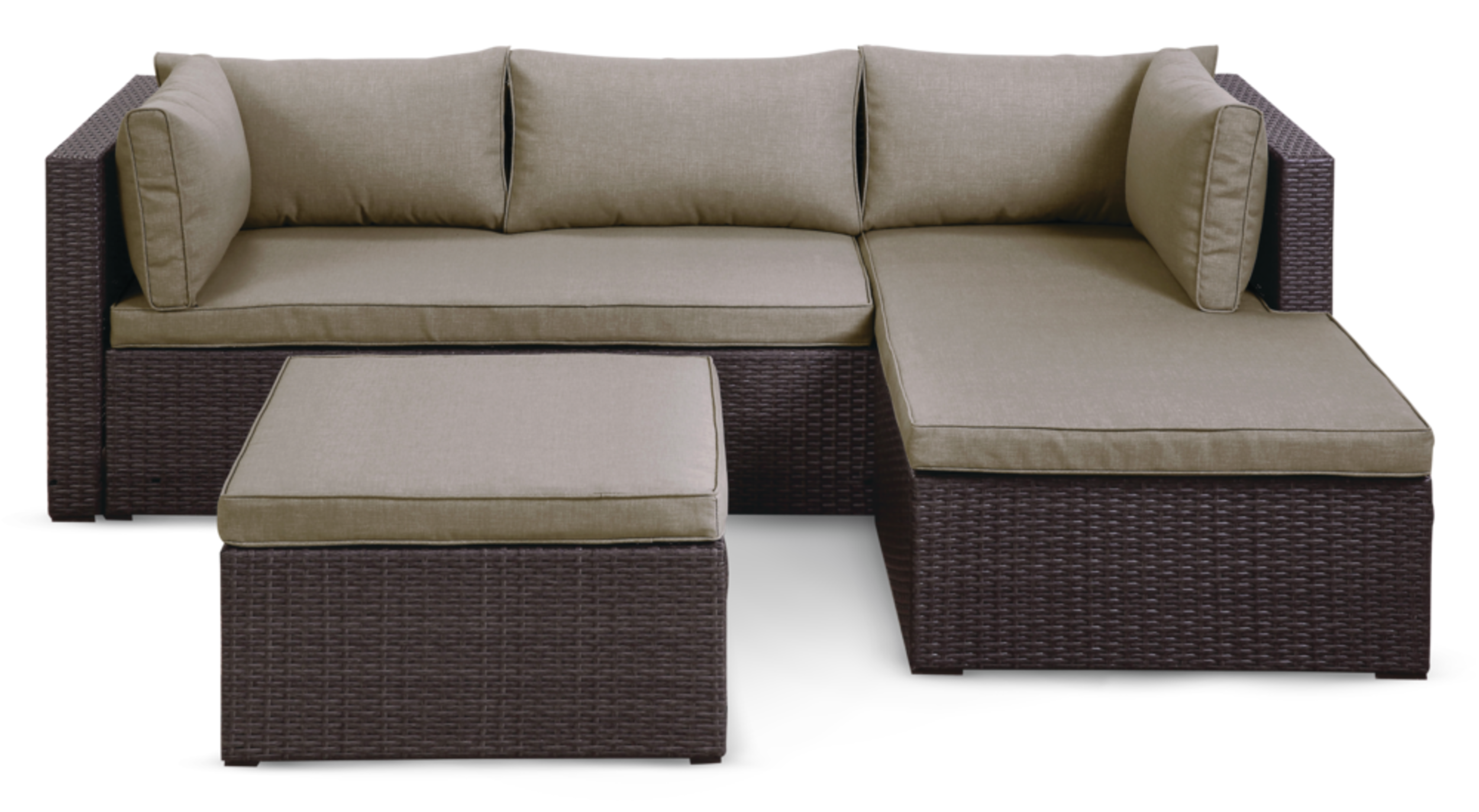 Ensemble composable modulaire de jardin Carling doté d'un cadre en acier robuste et d'un osier en rotin synthétique