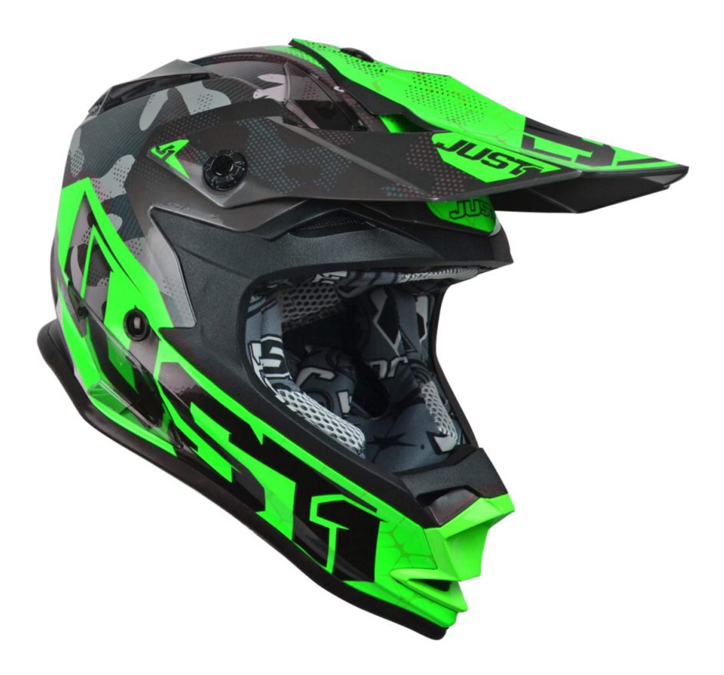 Le casque de motocross Just1 J32Y à anneau en D pour enfants, doublure amovible, vert camouflage lustré, choix de tailles, offre sécurité et confort aux jeunes pilotes grâce à son ajustement adaptatif et à sa doublure amovible lavable. Conçu pour les enfants en pleine croissance, chaque casque comprend deux tailles de coussinets pour s'ajuster de petit à moyen et de grand à très grand. Conçu pour offrir une protection maximale pendant les aventures tout-terrain, le J32Y est doté d'un système de retrait d'urgence des coussinets de joue J.1.E.R., d'un système de rétention double D et d'une visière réglable sans outil. Avec sa doublure en microfibre résistante aux odeurs et son choix de tailles, ce casque vert camouflage lustré assure un ajustement sûr et confortable qui suivra les progrès de votre enfant dans le sport.