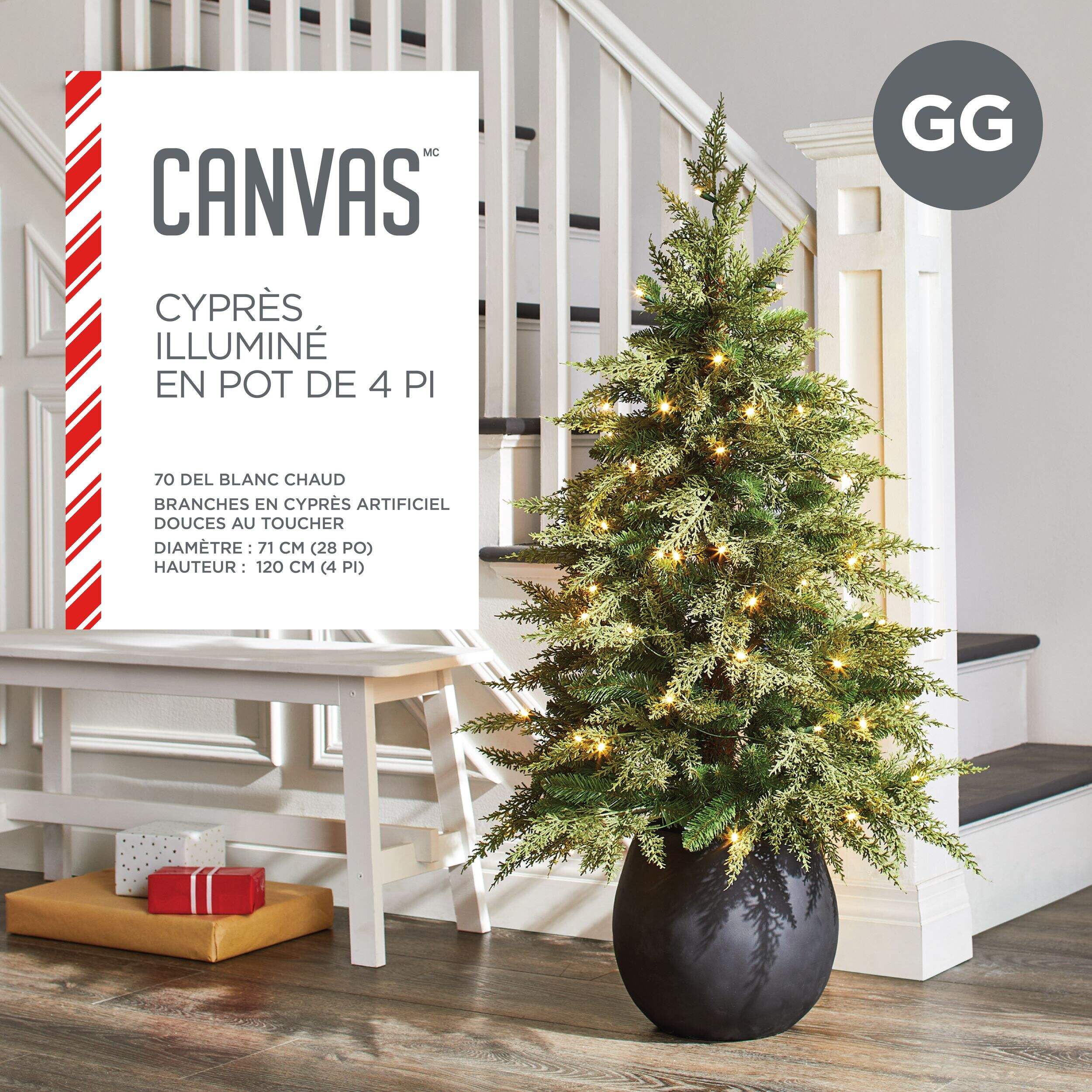 Cèdre illuminé dans un pot rond noir CANVAS qui est un arbre illuminé dans un pot