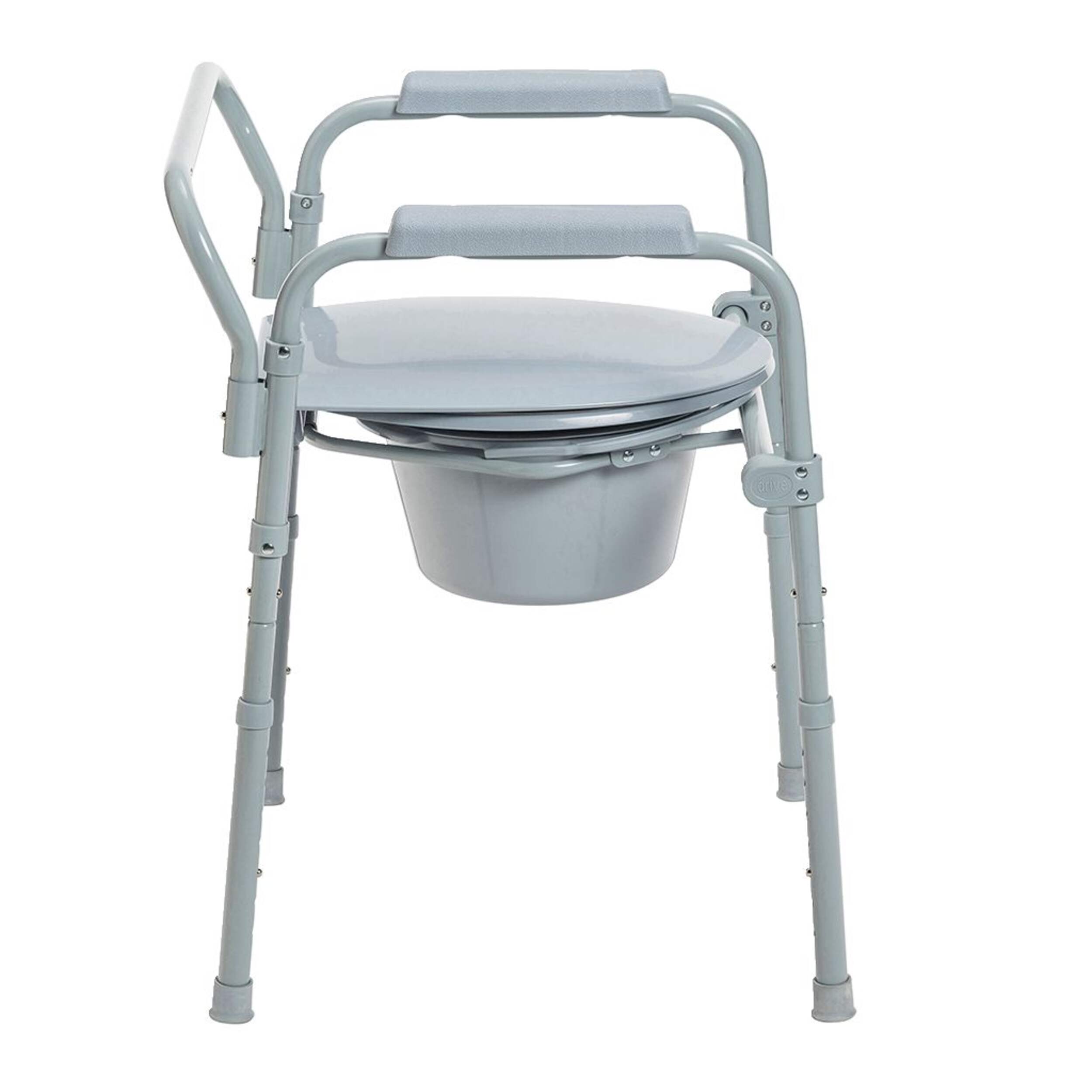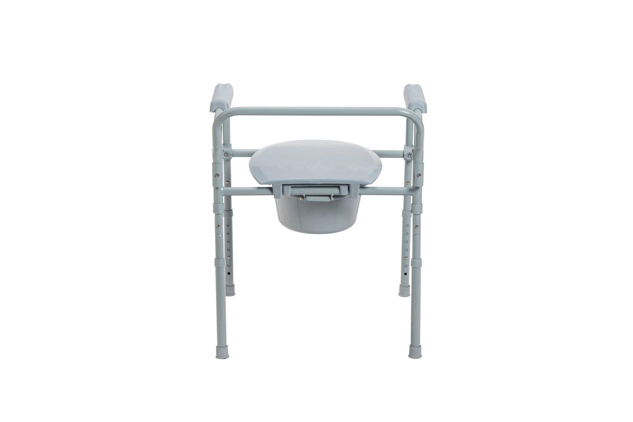 La chaise d'aisance à cadre pliant Drive offre un assemblage sans outil pour que vous puissiez l'ouvrir, la plier et la ranger facilement. Le siège et le couvercle encliquetables en plastique durable, ainsi que la construction soudée en acier thermolaqué, assurent solidité et longévité. Les bras en plastique ajoutent du confort tandis que le seau d'aisance avec poignée et pare-éclaboussures contient les dégâts. Faite de matériaux recyclés, cette chaise d'aisance se replie pour faciliter le rangement et le transport.