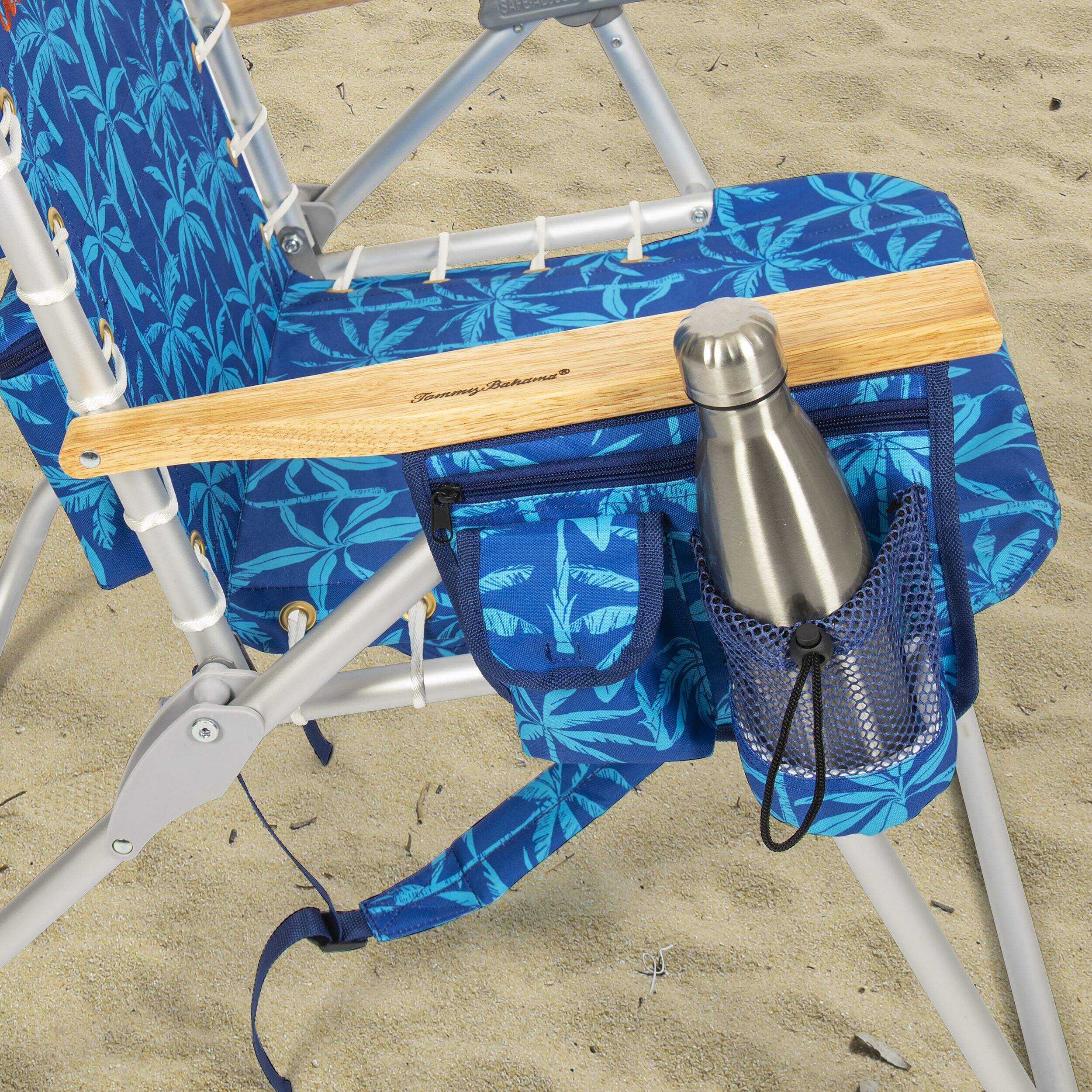 La chaise de camping/plage sac à dos à dossier haut avec lacets 4 positions de Tommy Bahama offerte en bleu apporte un confort et une commodité réglables. L'appuie-tête est ajustable pour un meilleur confort et les supports d'inclinaison spécialement conçus vous permettent d'ajuster la chaise selon 4 positions différentes sans vous pincer les doigts. Dotée d'une sangle de transport rembourrée qui facilite le transport et le rangement, cette chaise comprend aussi une pochette de rangement à fermeture à glissière et un endroit où ranger un téléphone cellulaire et un gobelet. Son modèle multicolore en fait un choix élégant pour le camping ou les journées à la plage.