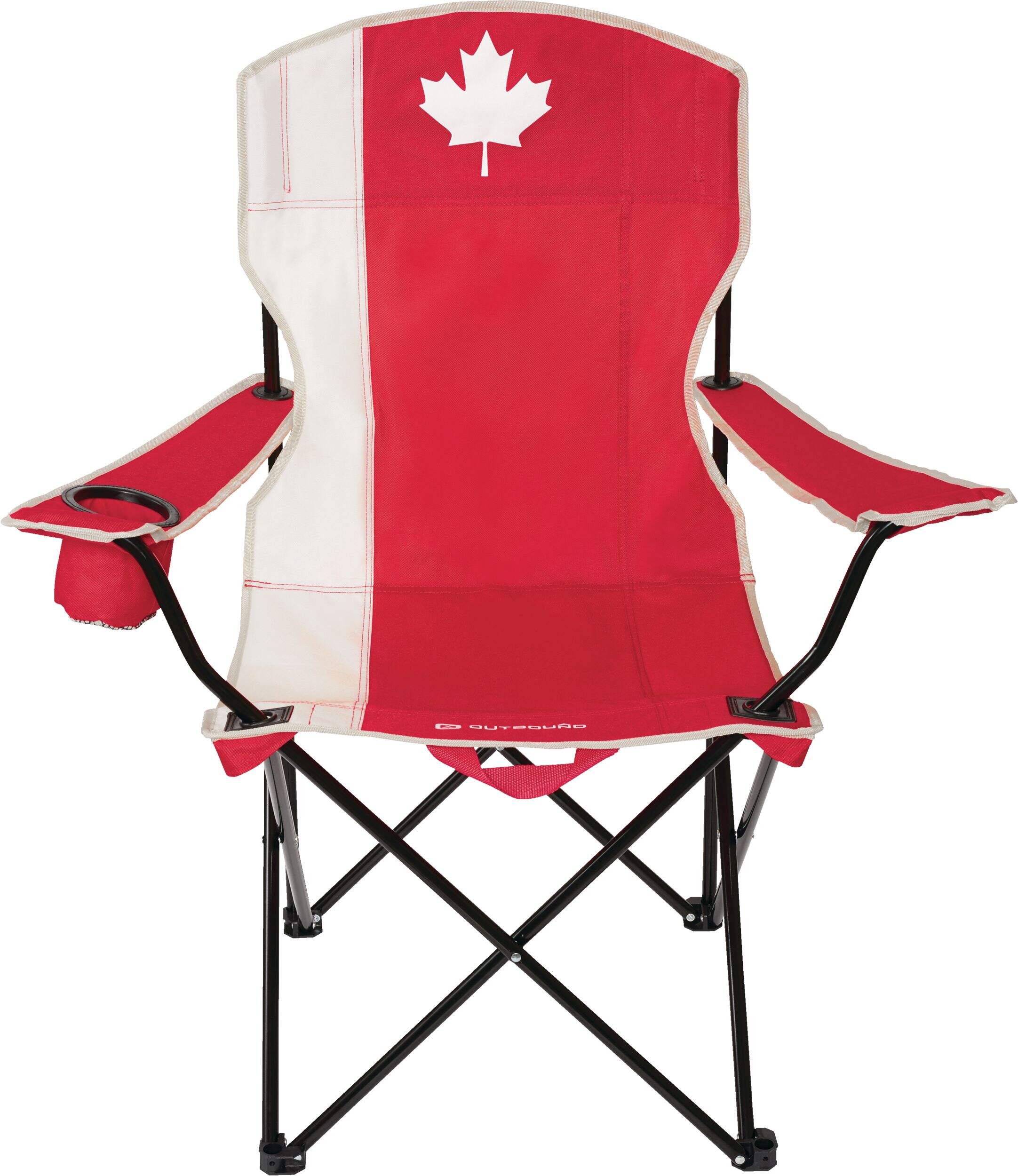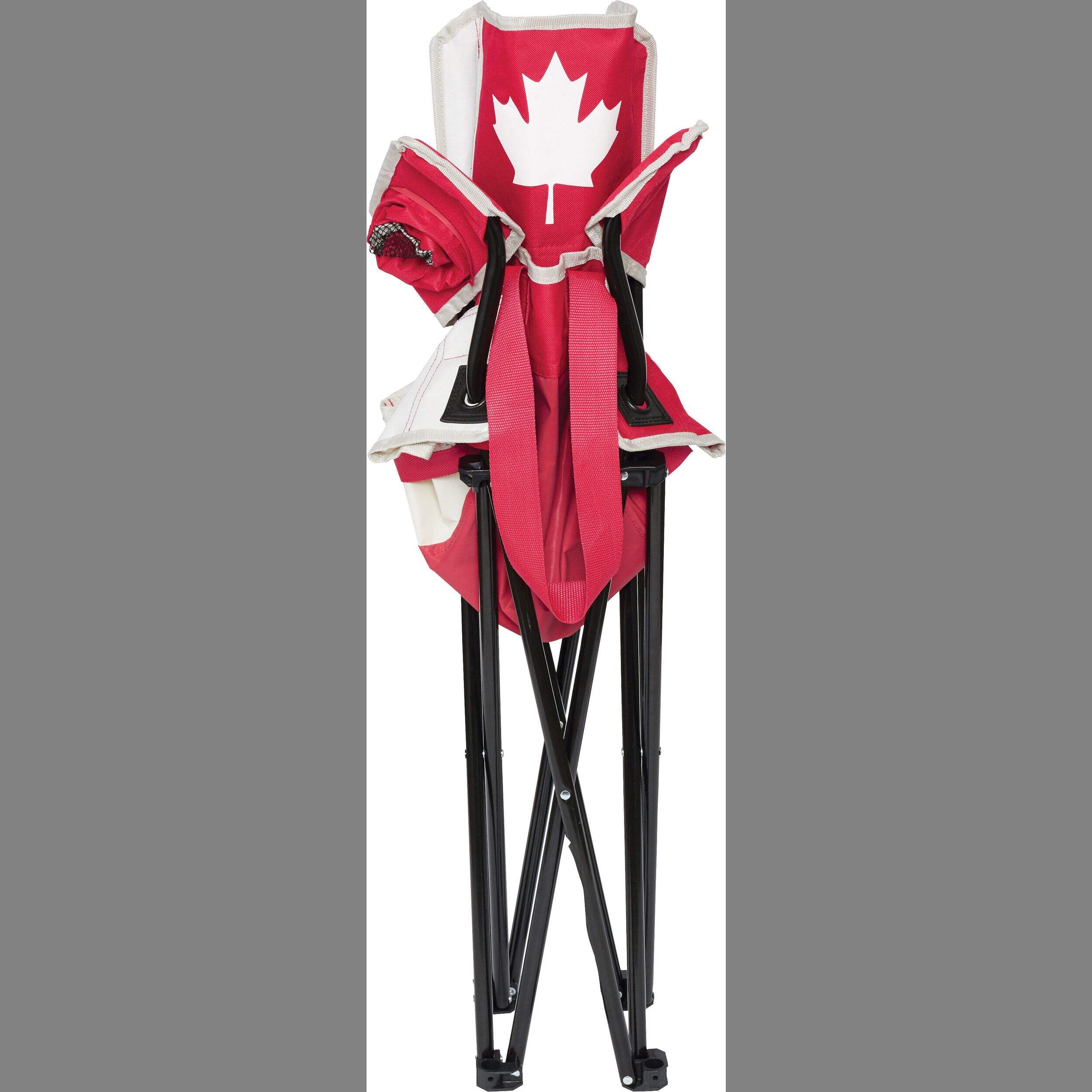 Détendez-vous et célébrez votre fierté nationale avec la chaise de camping quad pliante de luxe ornée du drapeau canadien. Le motif rouge et blanc est imprimé sur les deux côtés et comprend une feuille d'érable canadienne pour une apparence attrayante parfaite pour la fête du Canada et au fil de l'année. Grâce à son cadre pliable en acier, cette chaise est facile à plier, à ranger et à transporter en camping, lors d'événements extérieurs et plus encore.